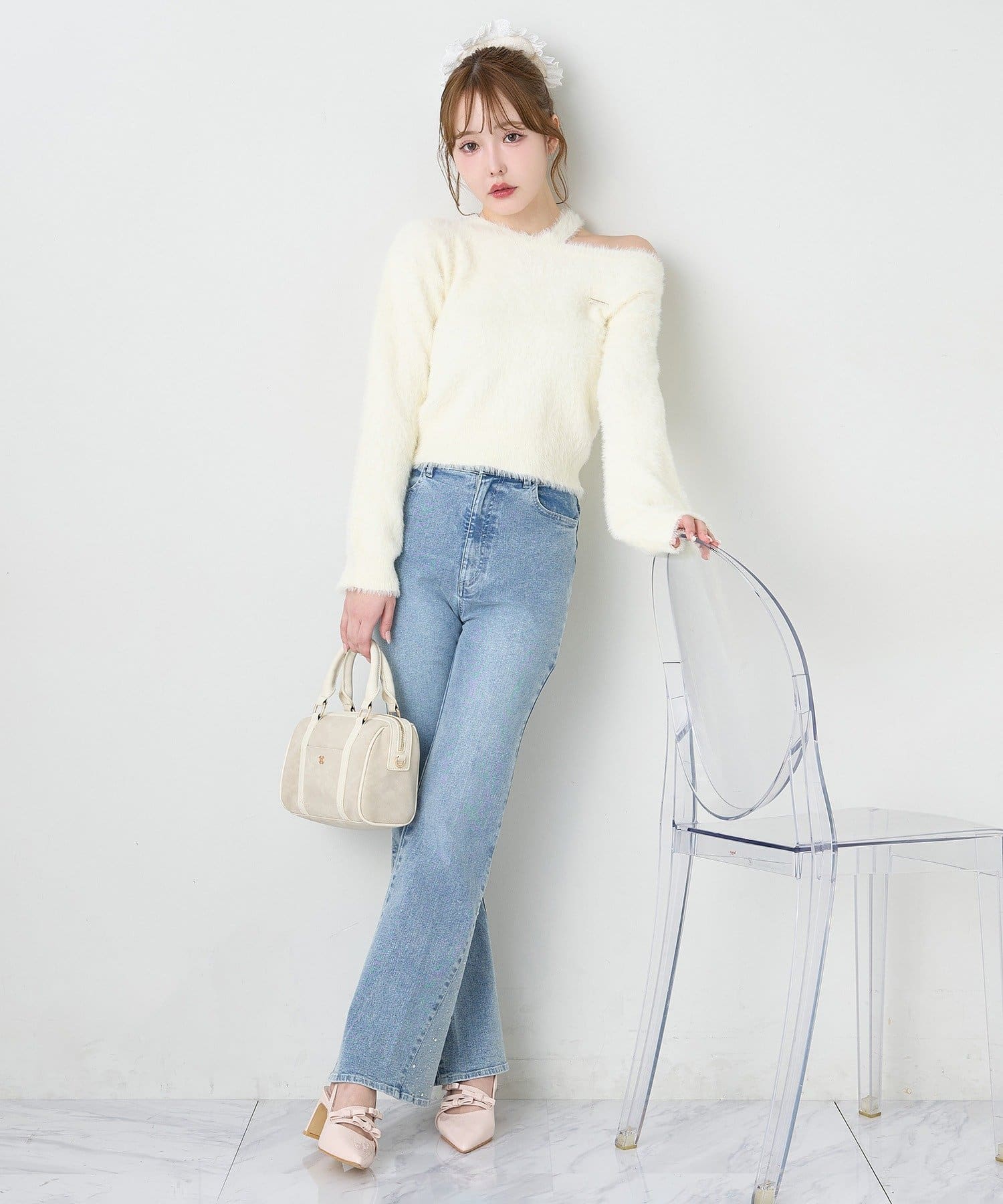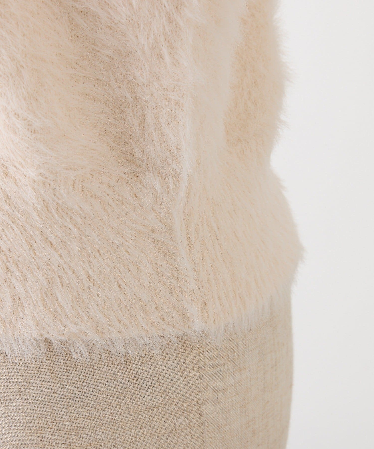 ふわふわのシャギー素材で、シーズンムードとフェミニン感をプラス。
