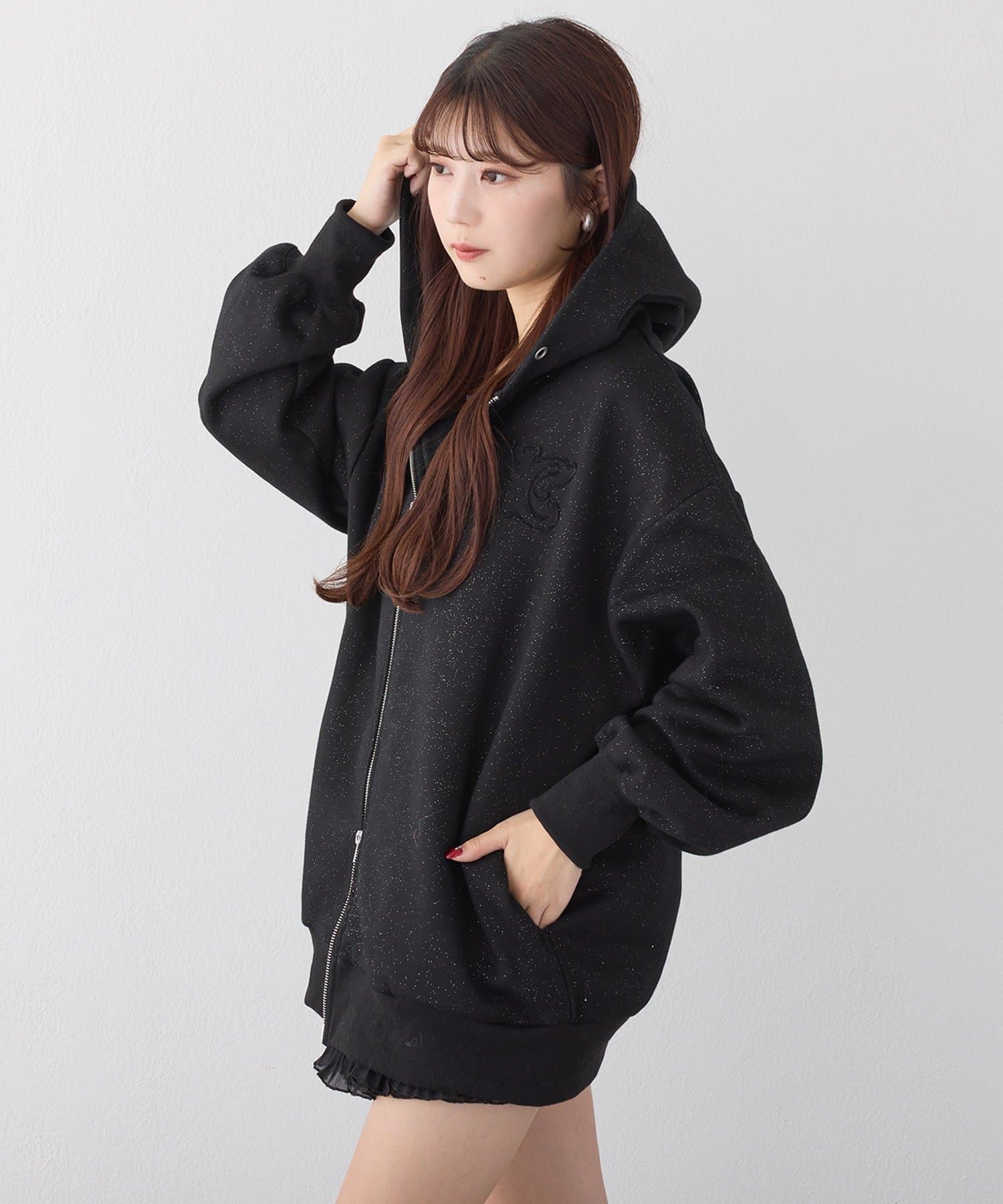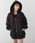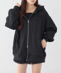 裏起毛スウェット素材でラフに着られるミドル丈フーディー