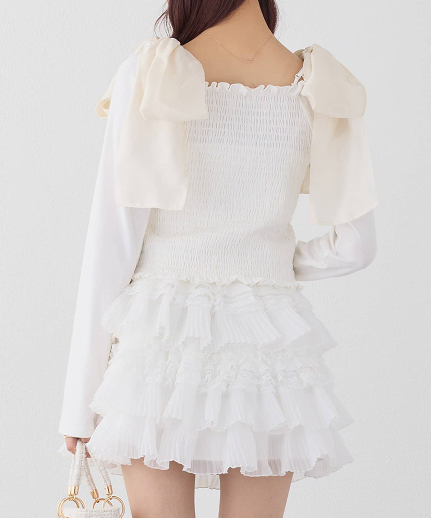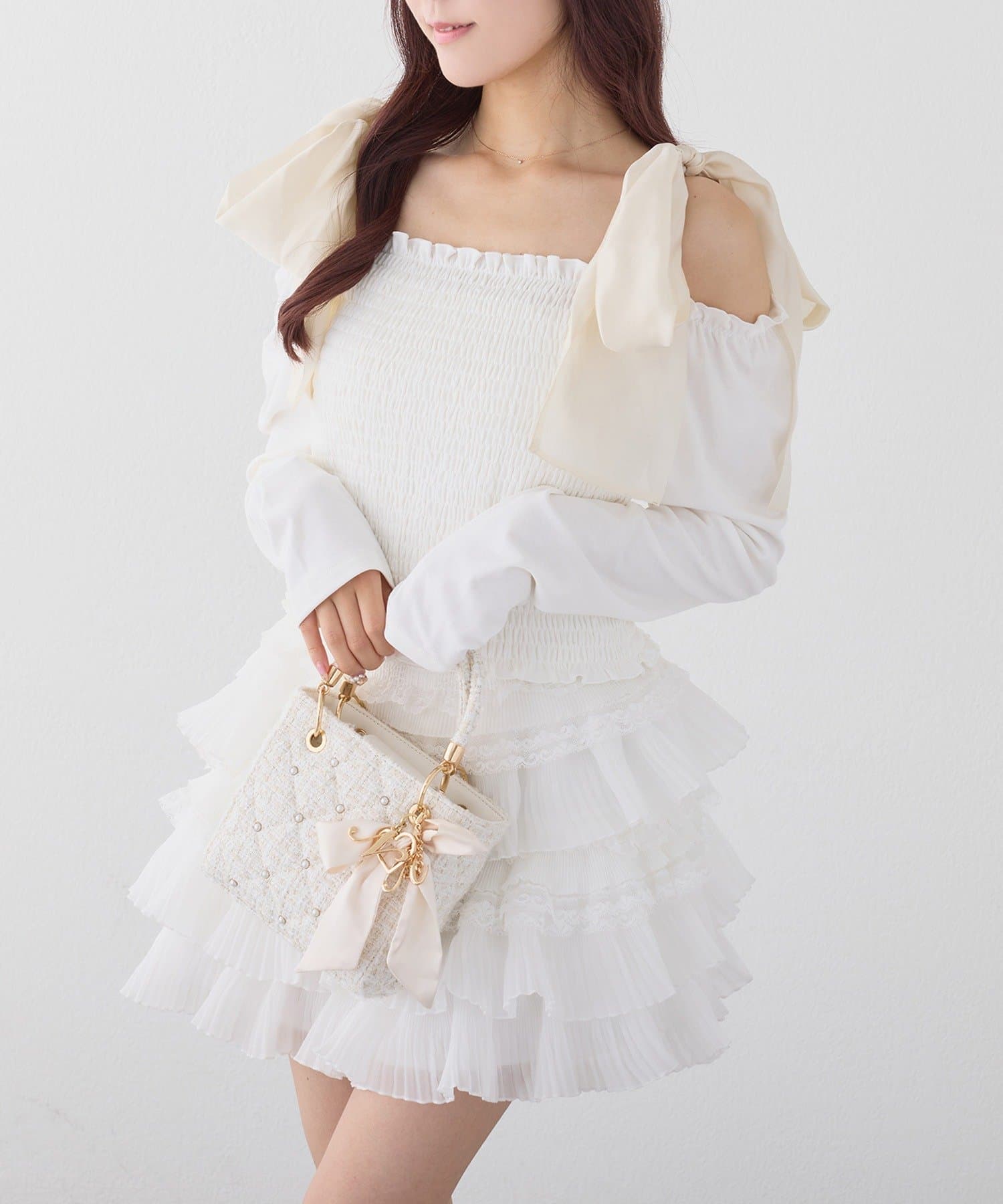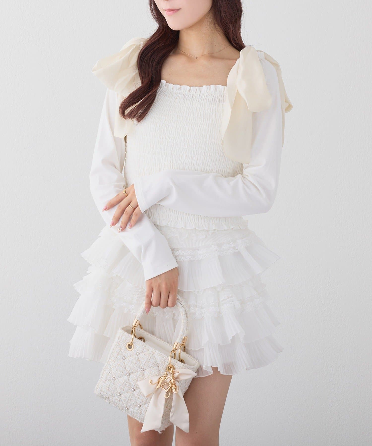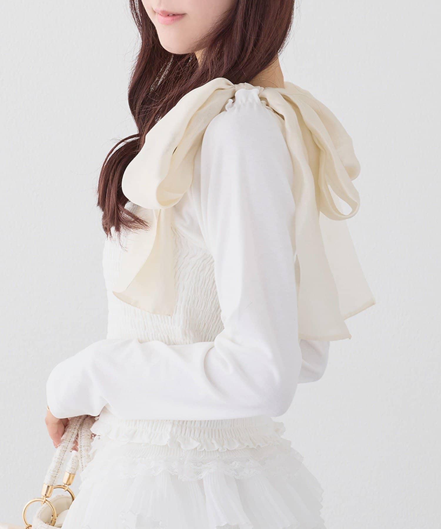 肩にはリボンがあしらわれていて、シンプルながらもガーリーなアクセントをプラスしてくれます。