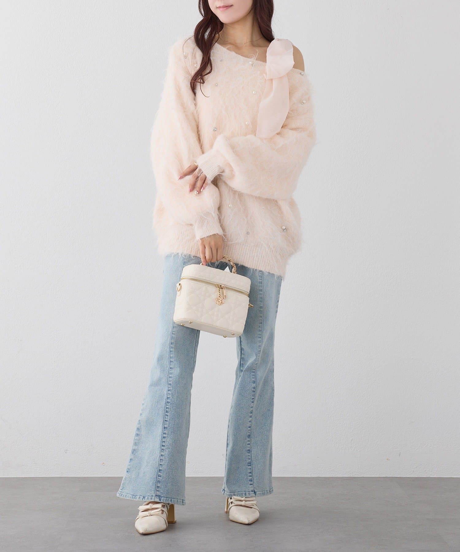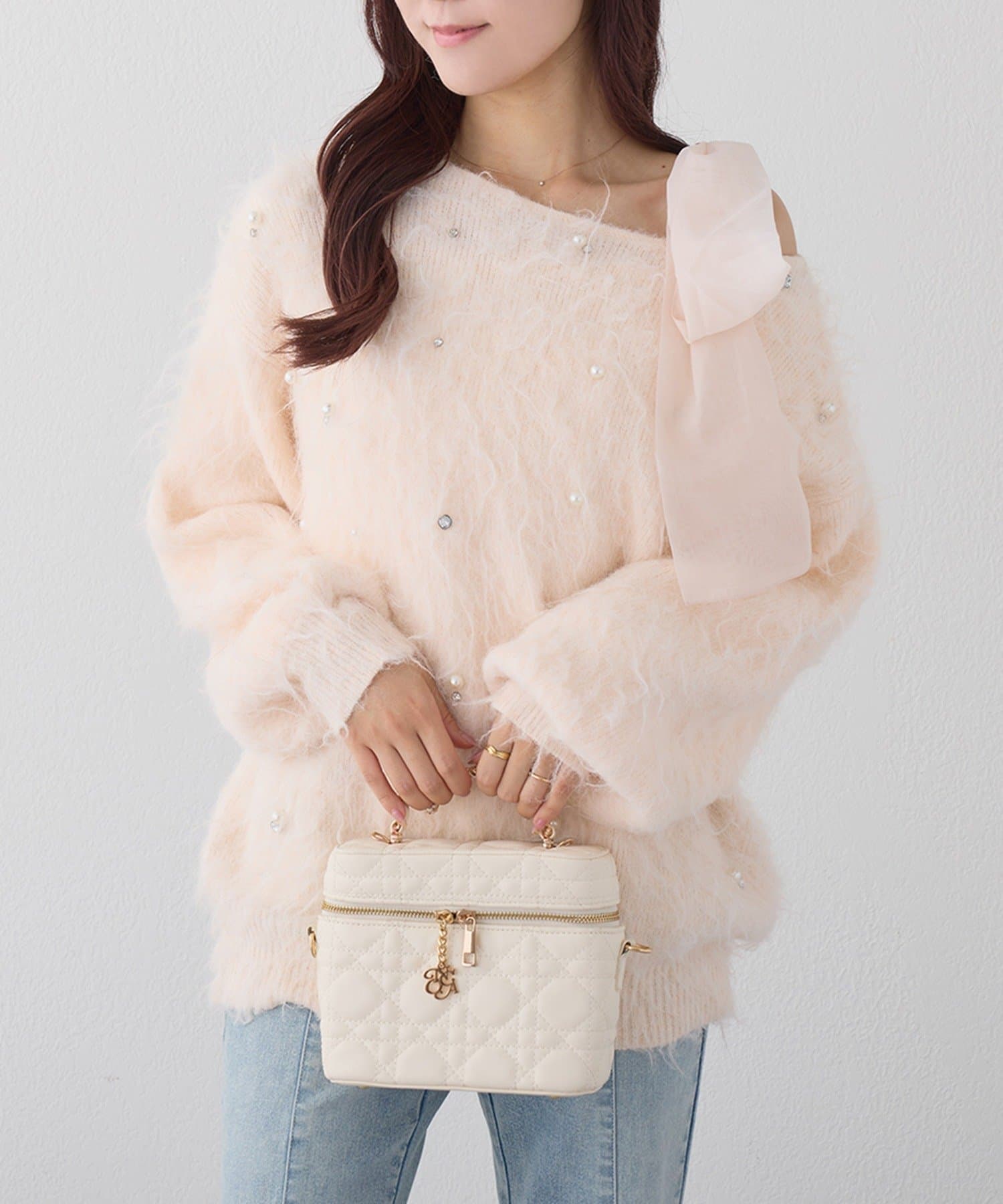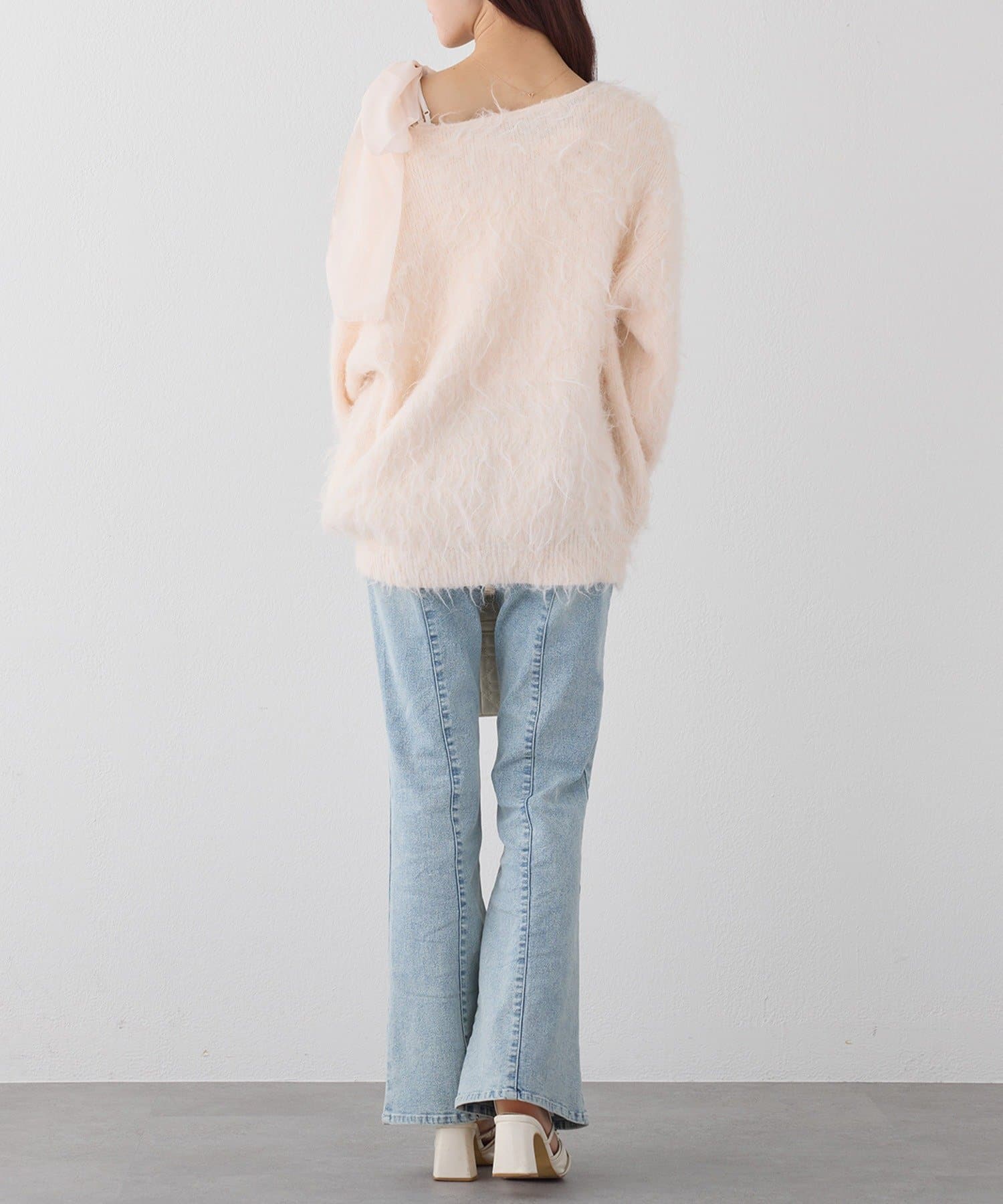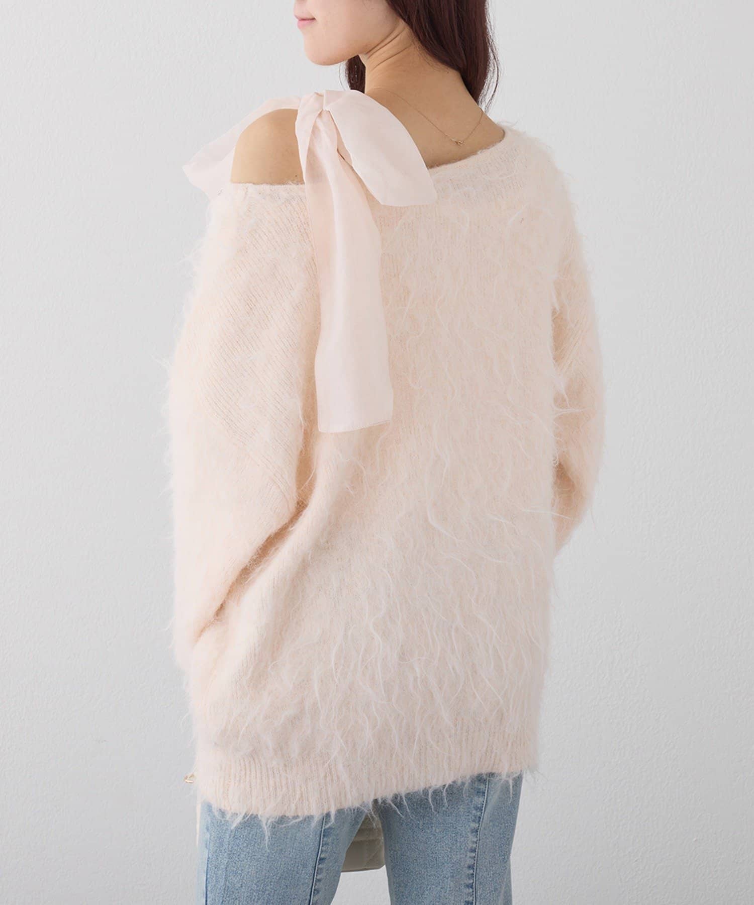 肩にはリボンがあしらわれていて、シンプルながらもガーリーなアクセントをプラスしてくれます。
