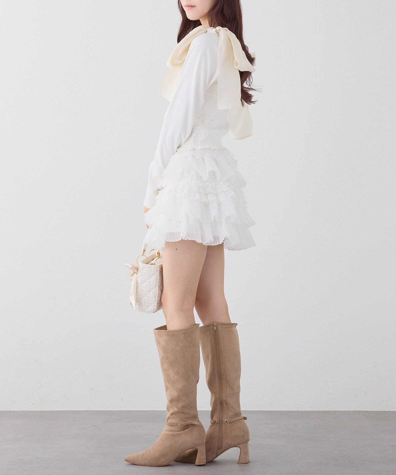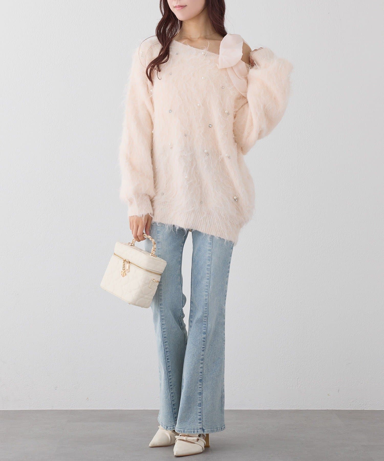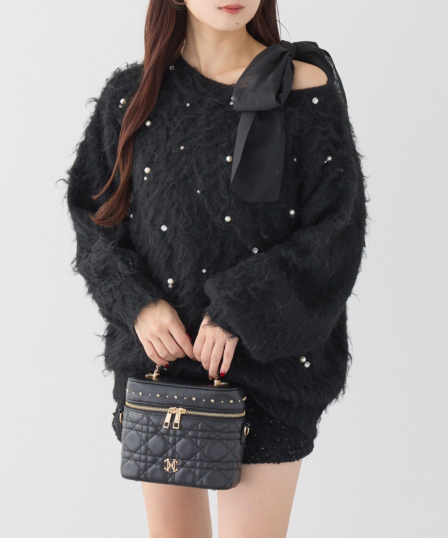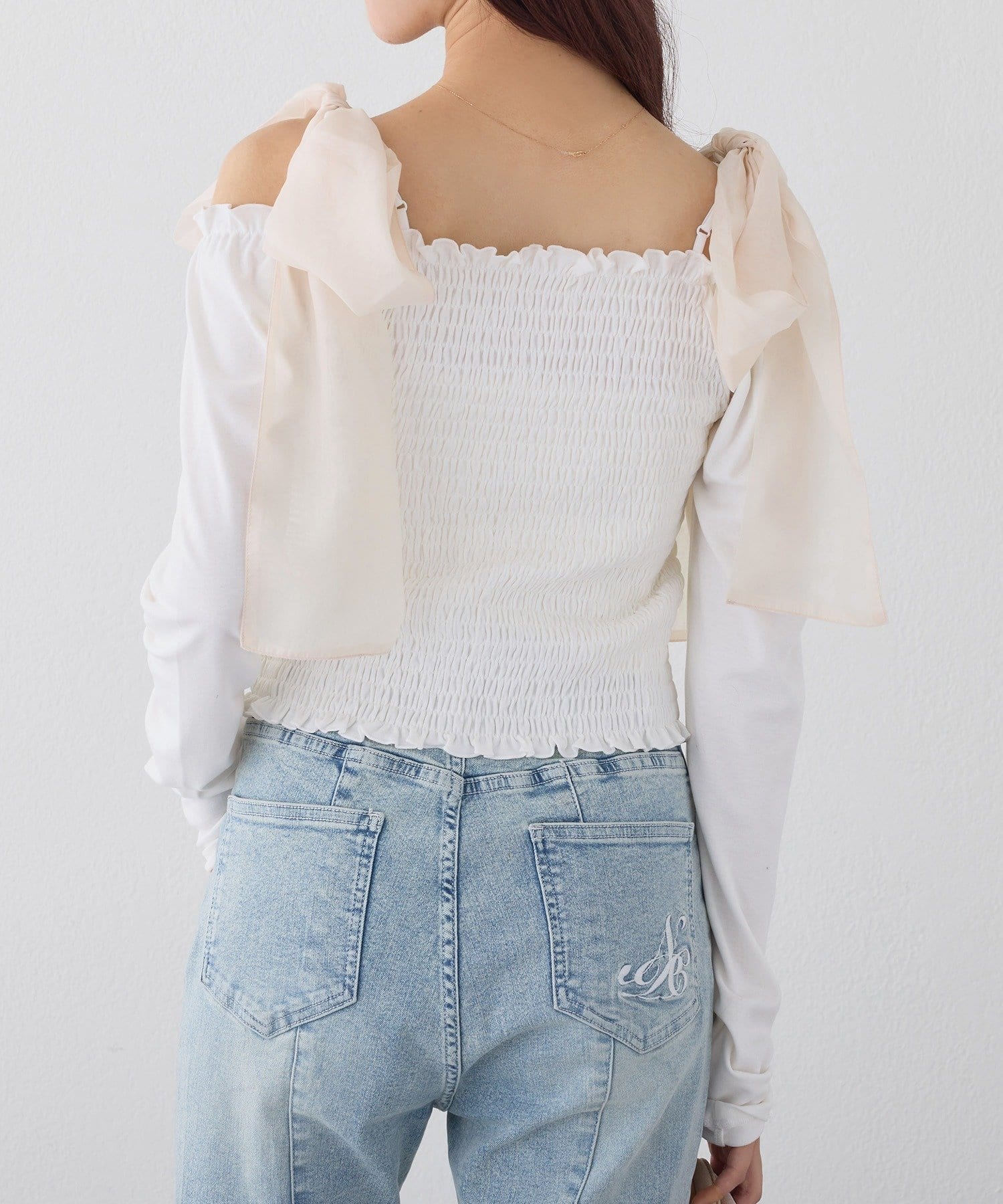 肩にはリボンがあしらわれていて、シンプルながらもガーリーなアクセントをプラスしてくれます。