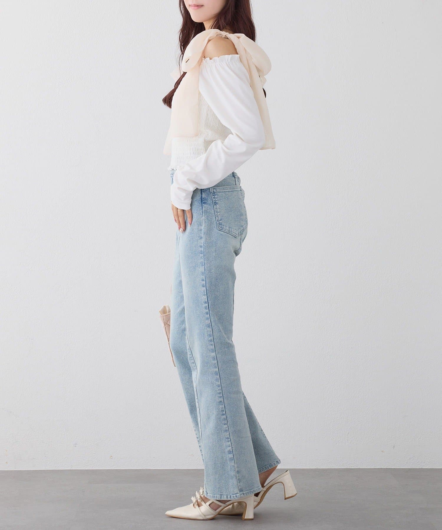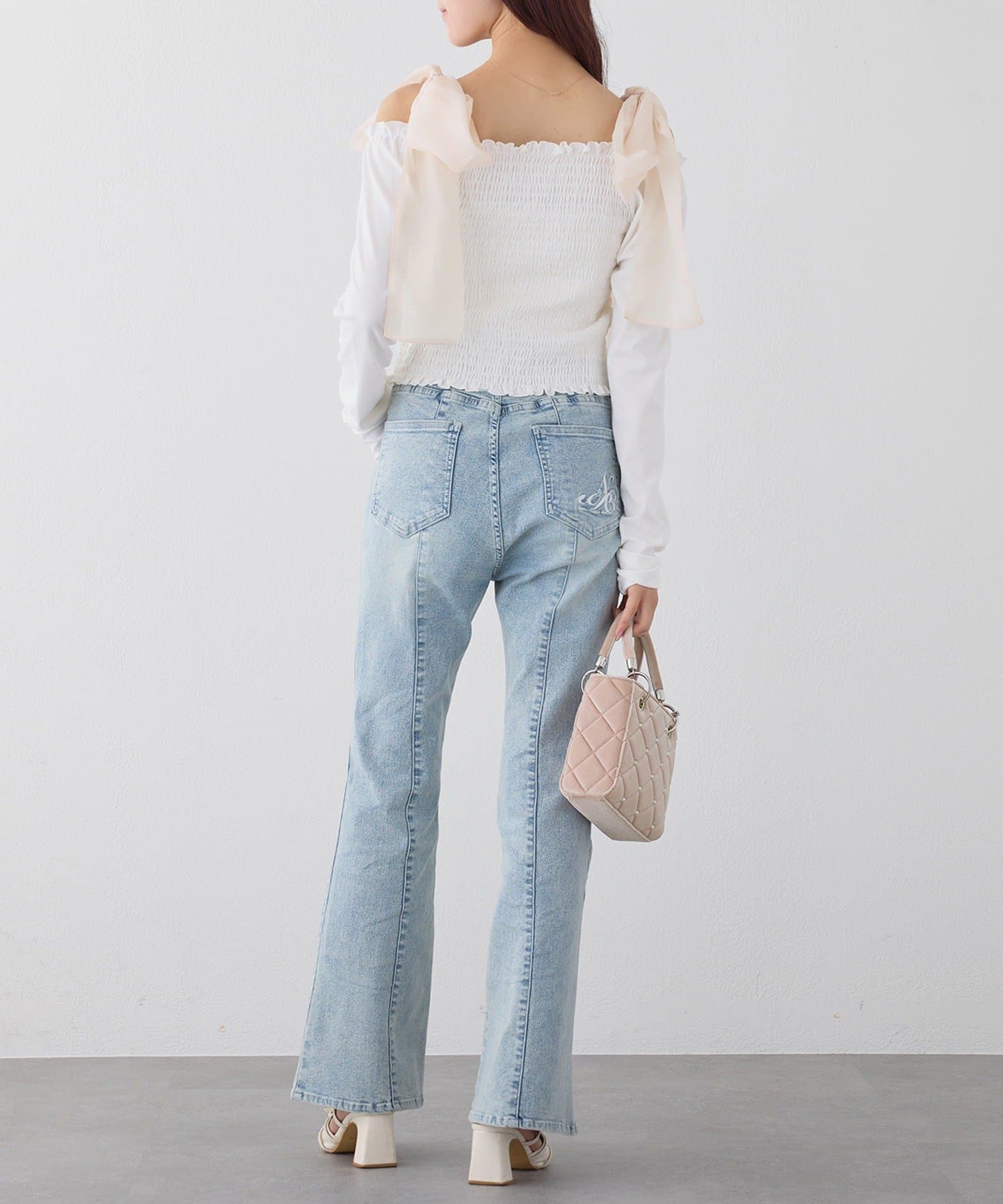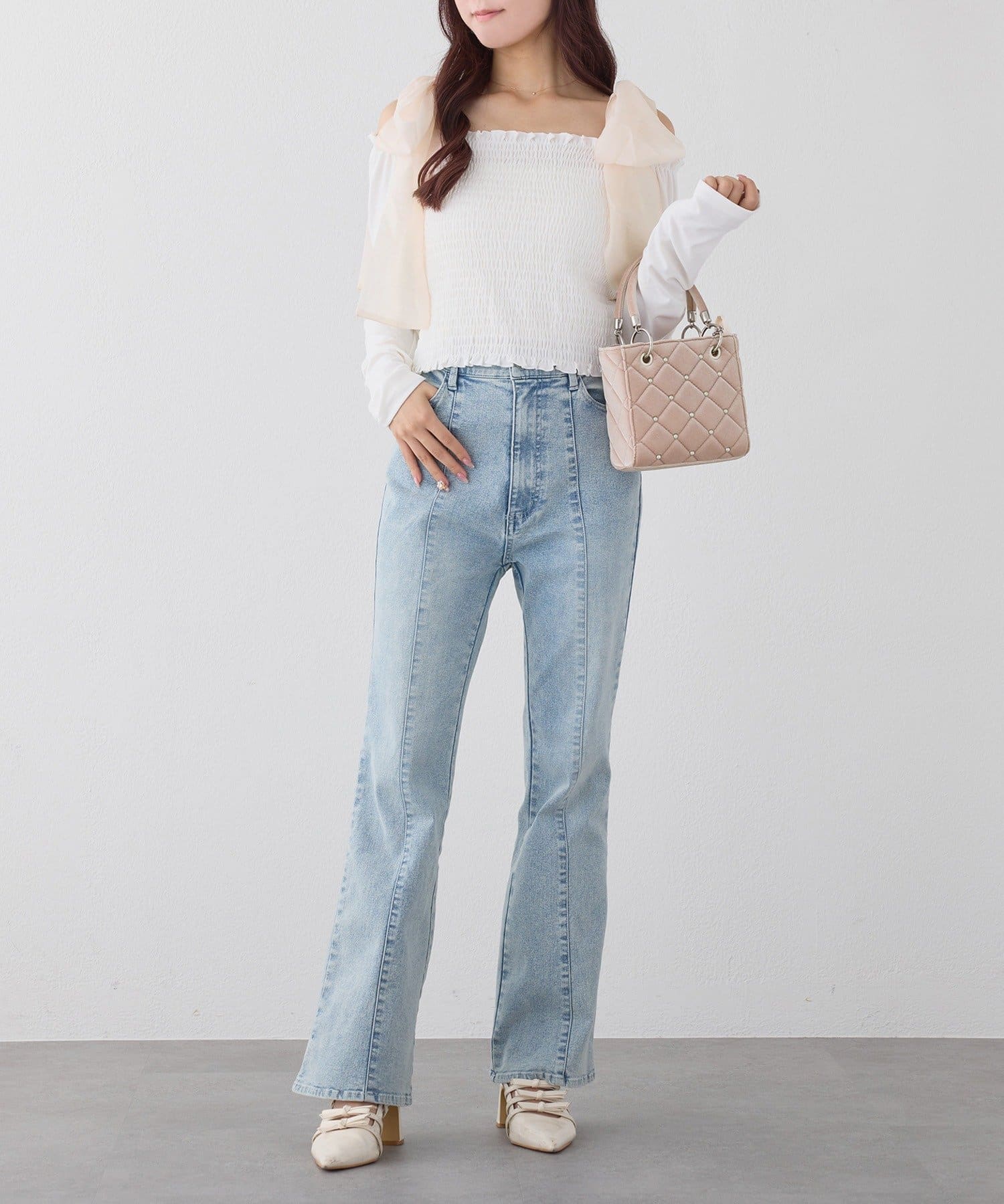 デニムやフレアスカートにインして、トップスを主役にした大人ガーリーなスタイリングもおすすめ。