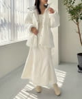 コーディネートのバランスがとりやすいミドル丈なので、ボトムスはミニ、ロングどちらでも相性は◎