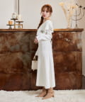 ロングブーツを合わせて、フェミニンで美シルエットを活かした大人かわいいコーデに。