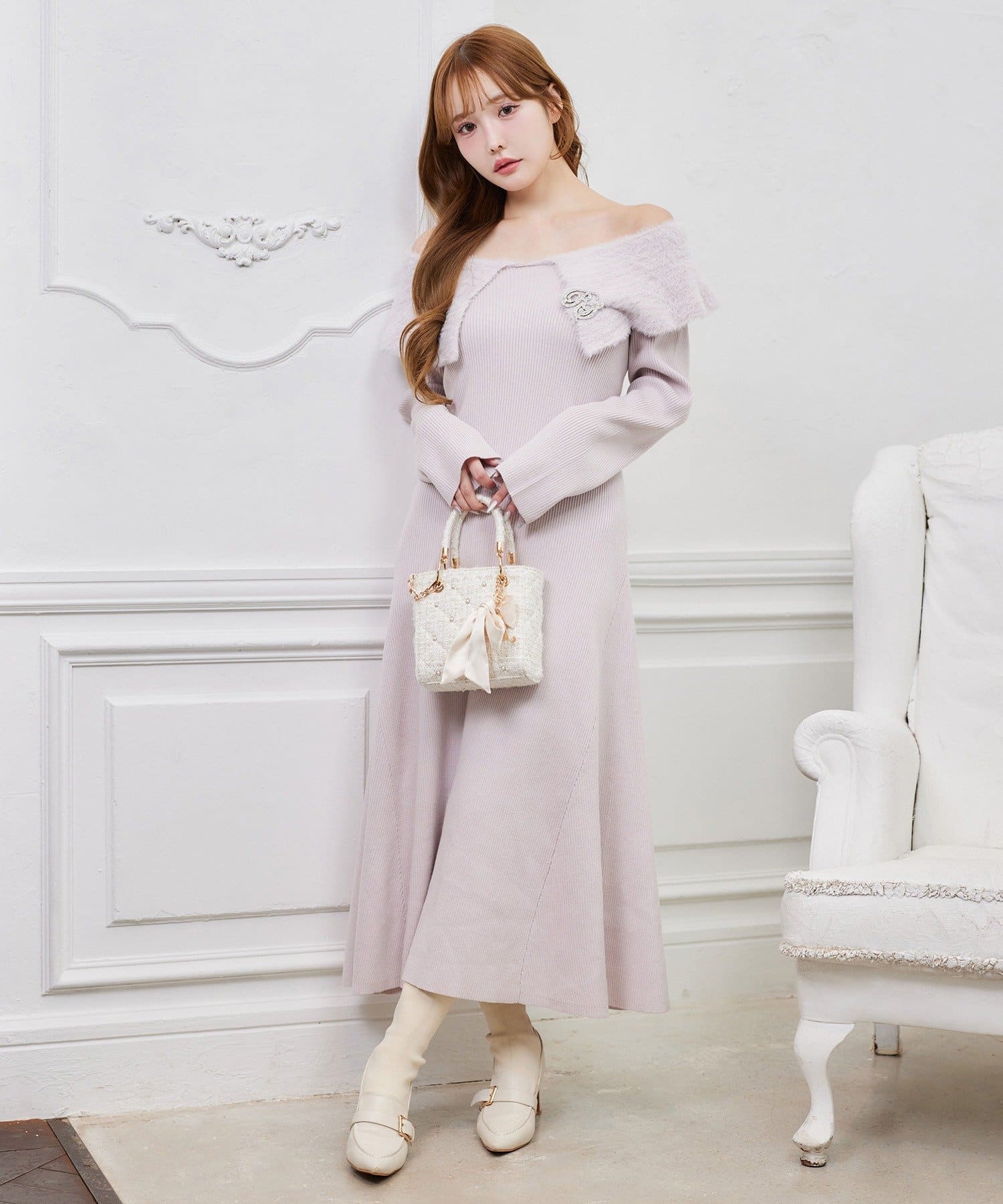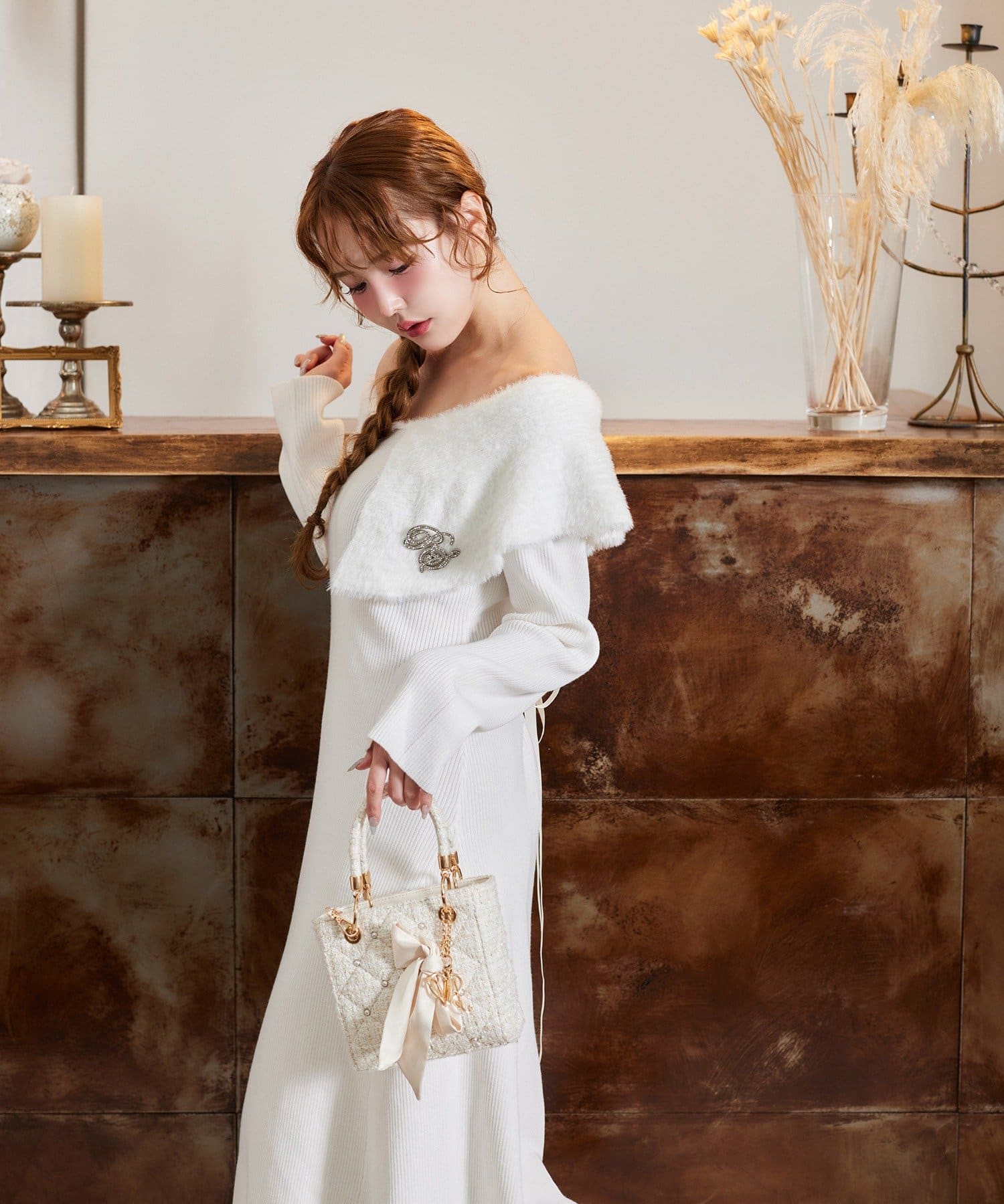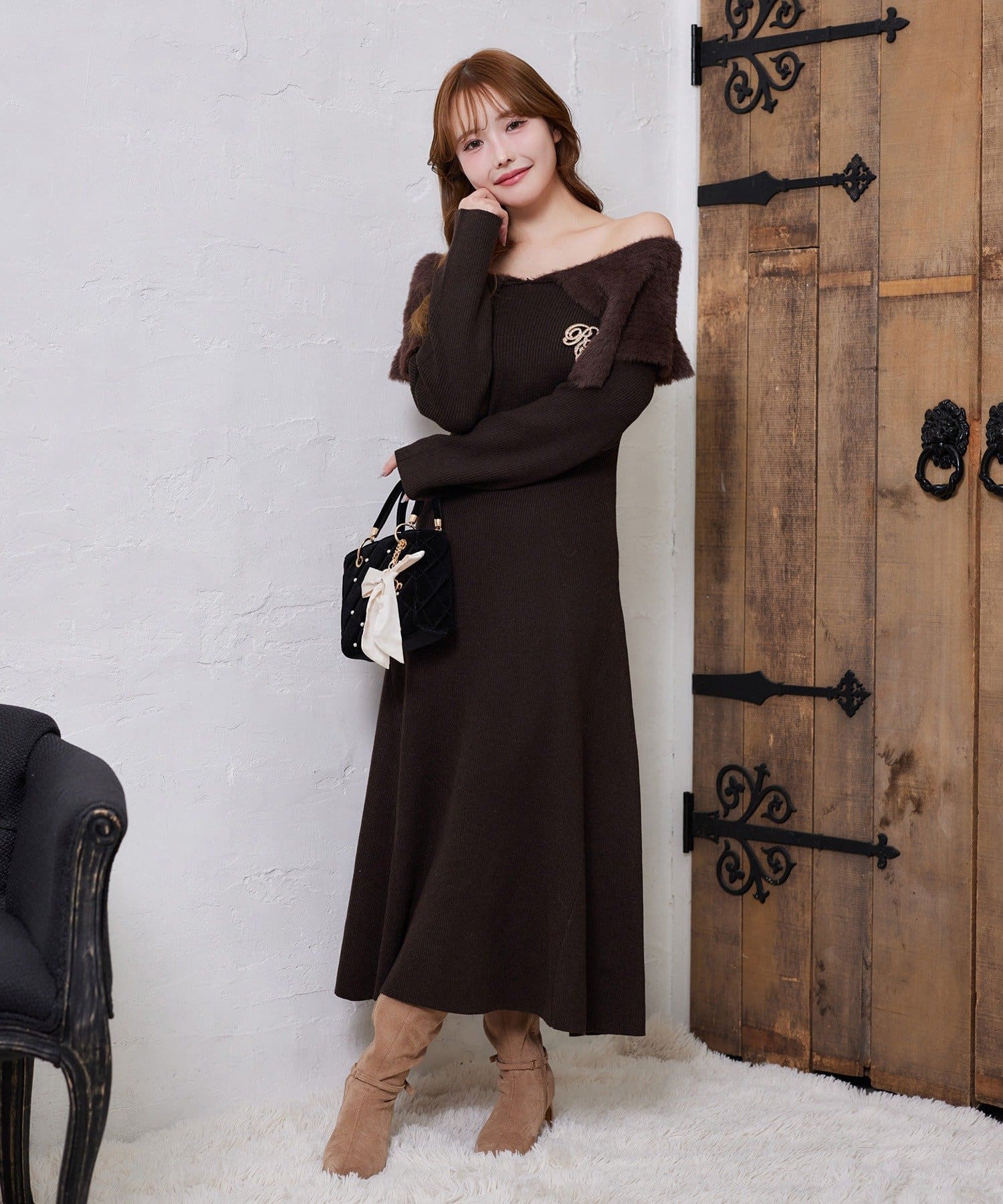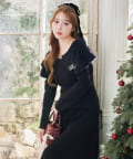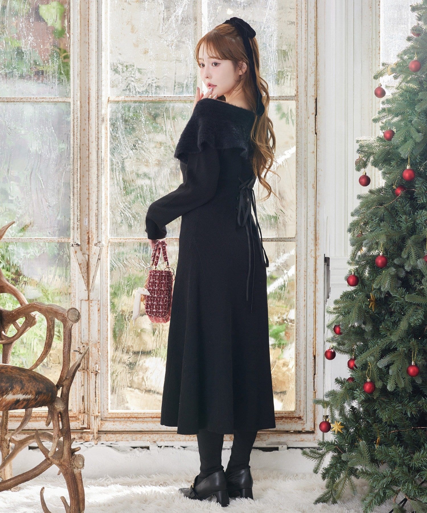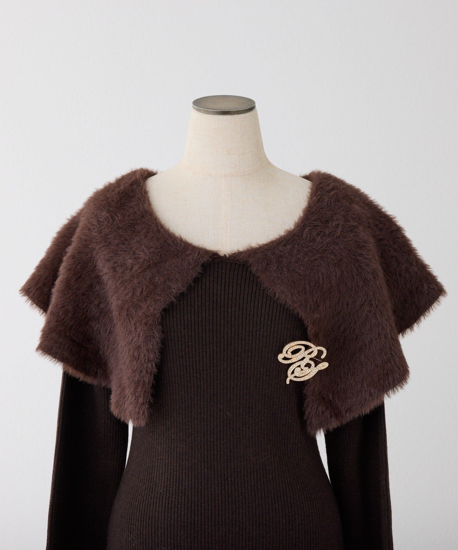 襟部分はふわっとしたフェザー素材で、冬らしいあたたかみと華やかさをプラス。