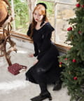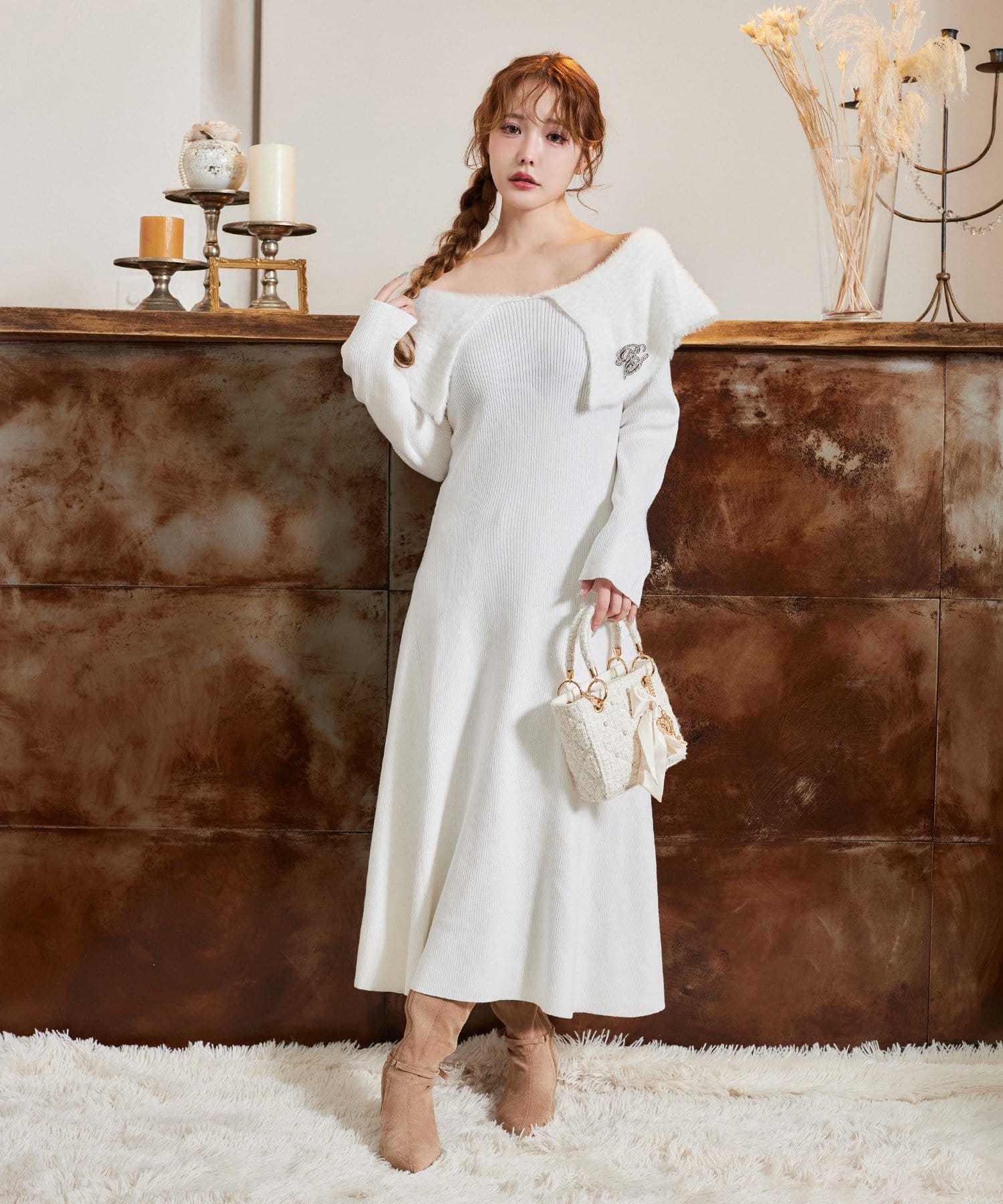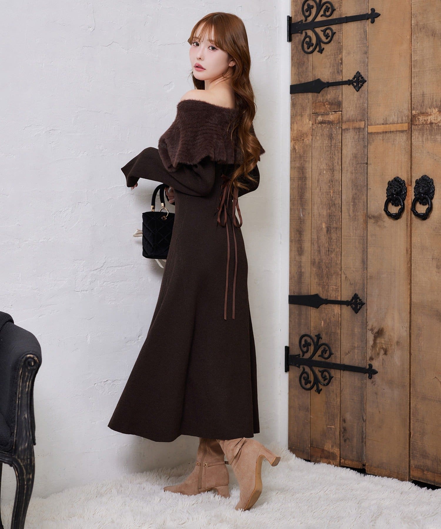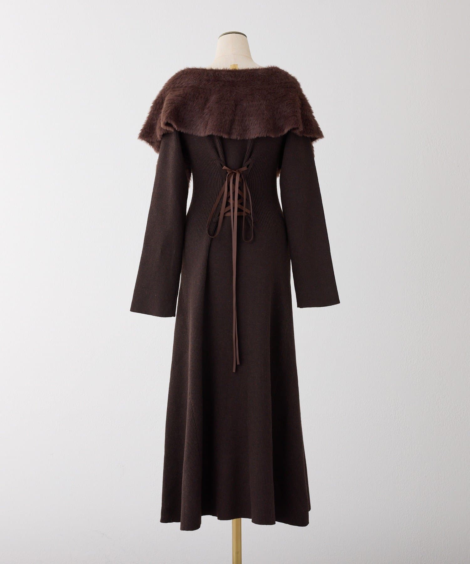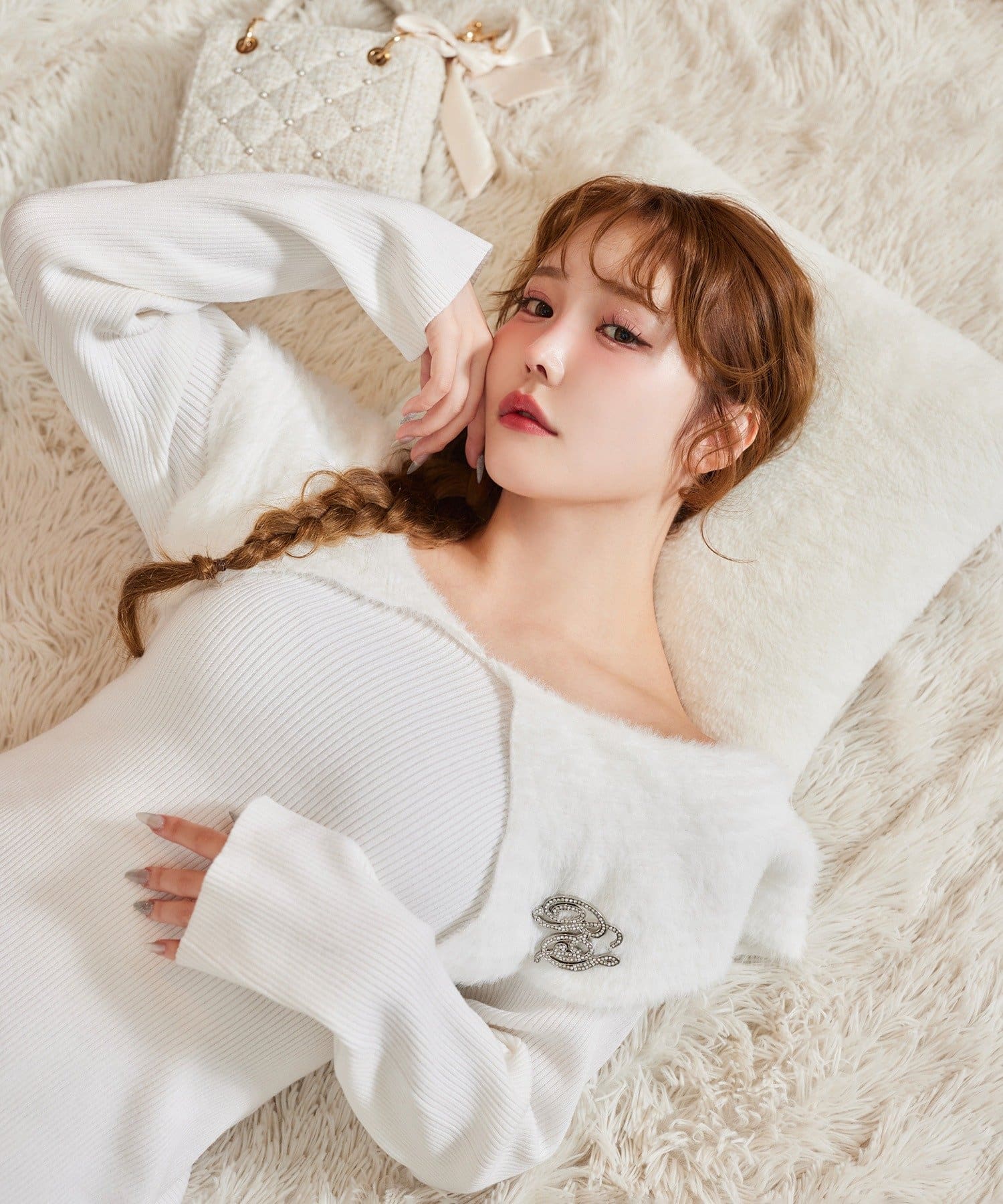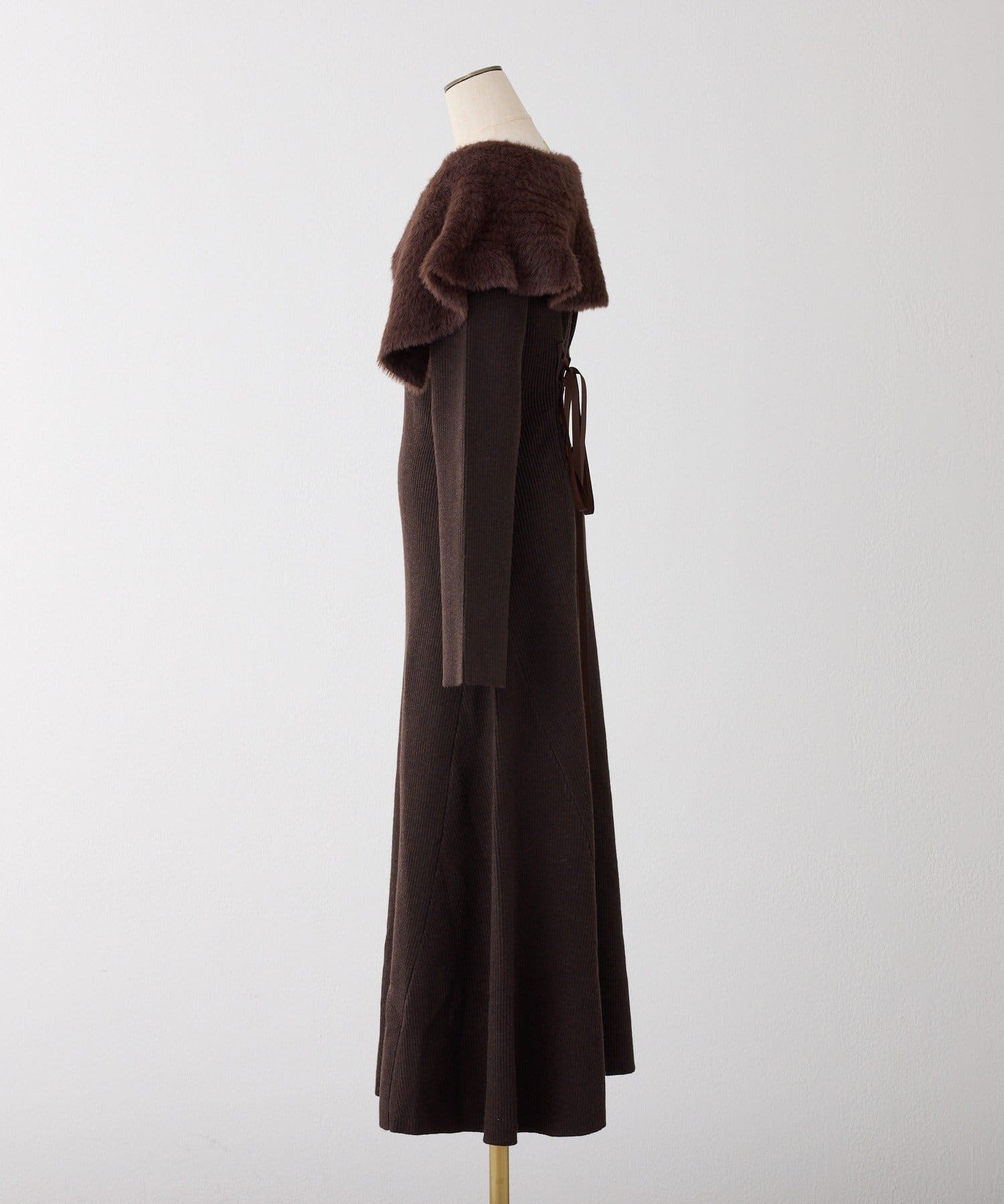 襟部分はふわっとしたフェザー素材で、冬らしいあたたかみと華やかさをプラス。