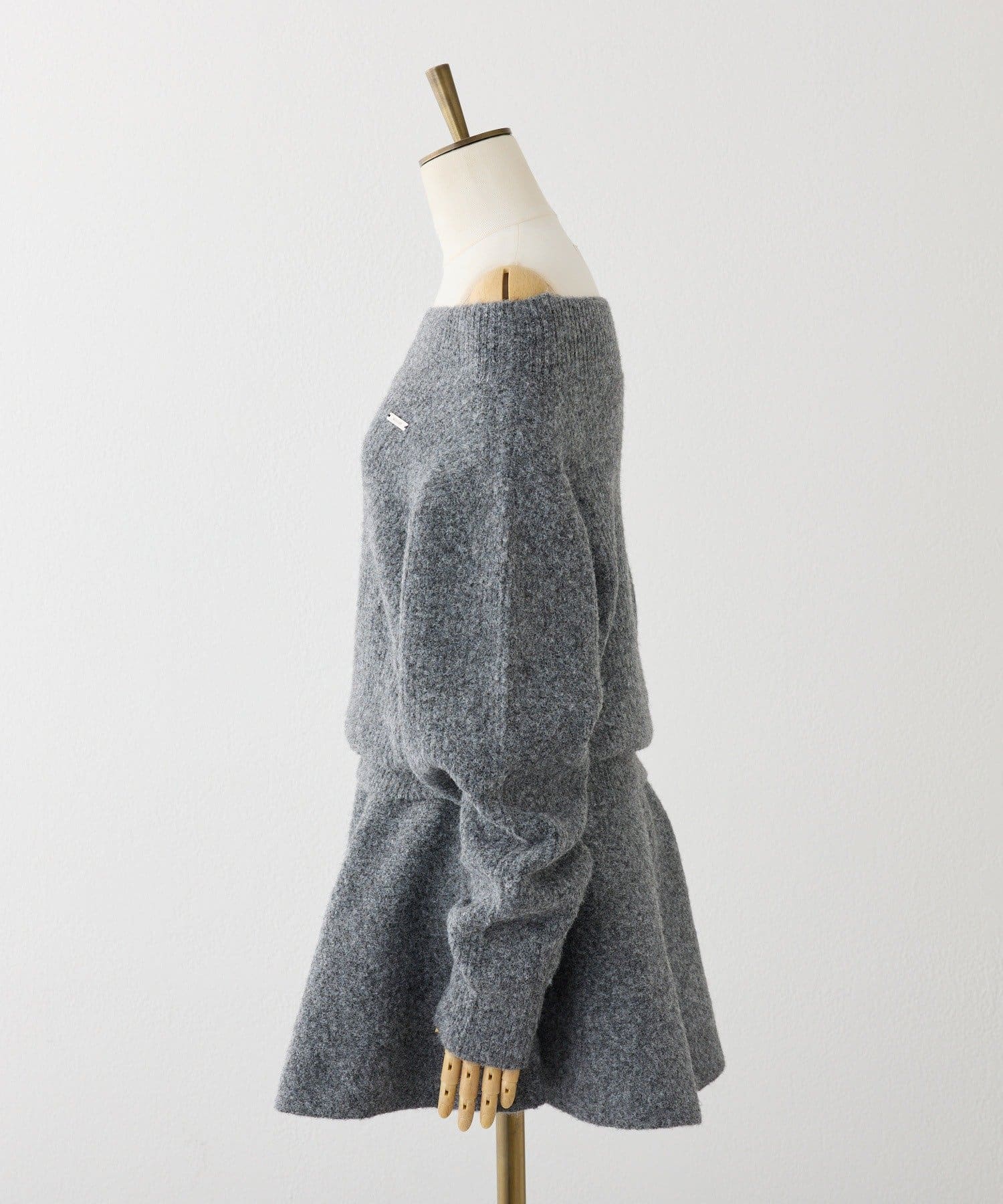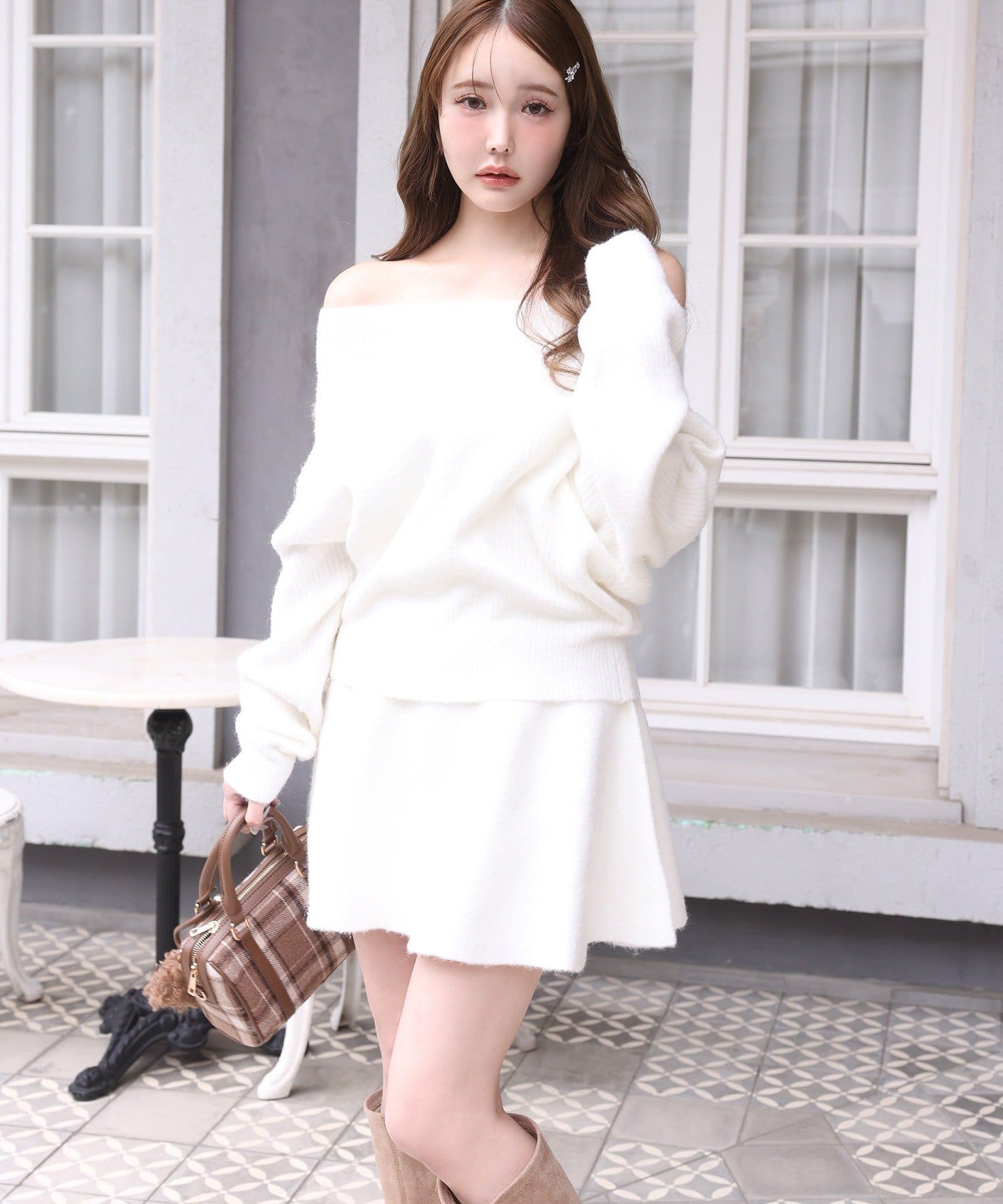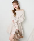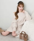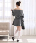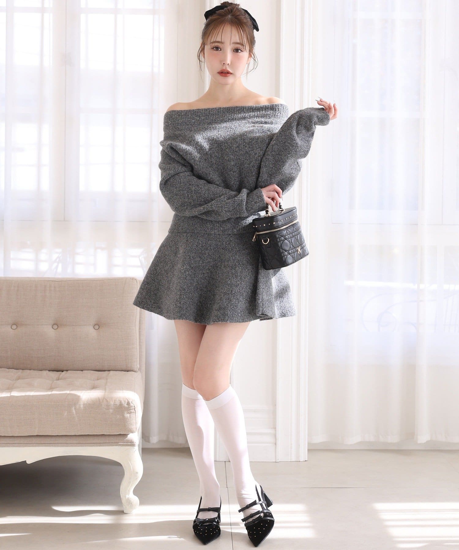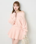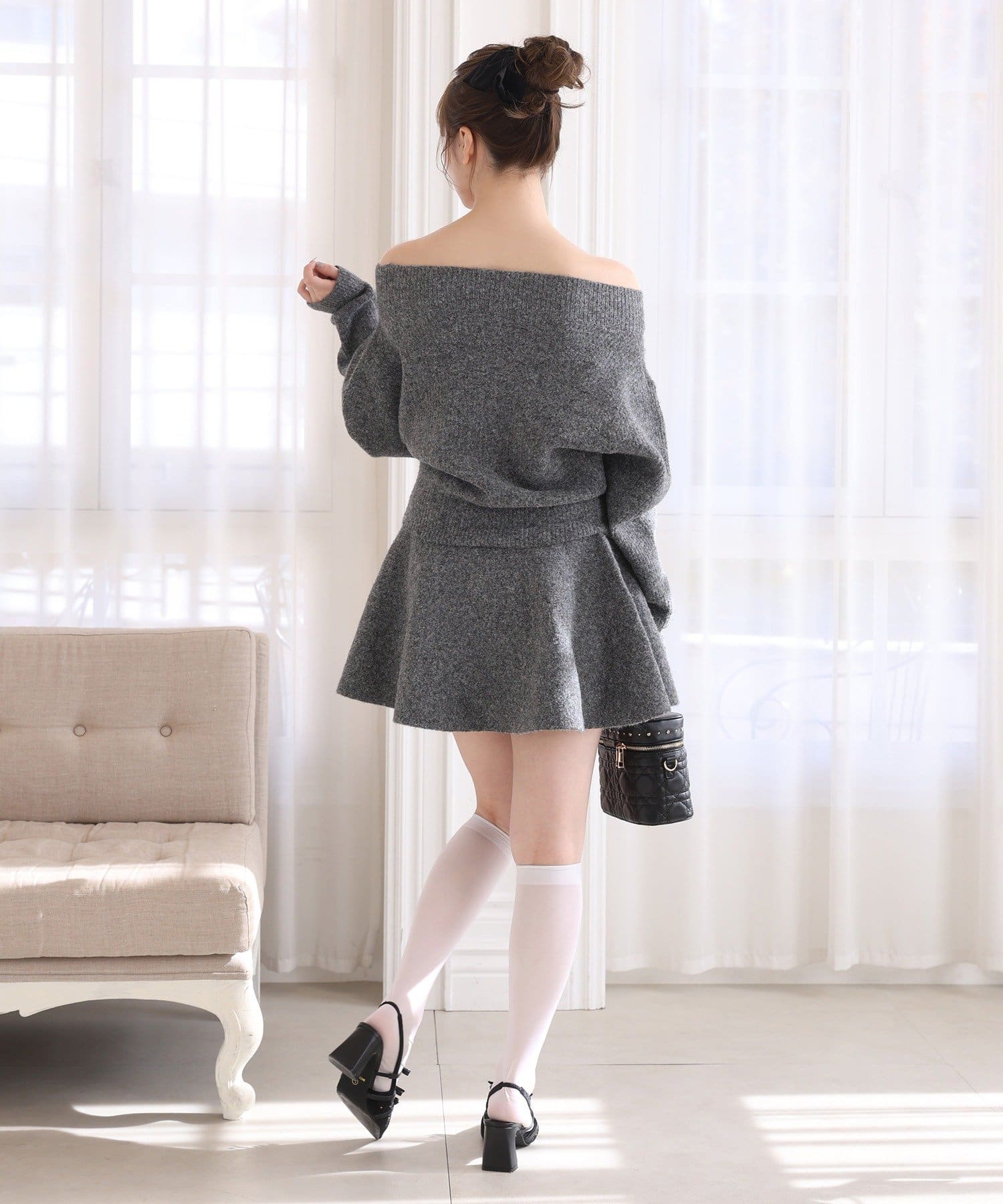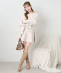 裾に向かってふんわり広がるフレアミニスカートがセットになったフェミニンなアイテム。