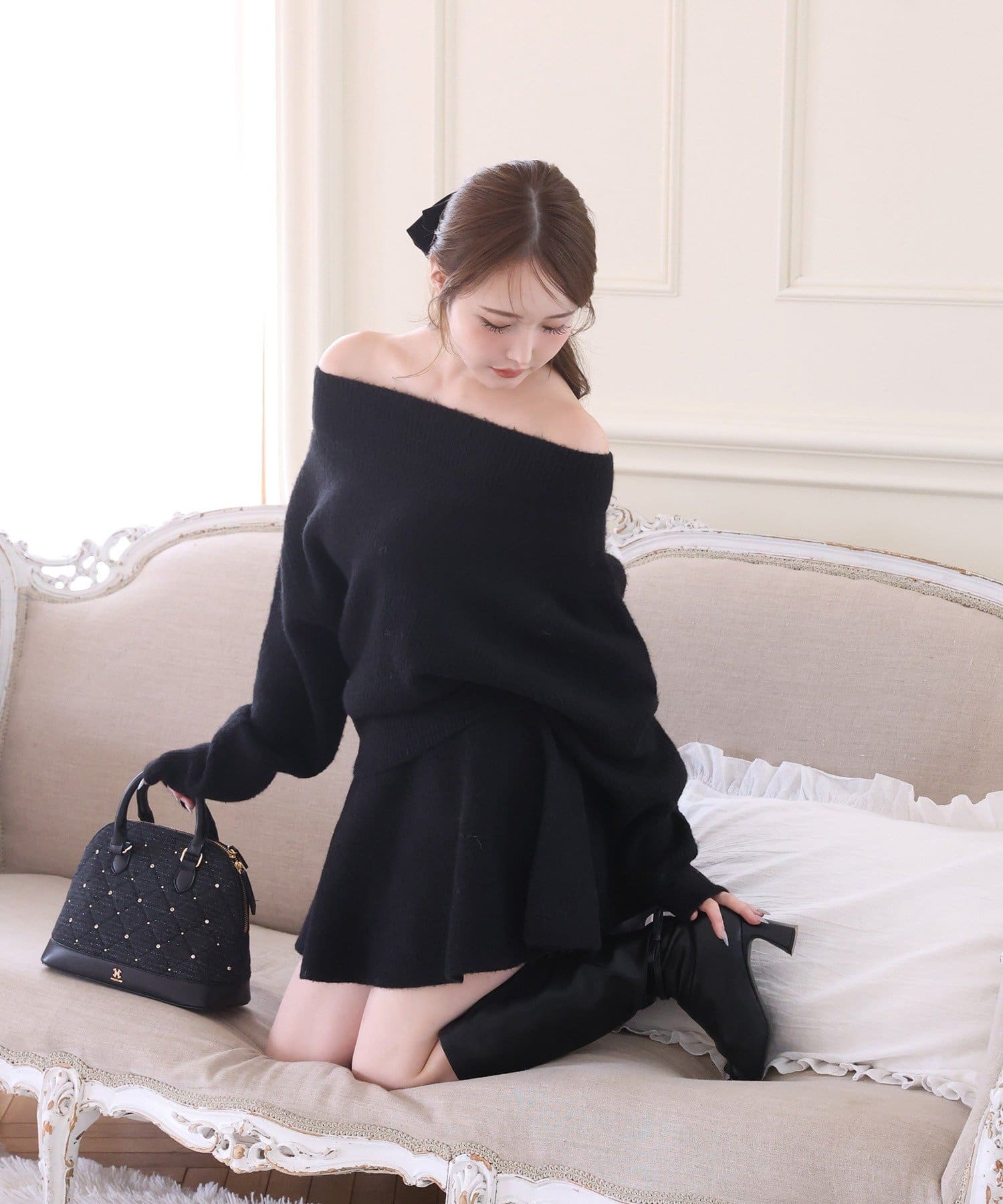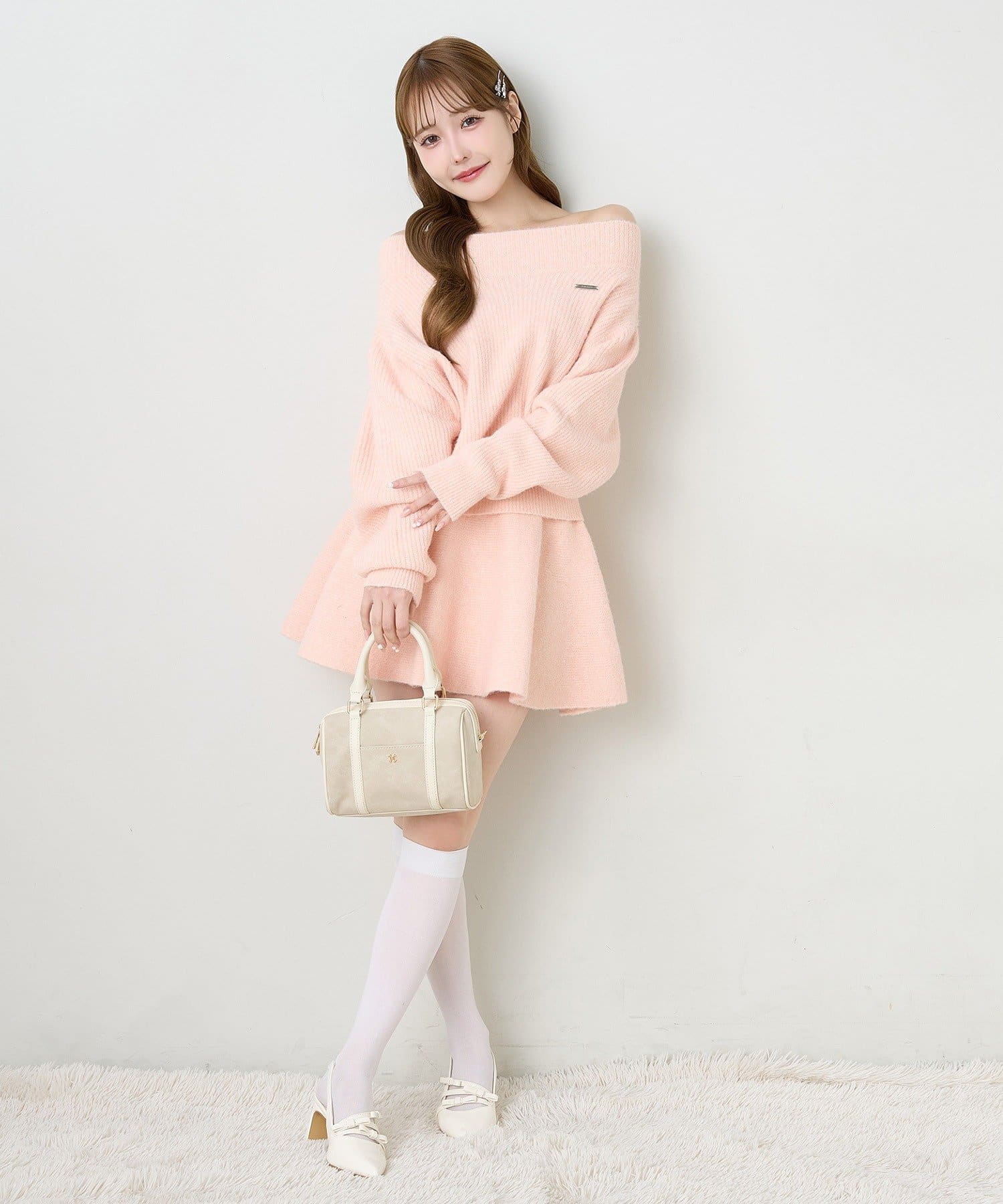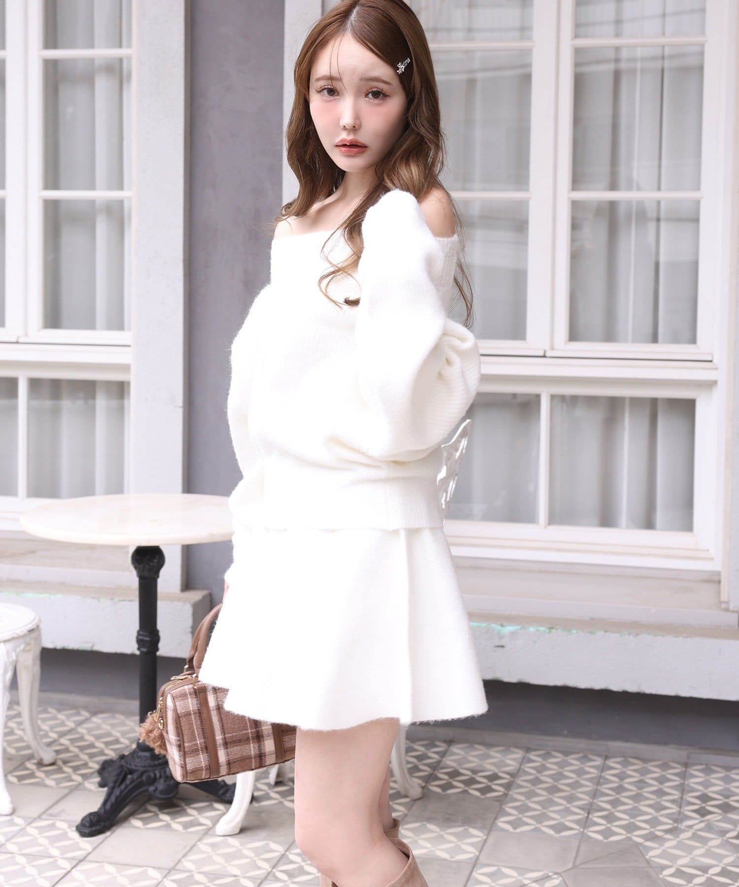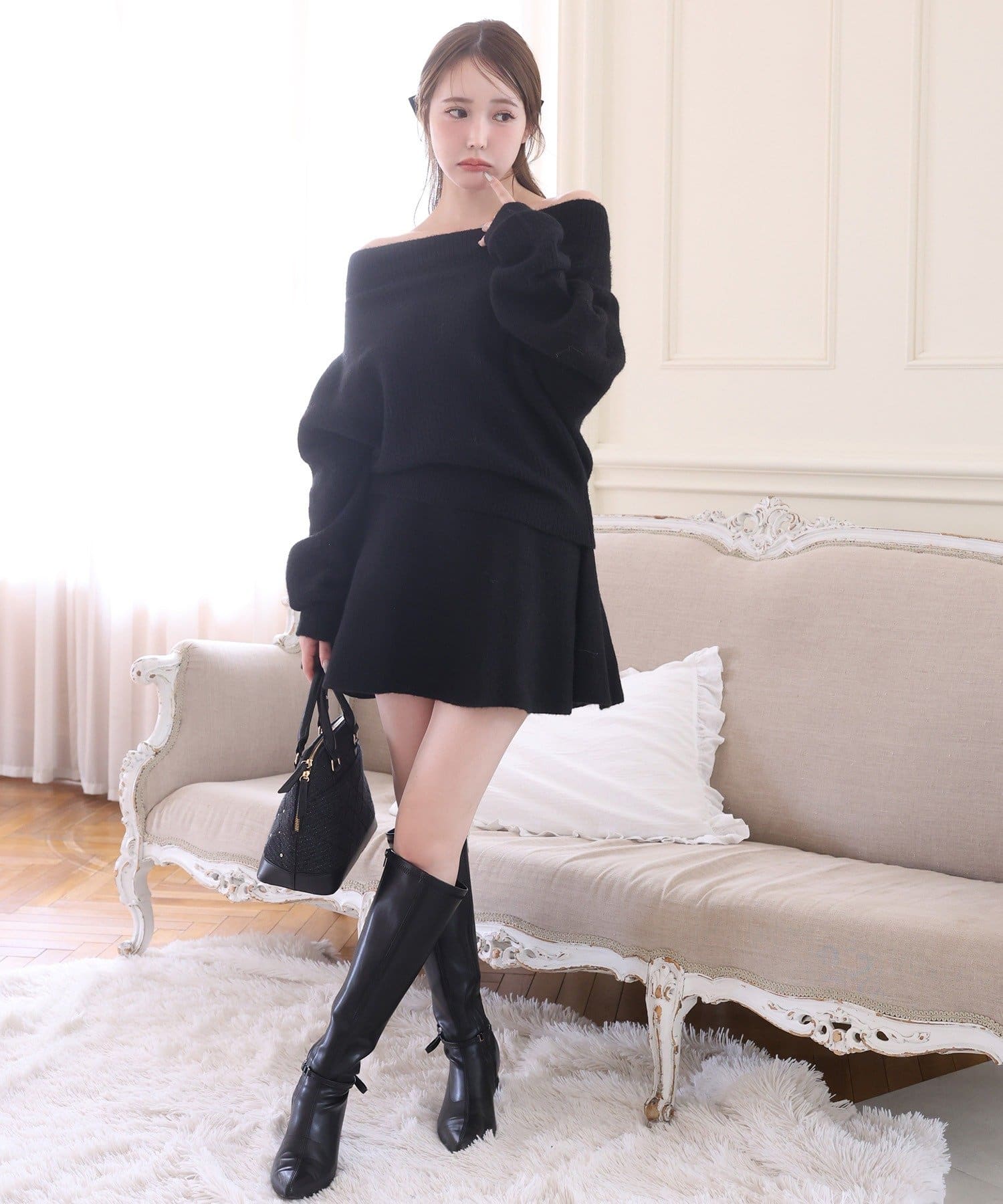 裾に向かってふんわり広がるフレアミニスカートがセットになったフェミニンなアイテム。