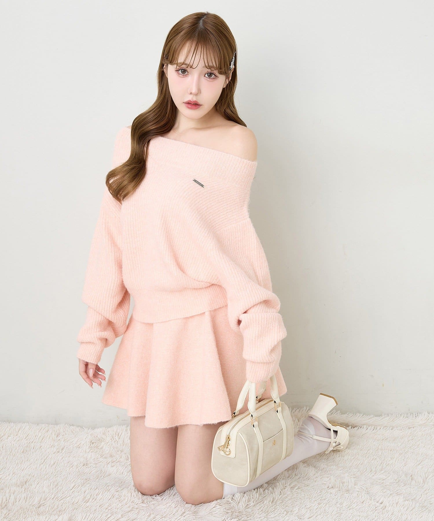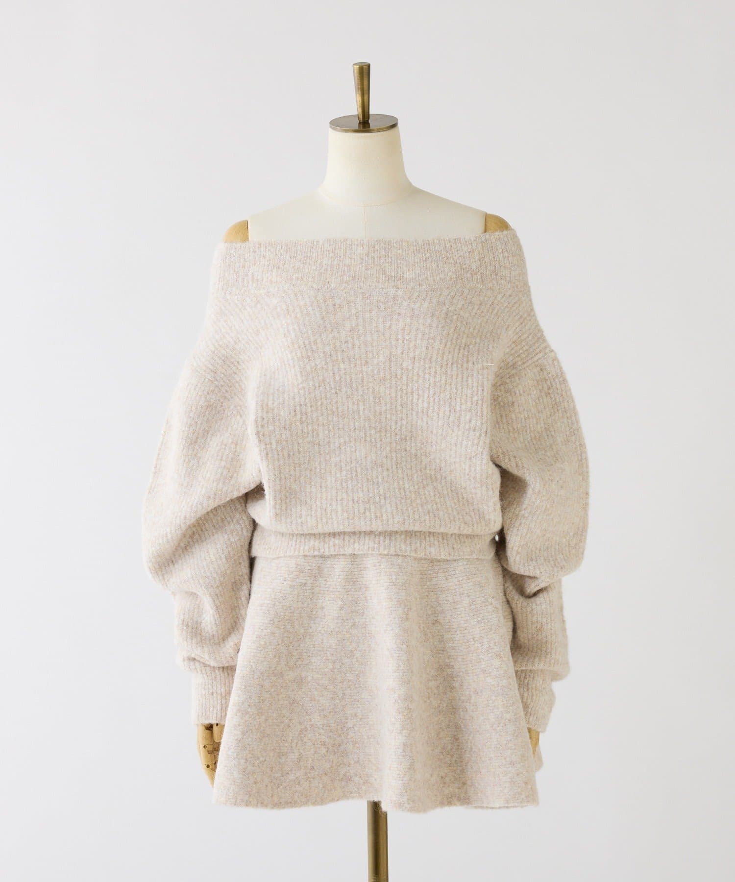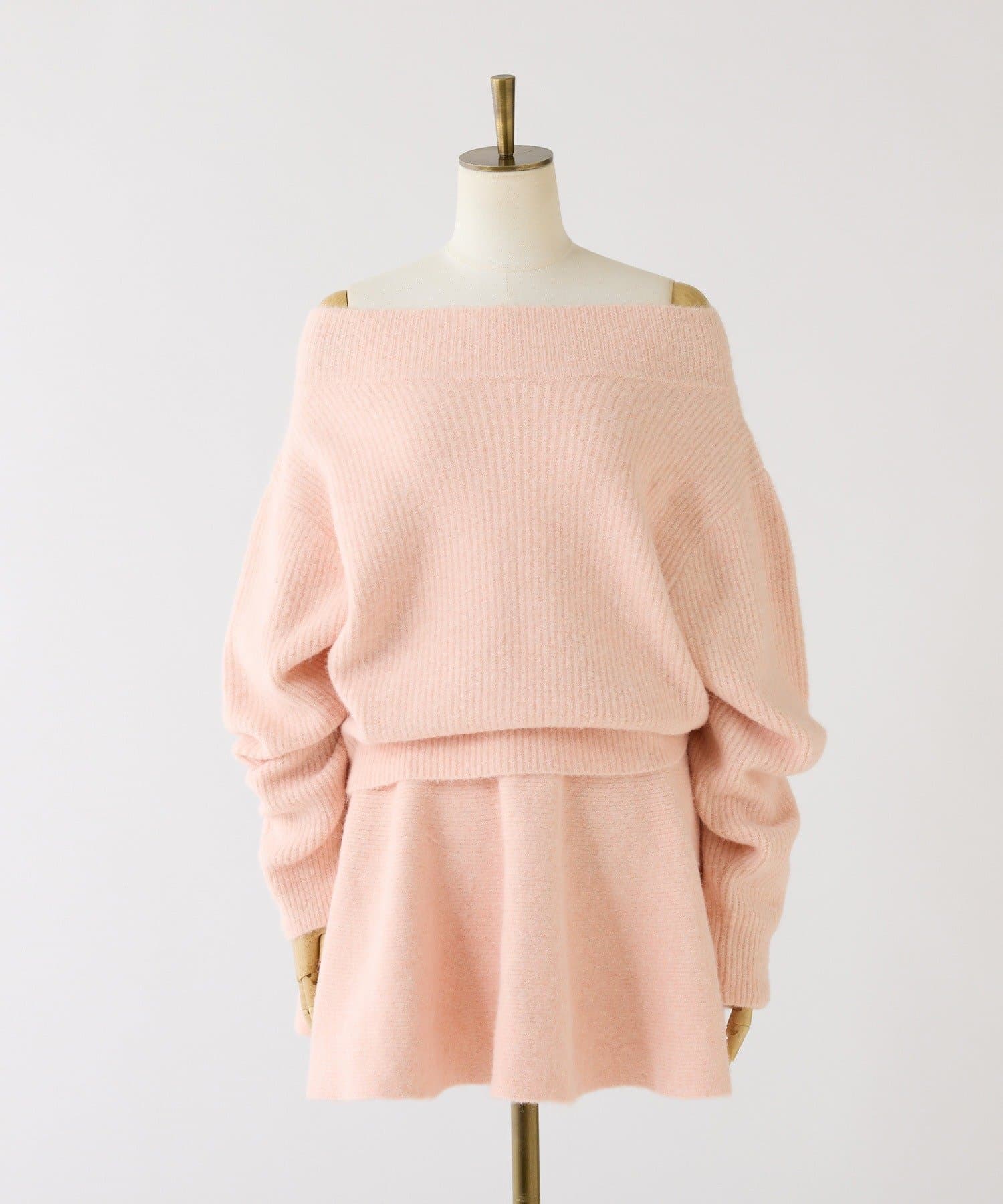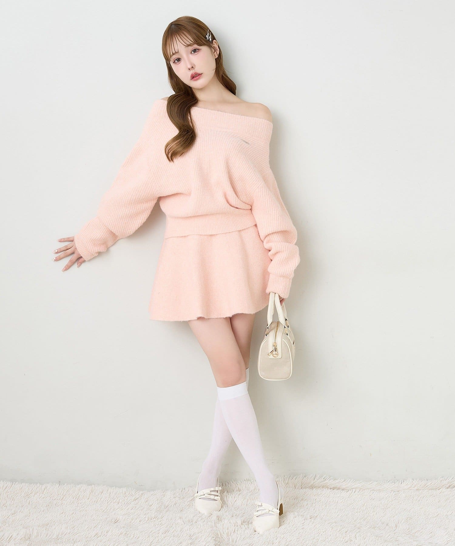 裾に向かってふんわり広がるフレアミニスカートがセットになったフェミニンなアイテム。