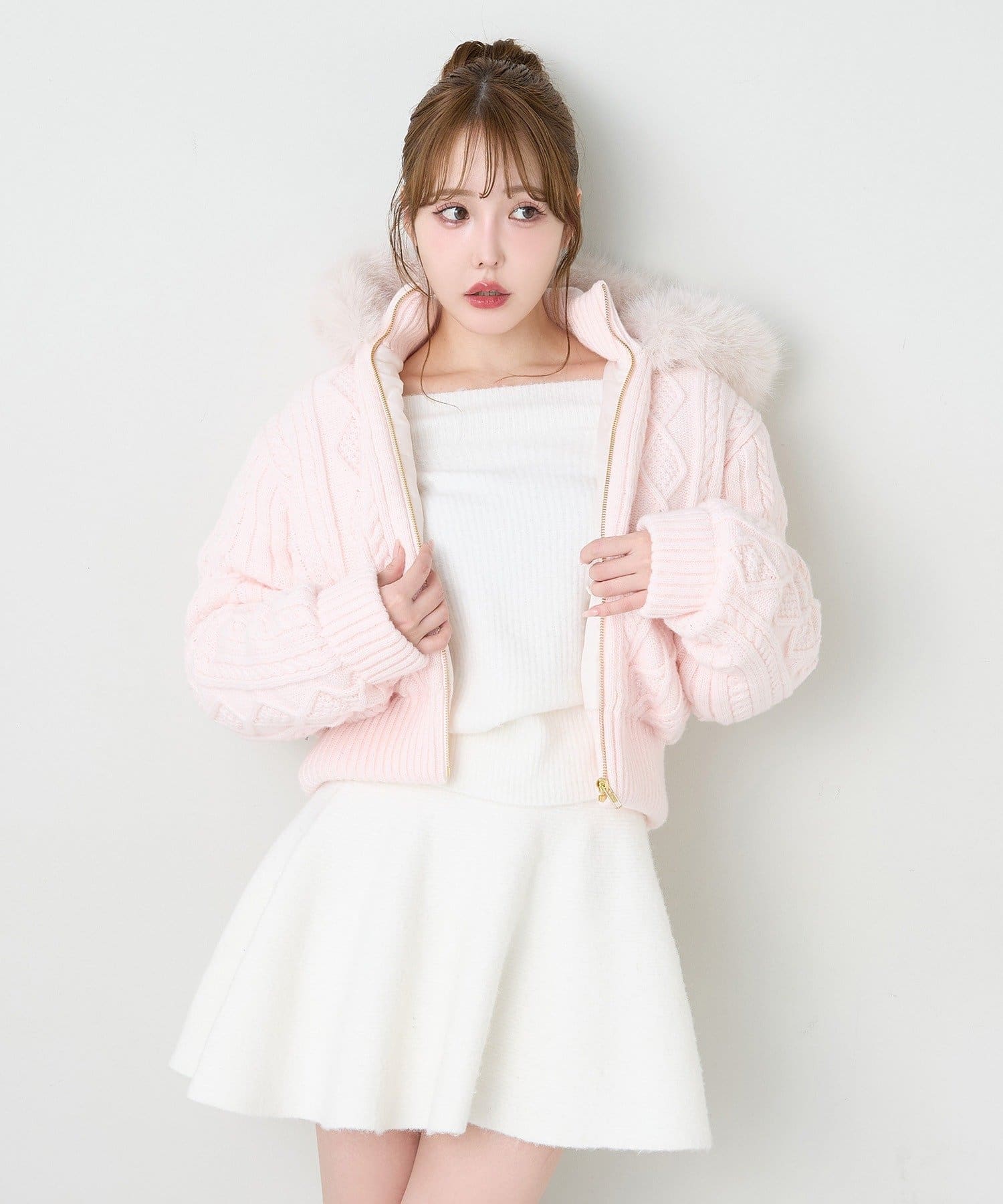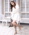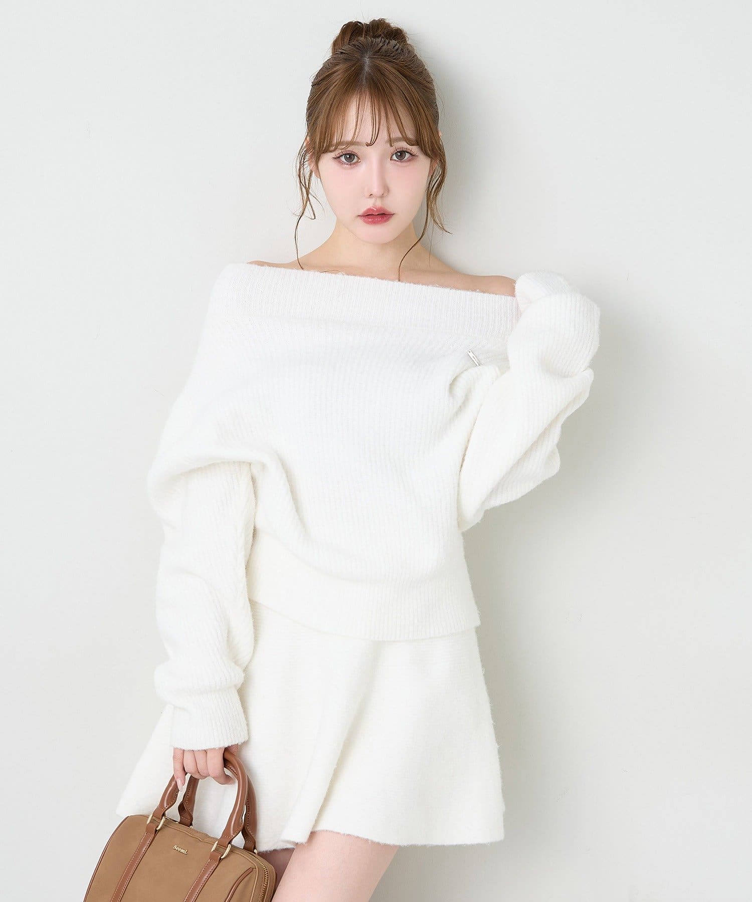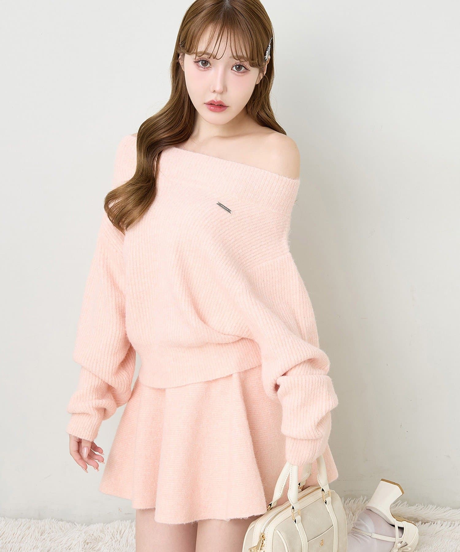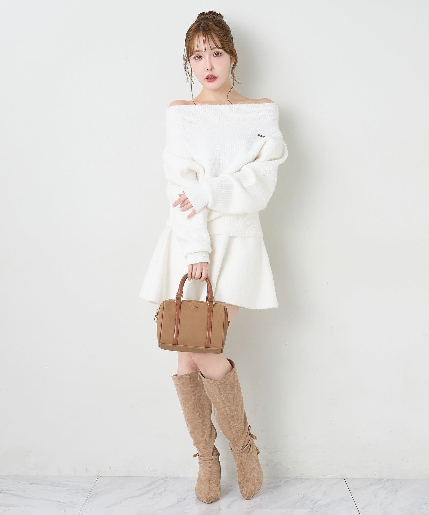 裾に向かってふんわり広がるフレアミニスカートがセットになったフェミニンなアイテム。