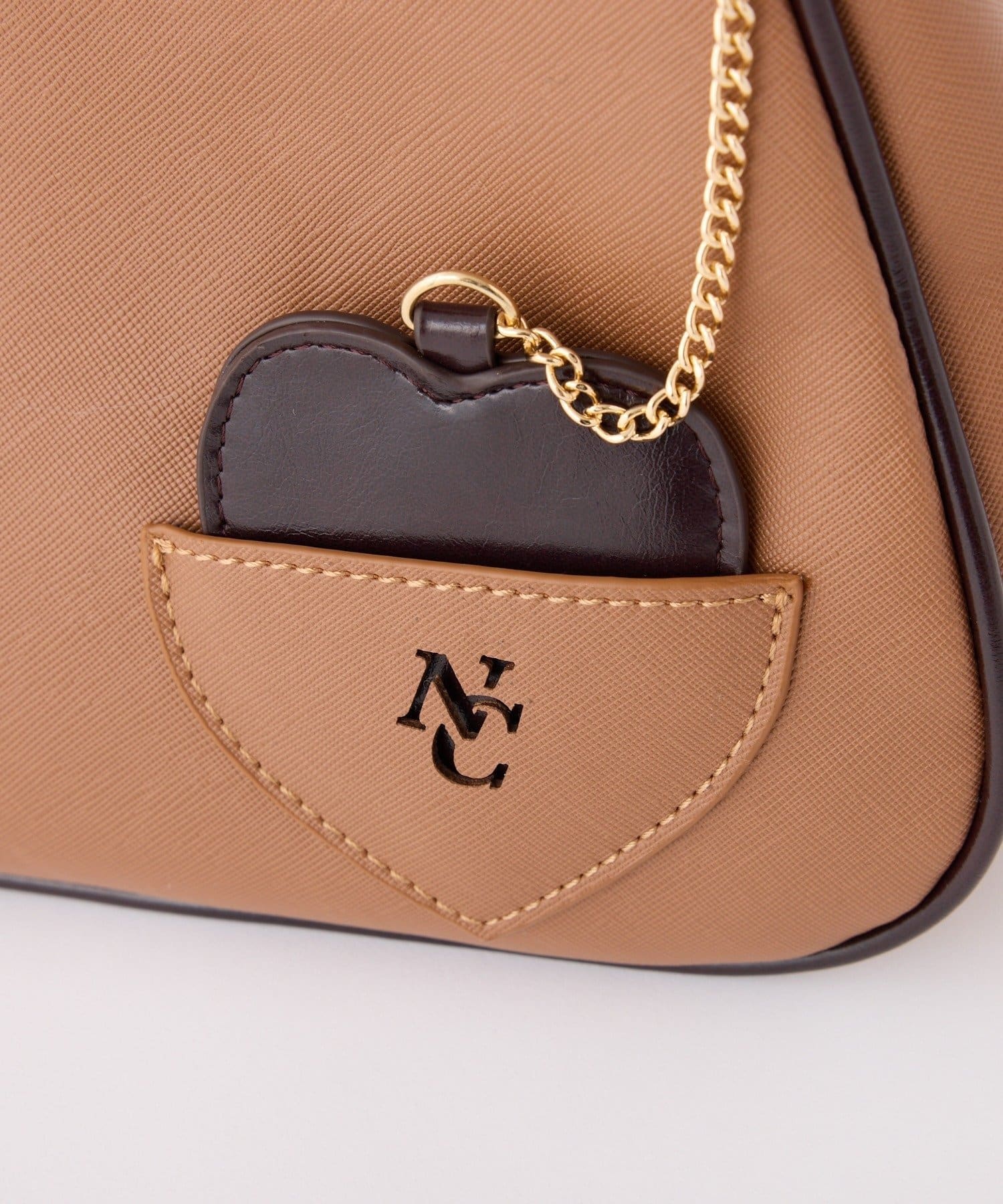 フロントにはハート型ポケットにミラーがセットになっています。