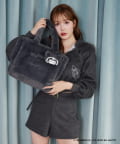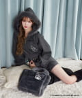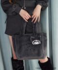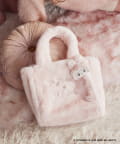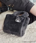 フロントにロゴ刺繍を施した、ふわふわ素材のフェイクファーバッグ。