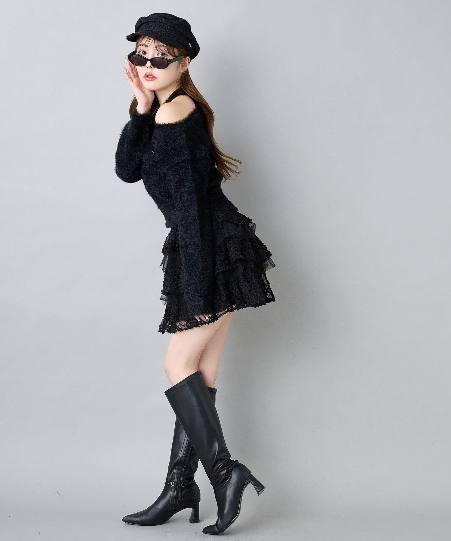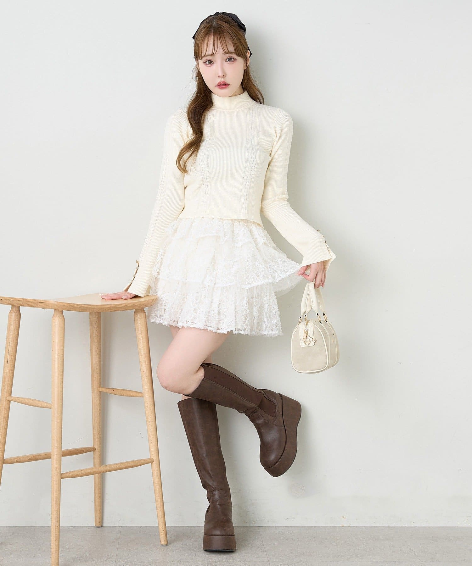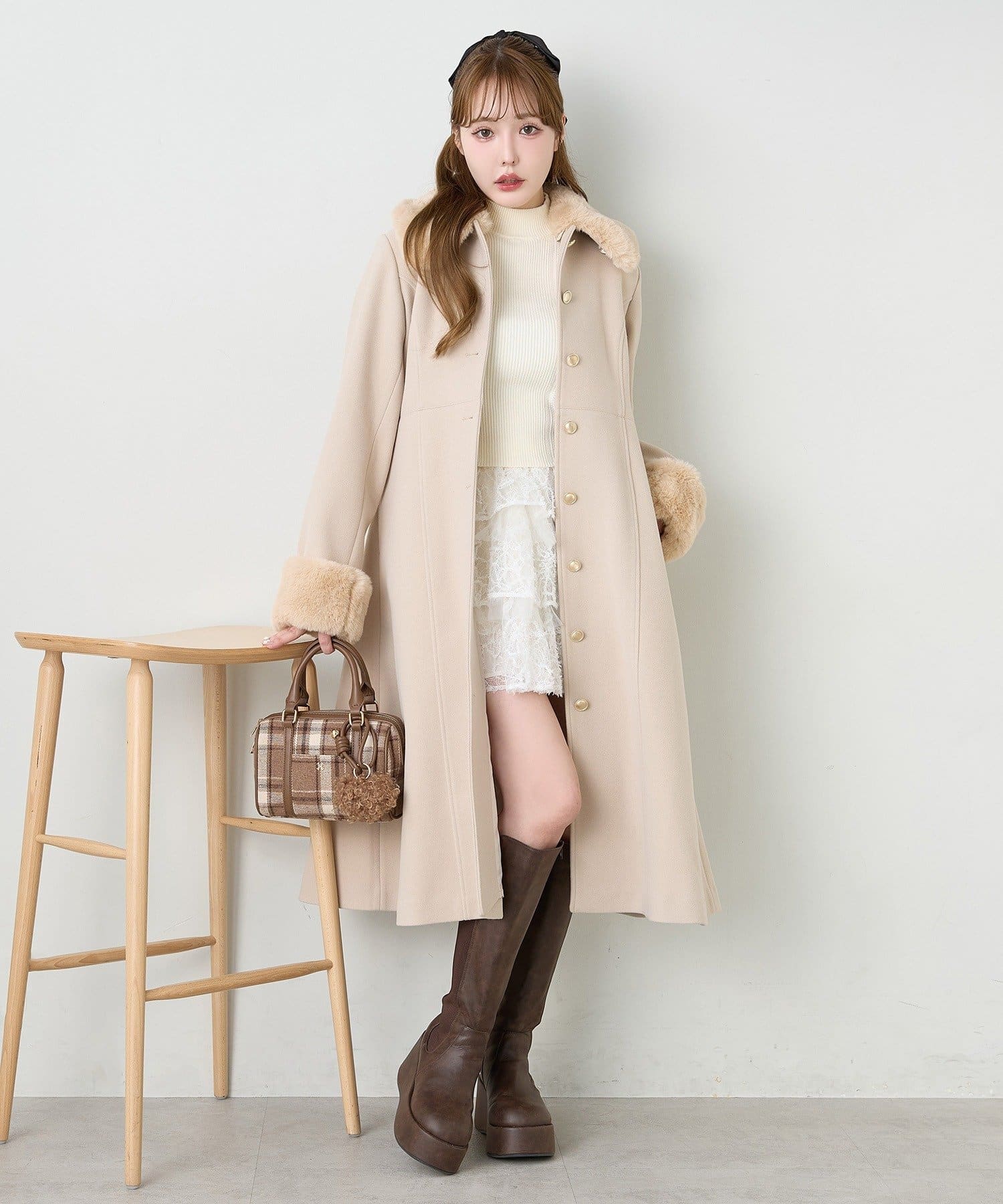 ロングブーツをプラスして、秋冬らしいバランスの取れたスタイルに。
