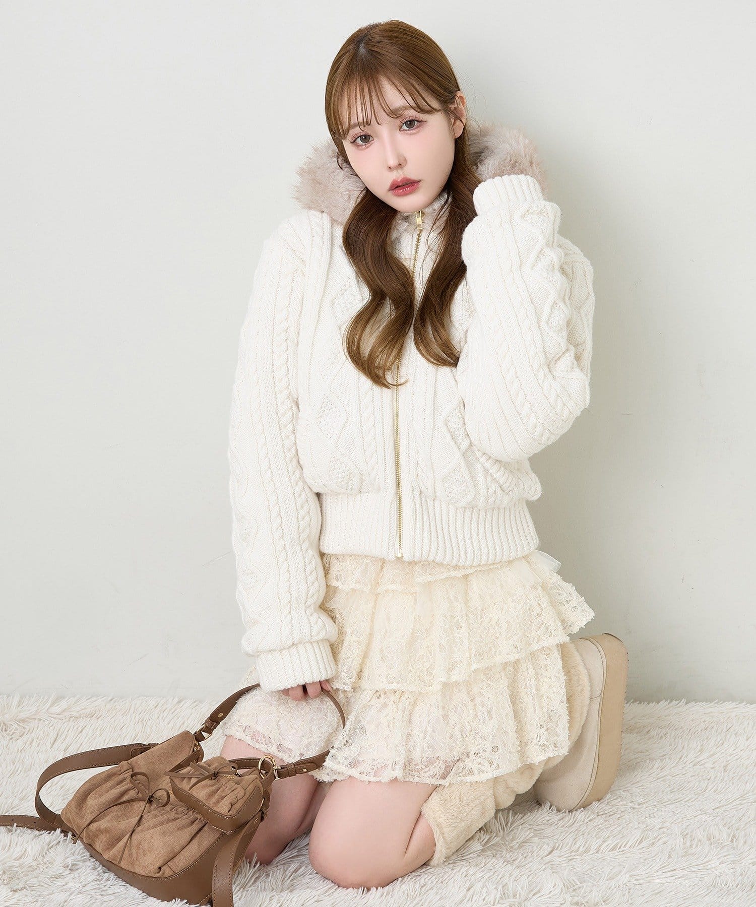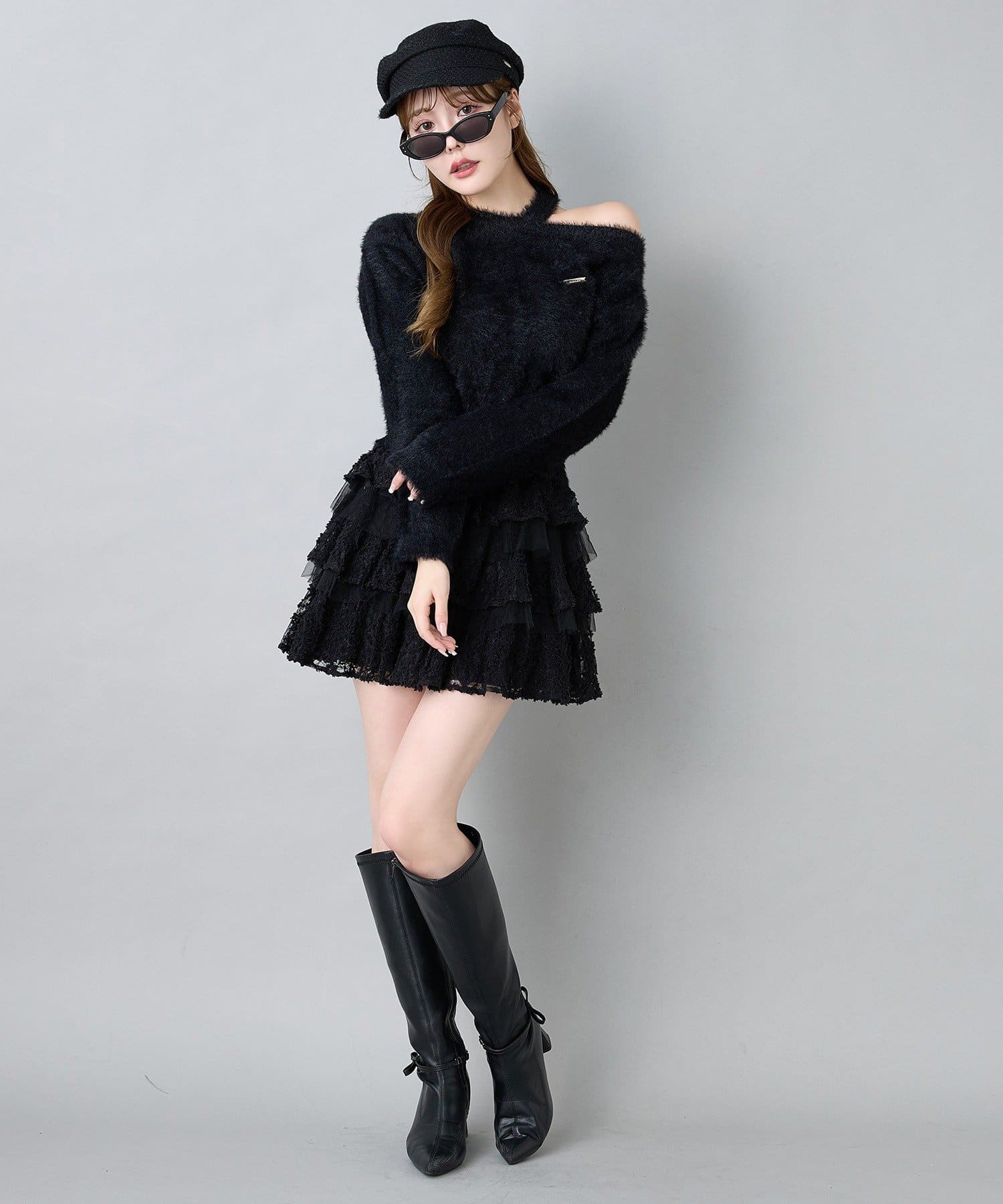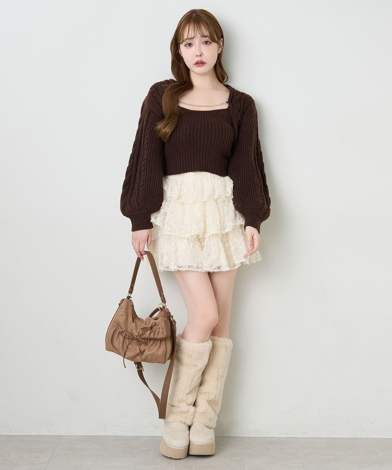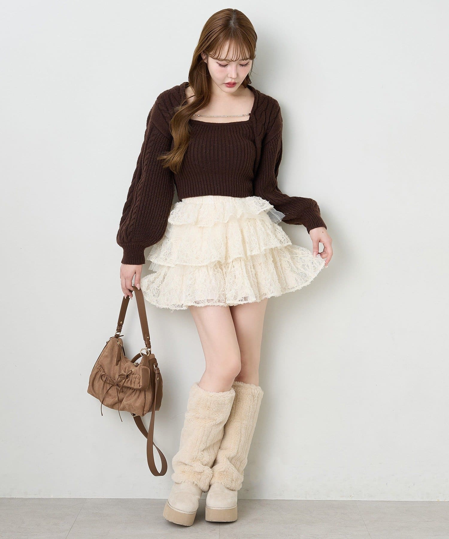 ショート丈ニットを合わせて王道ガーリーコーデに♡