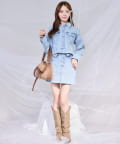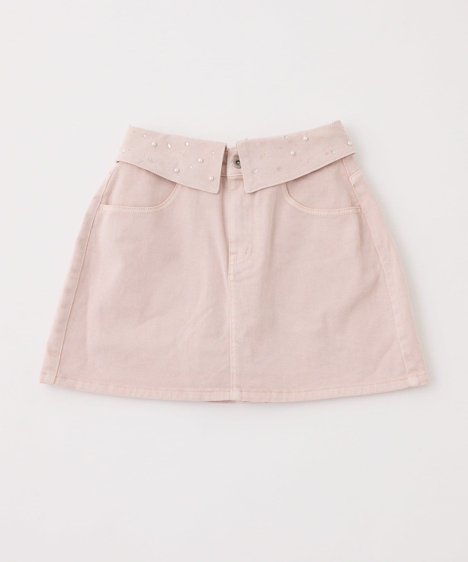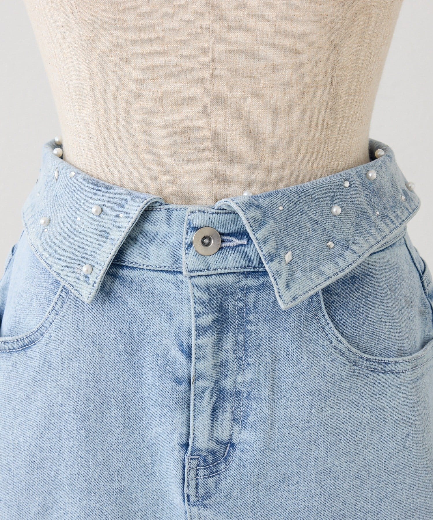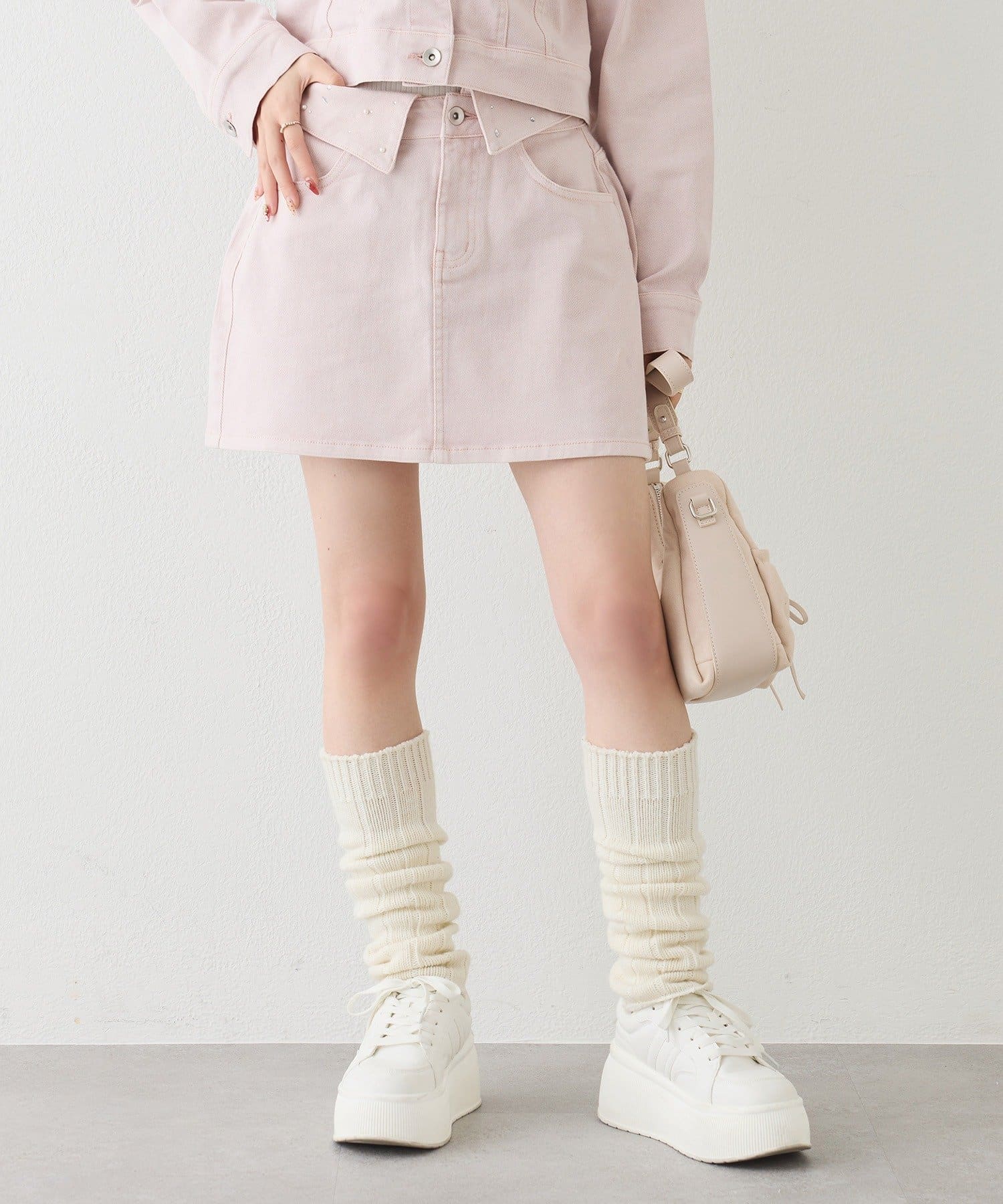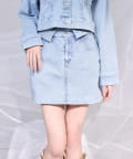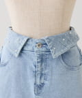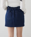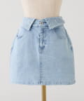 ウエストの折り返しデザインが目を惹く、トレンド感たっぷりのデニムミニスカート。
