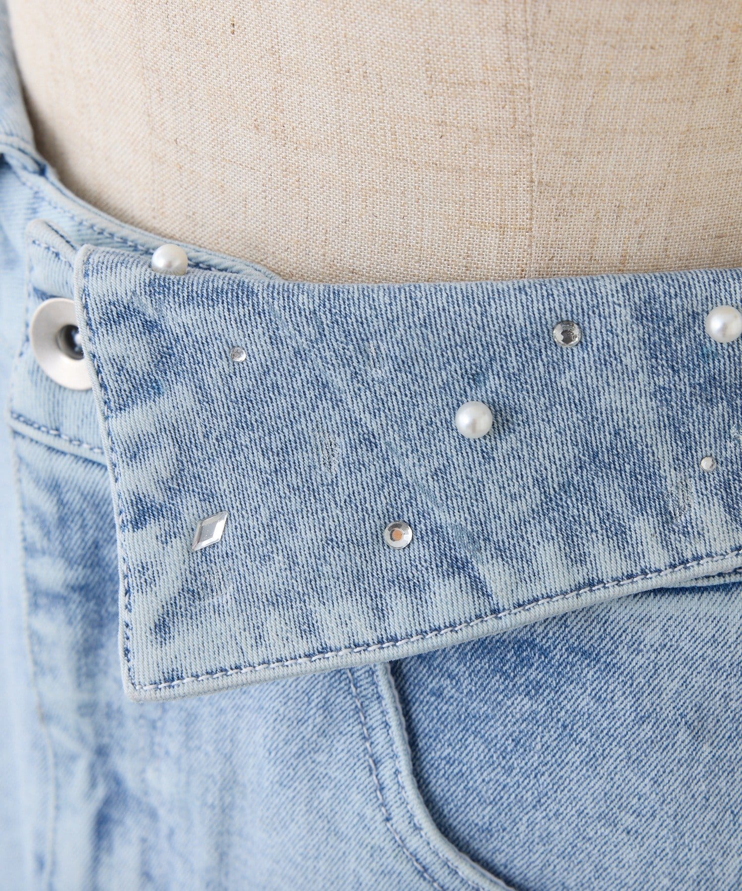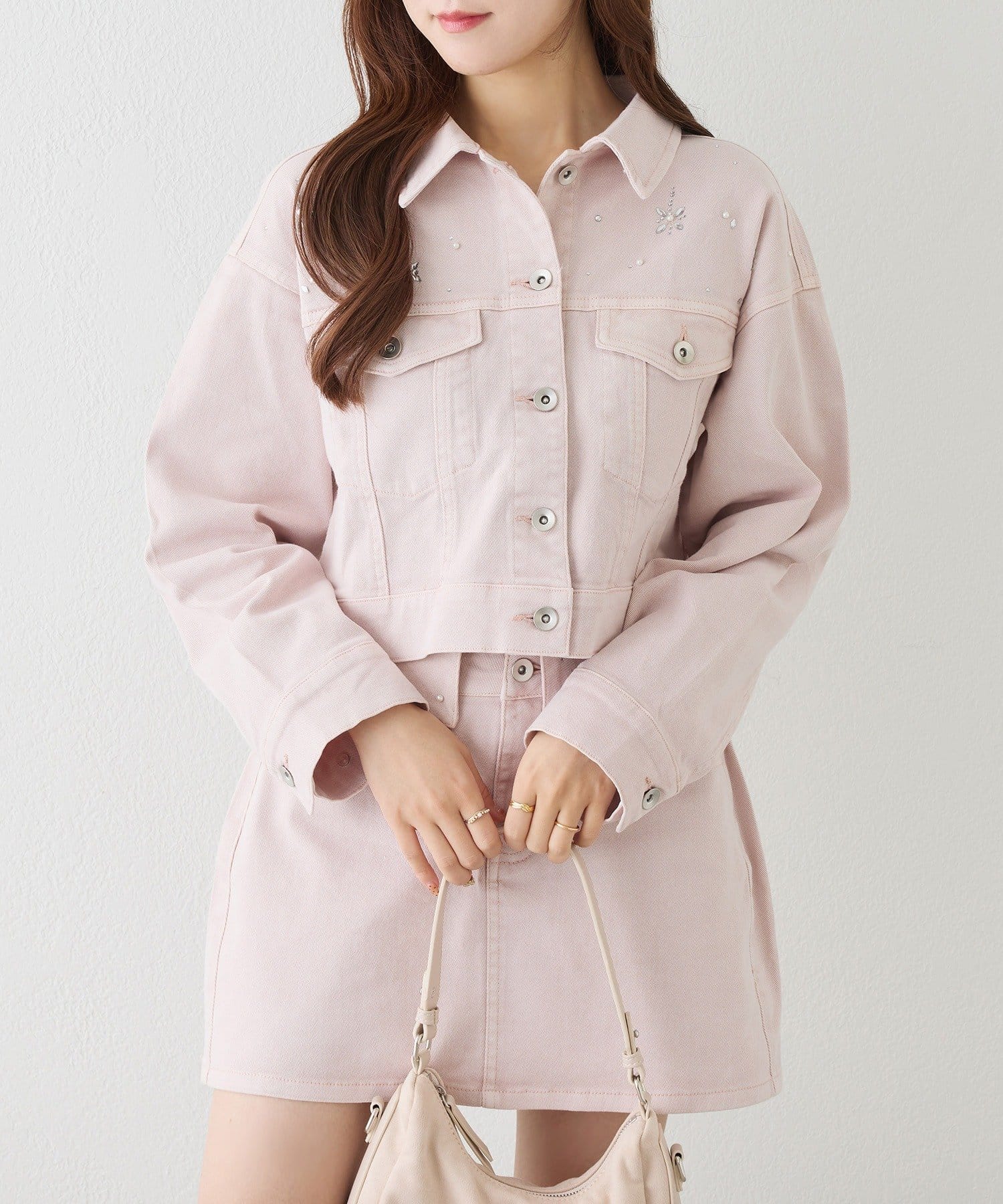 きらっと輝くビジューをあしらい、カジュアルなデニムに女の子らしさをプラスしました♡