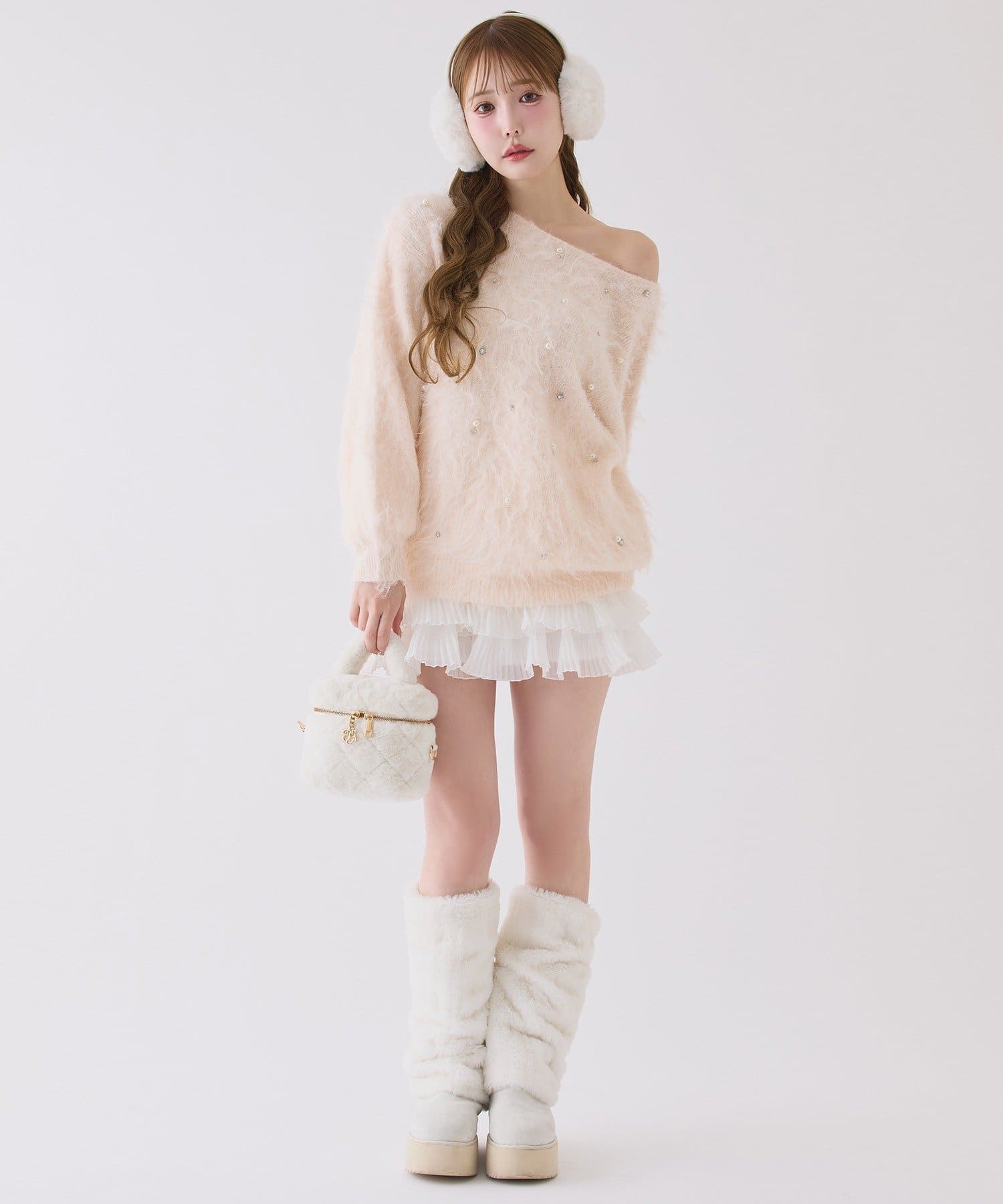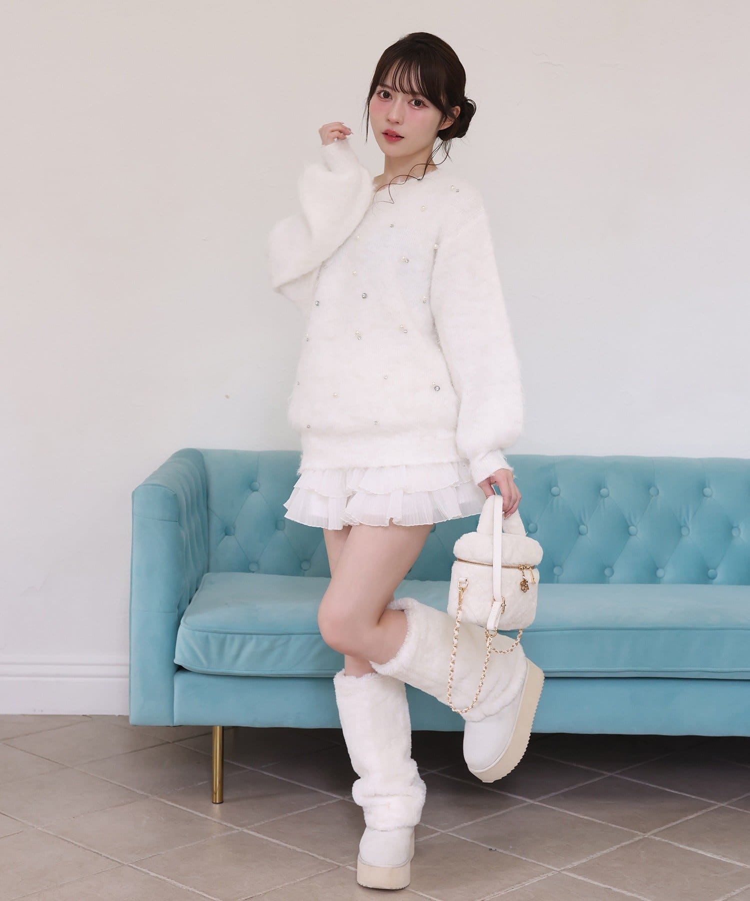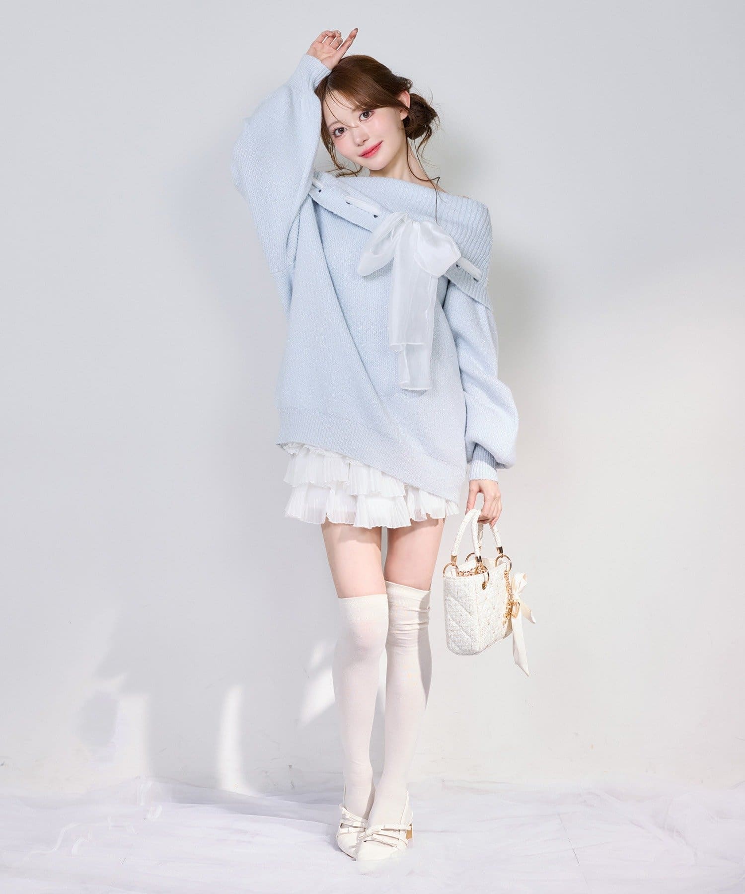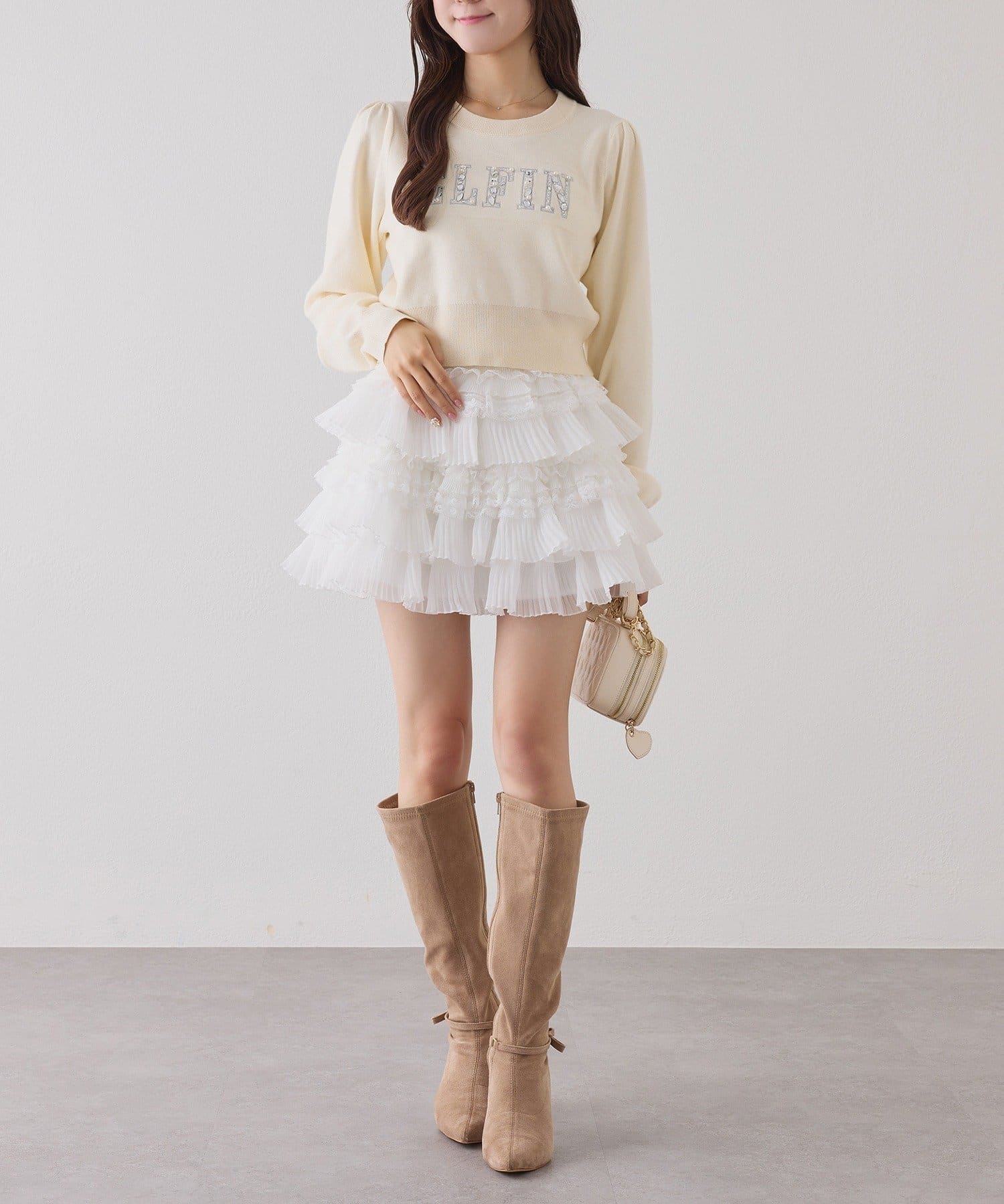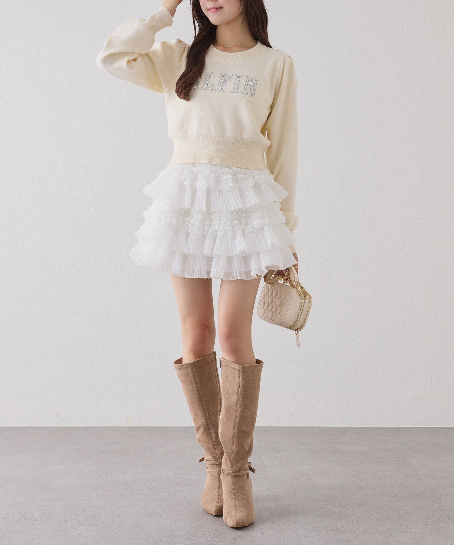 ショート丈ニットを合わせて王道ガーリーコーデに♡