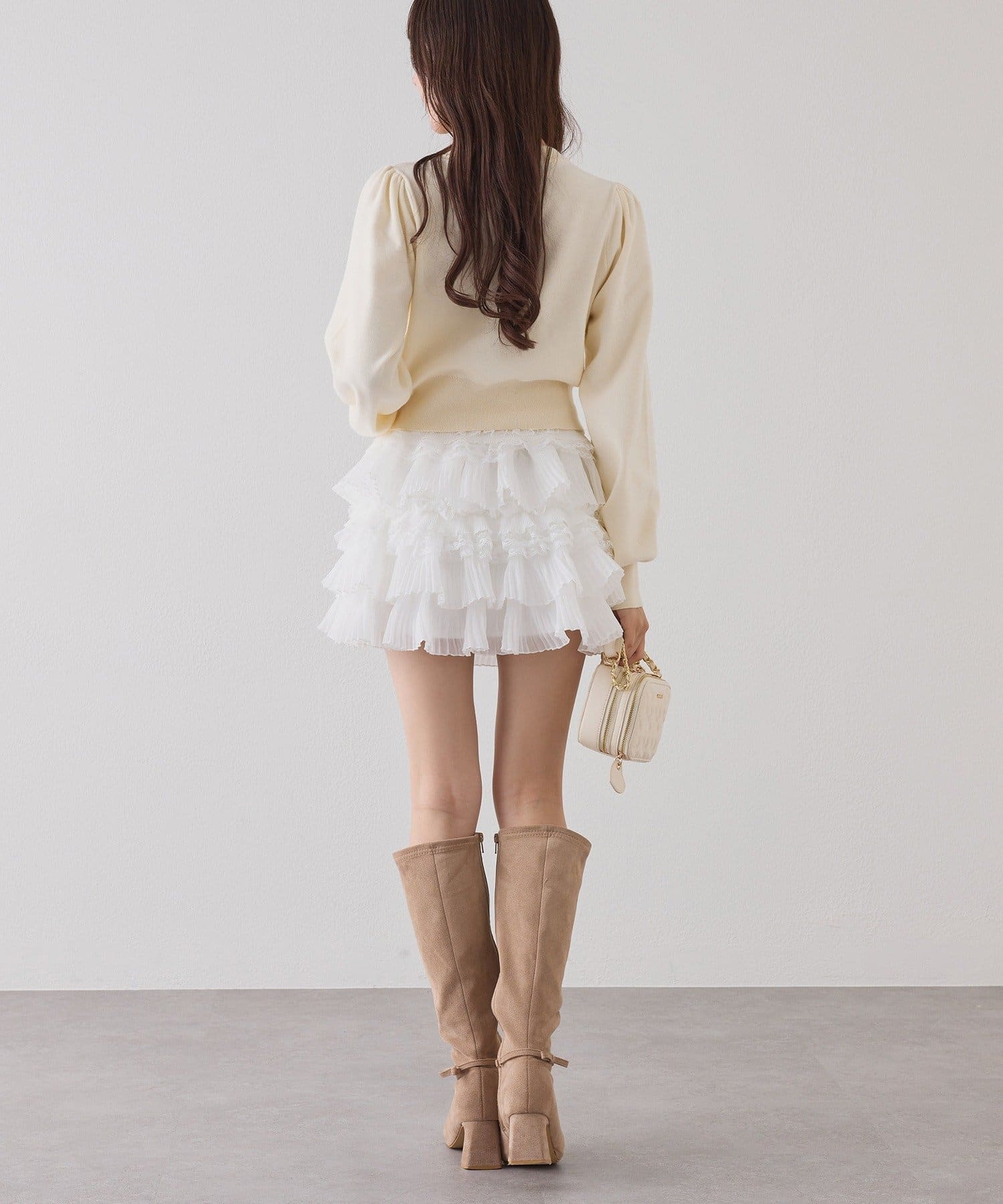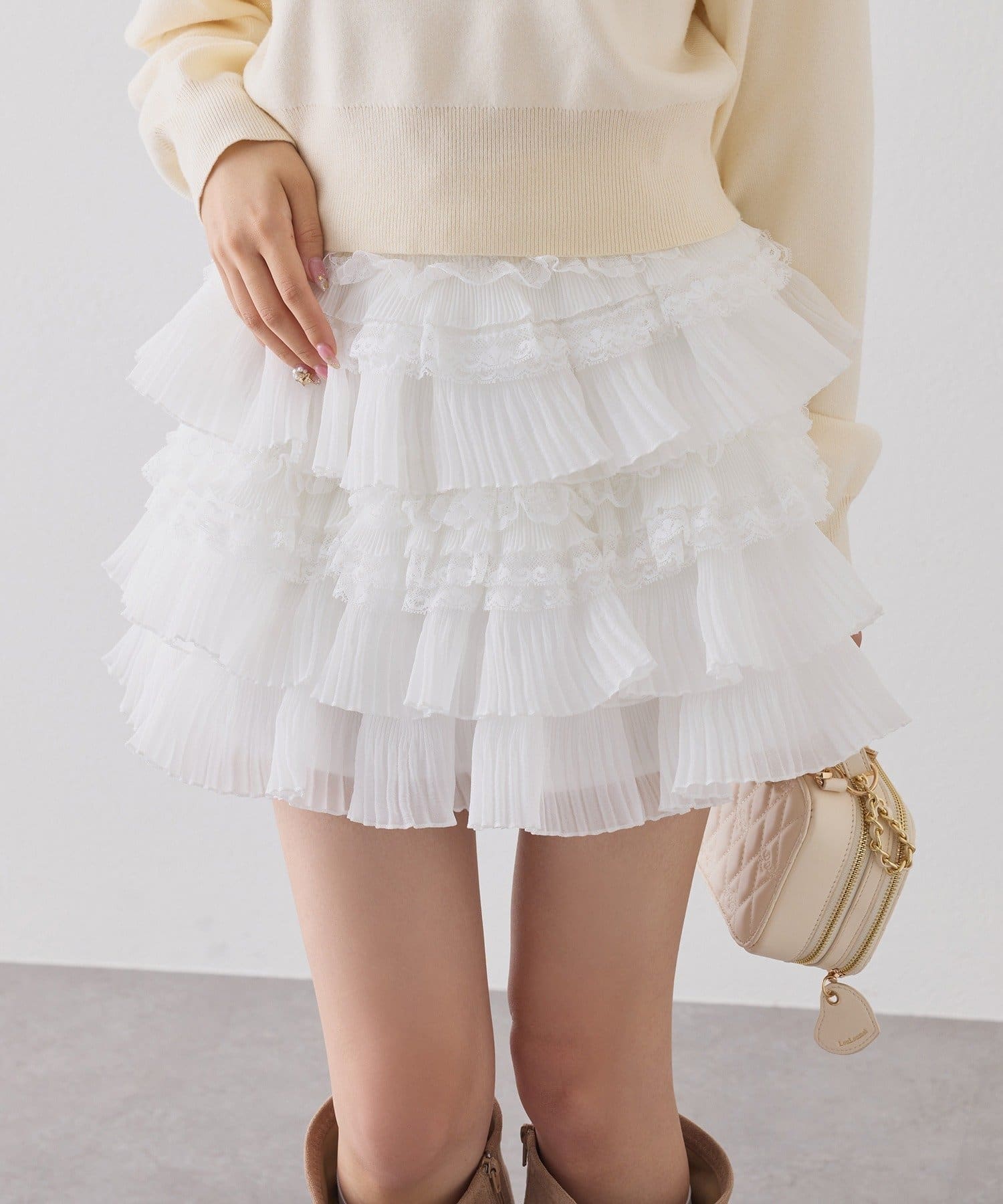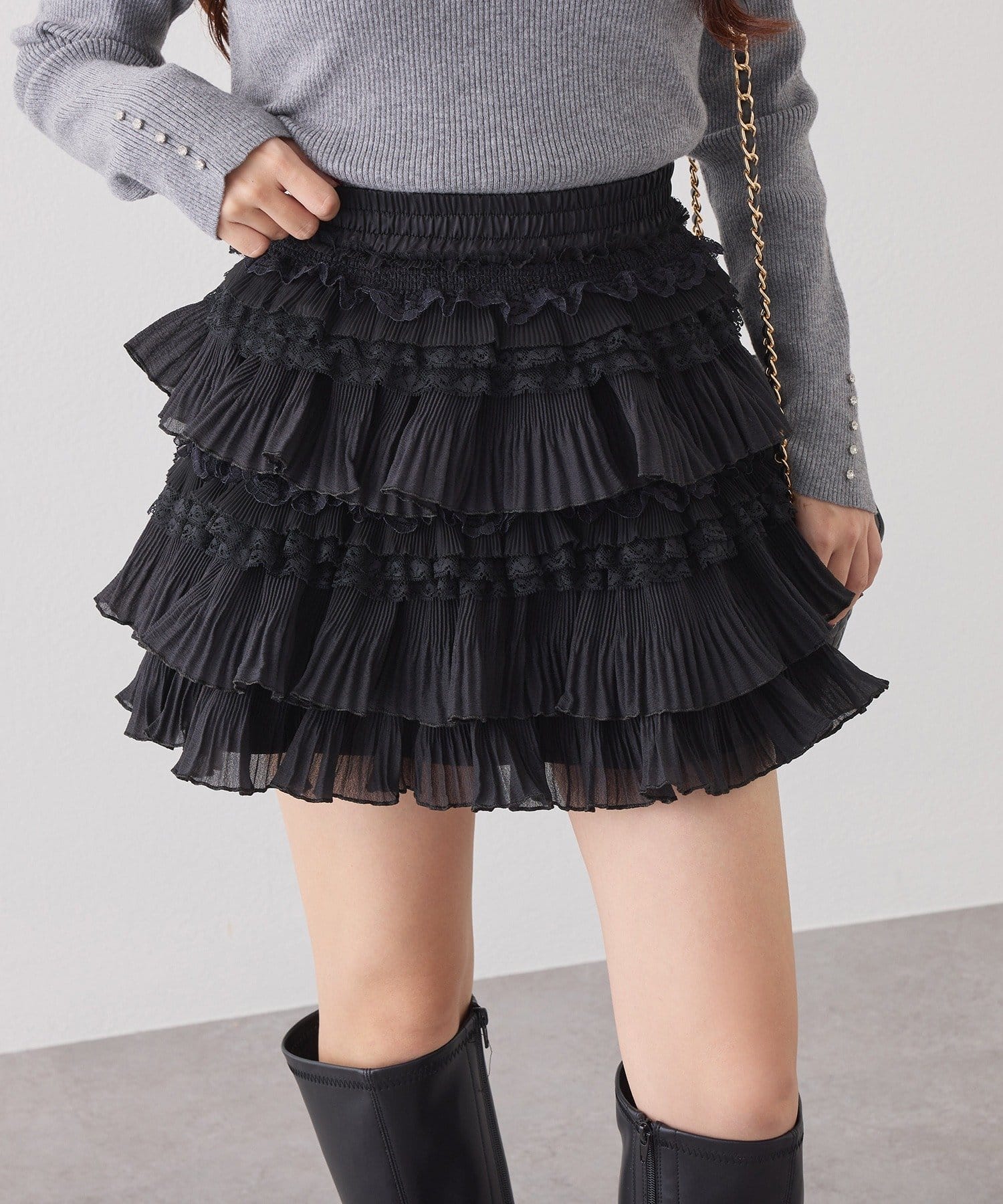 ふんわりと広がるフリルデザインが可愛いミニスカート。