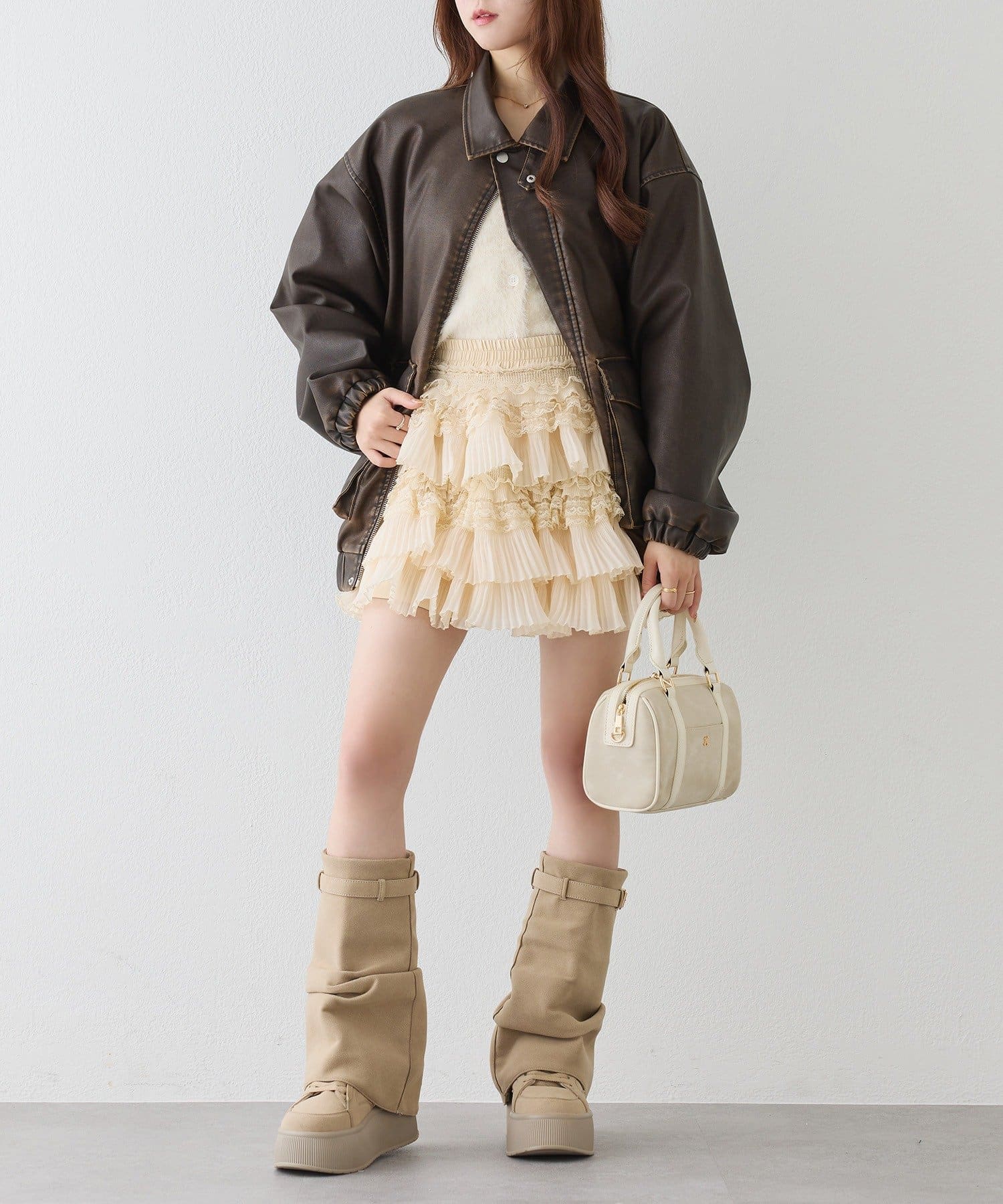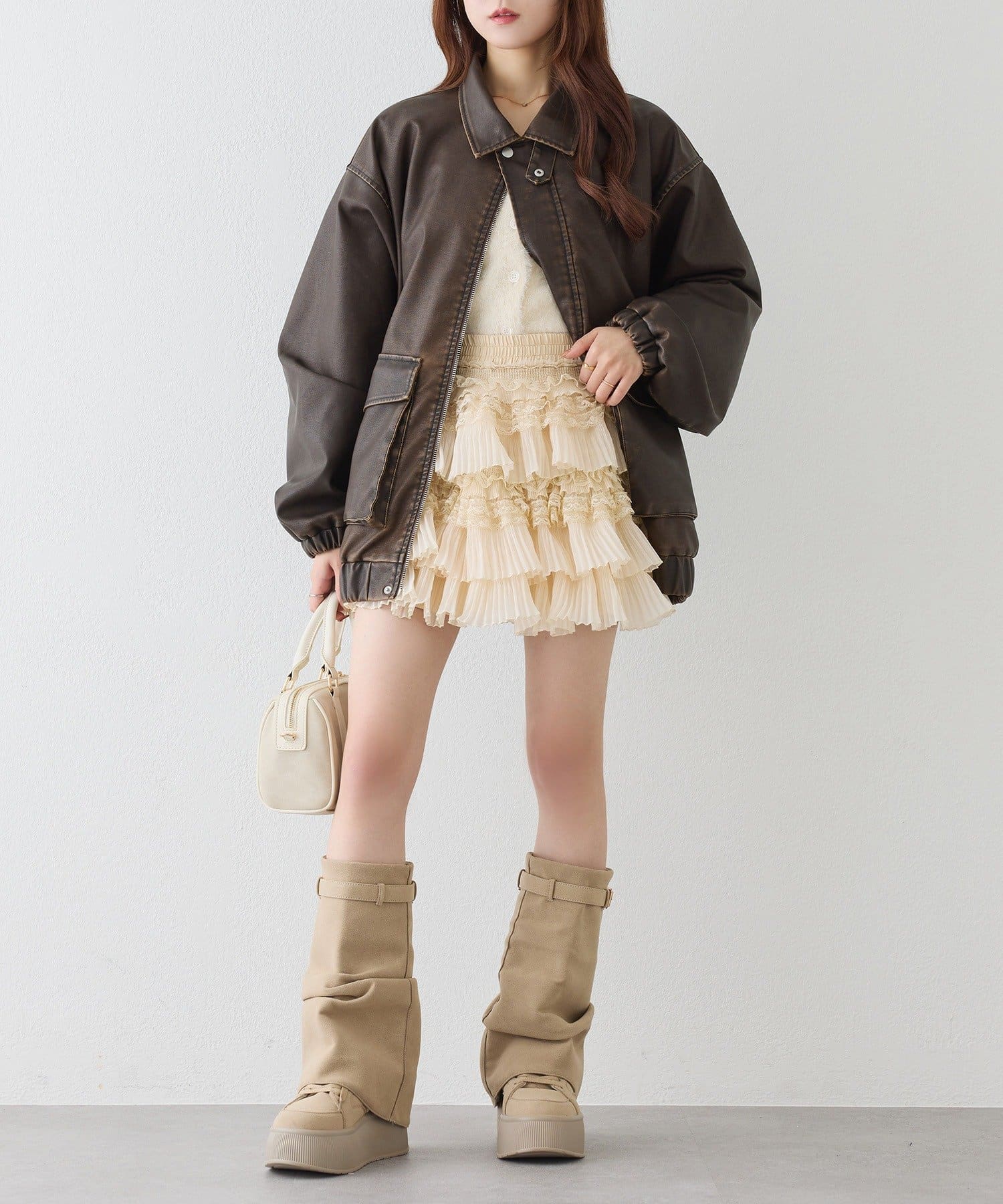 ジャケットを羽織れば大人っぽい甘辛MIXコーデに。