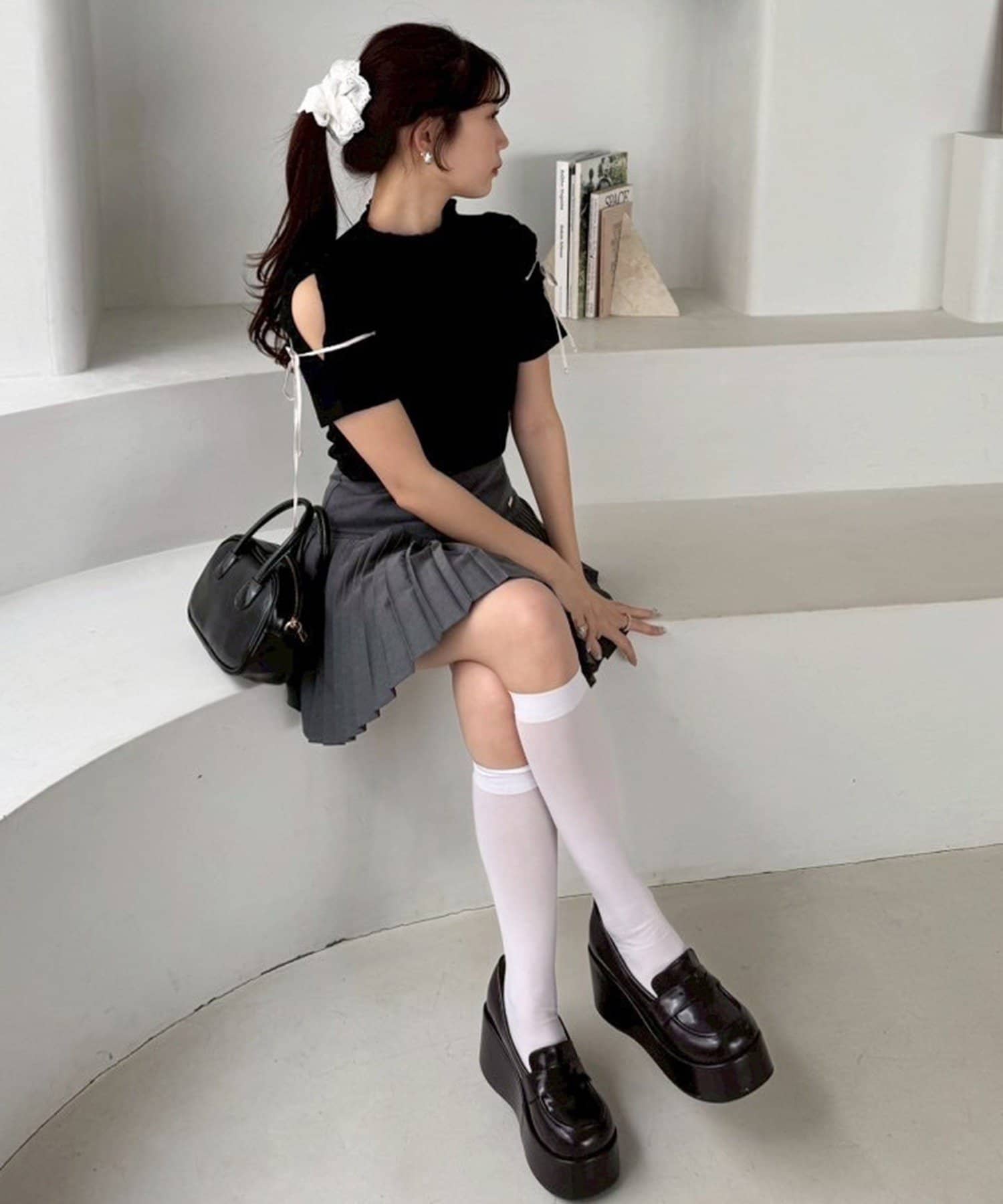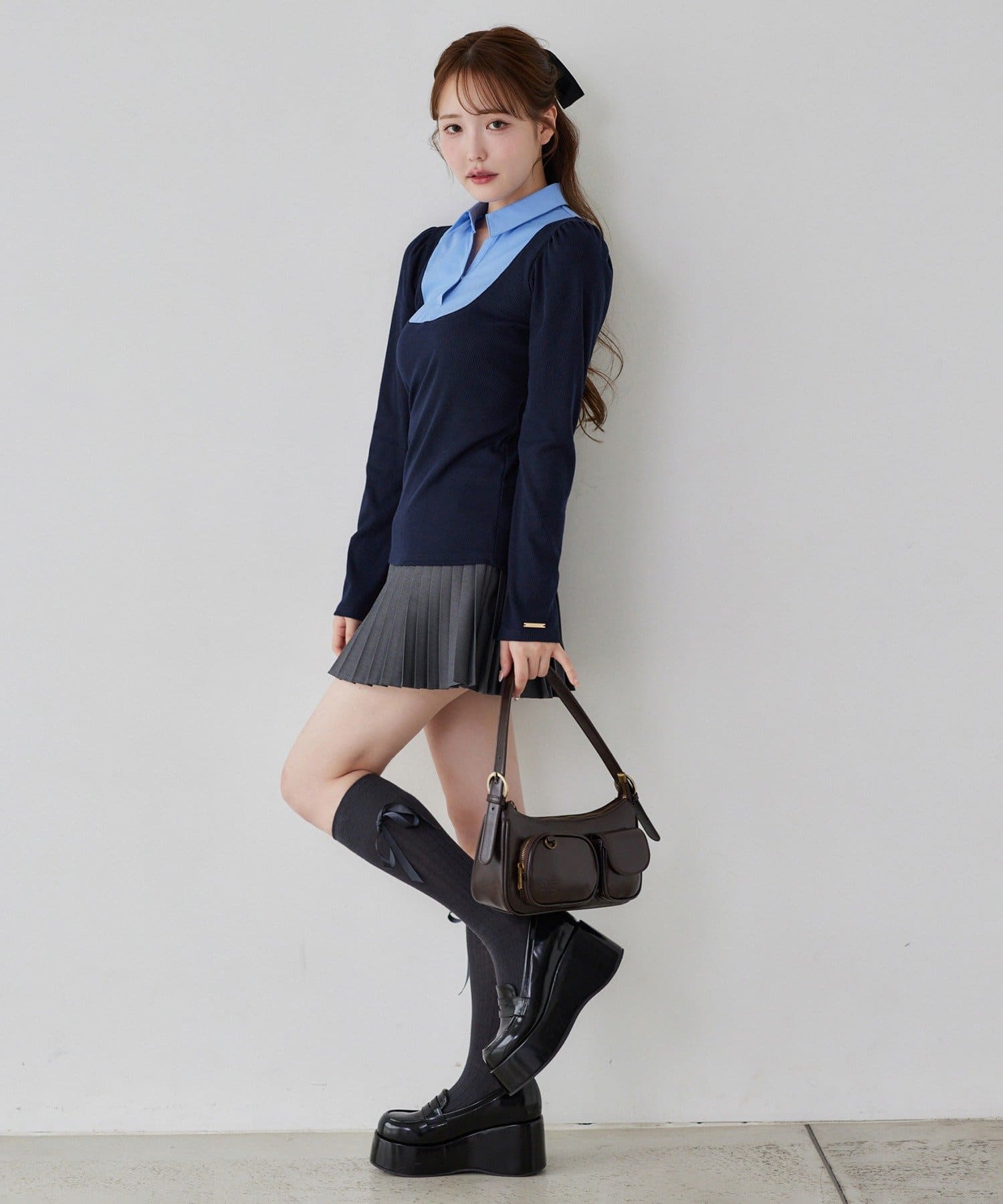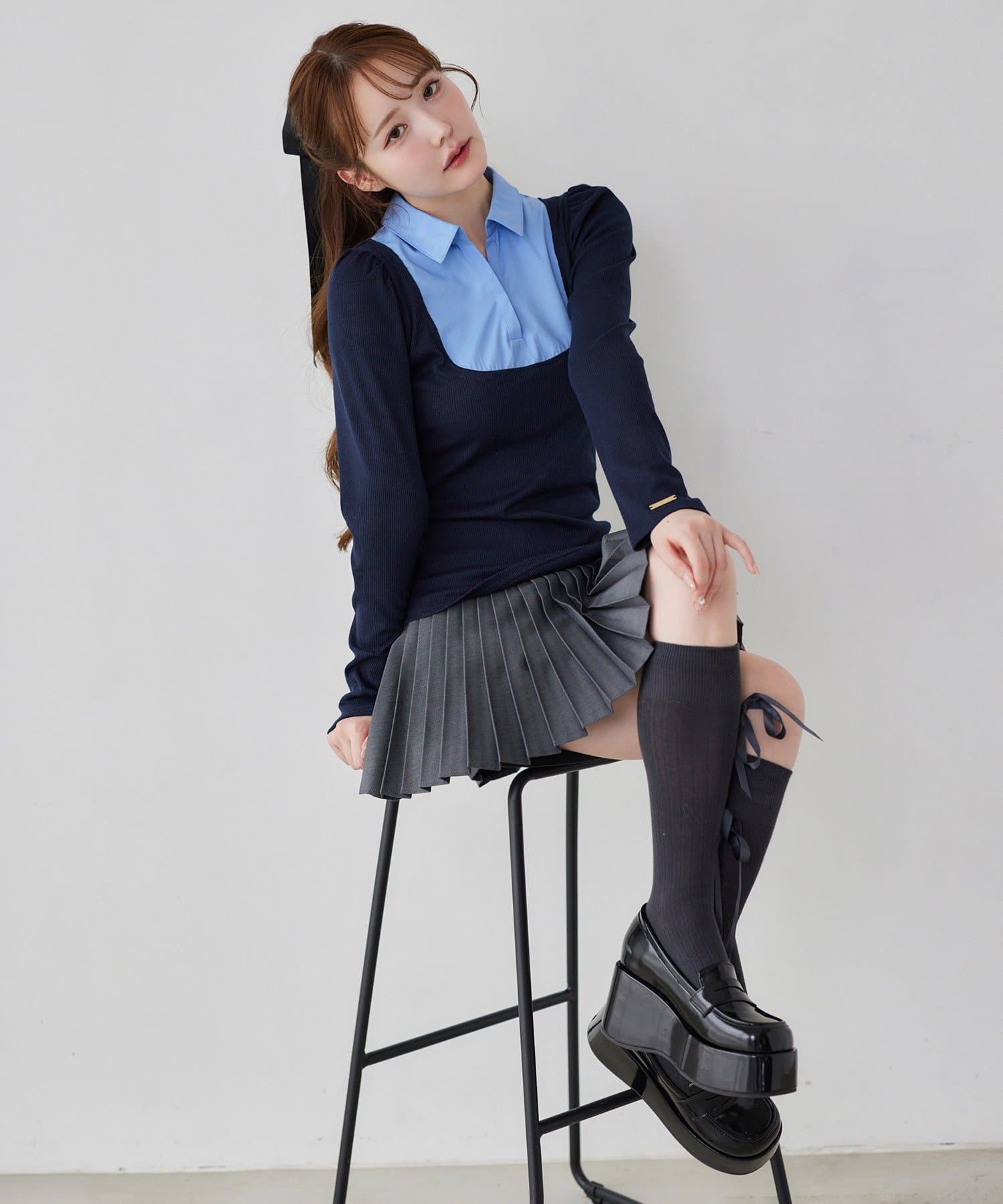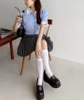 足元はハイソックスにローファーやパンプス合わせが