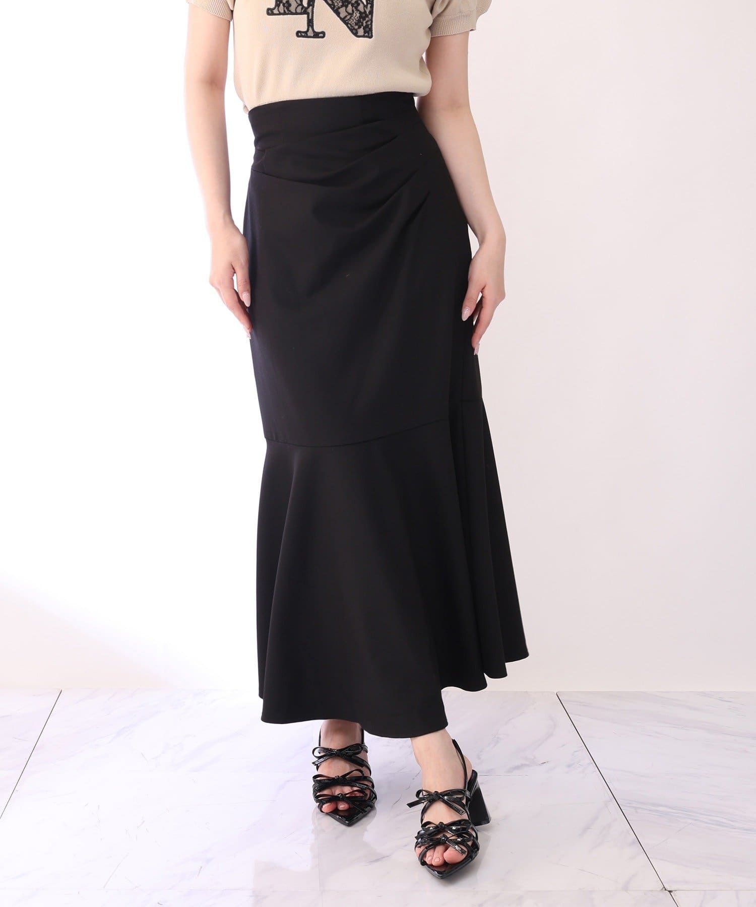 ひざ下から広がるマーメイドシルエットで、女性らしいラインをきれいに演出してくれる1枚です。