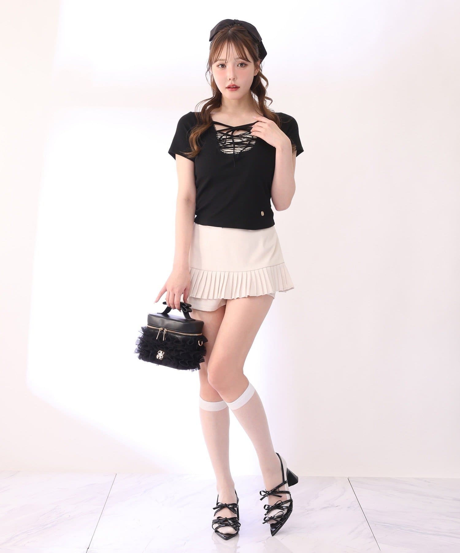 美脚効果の高いプリーツミニスカート