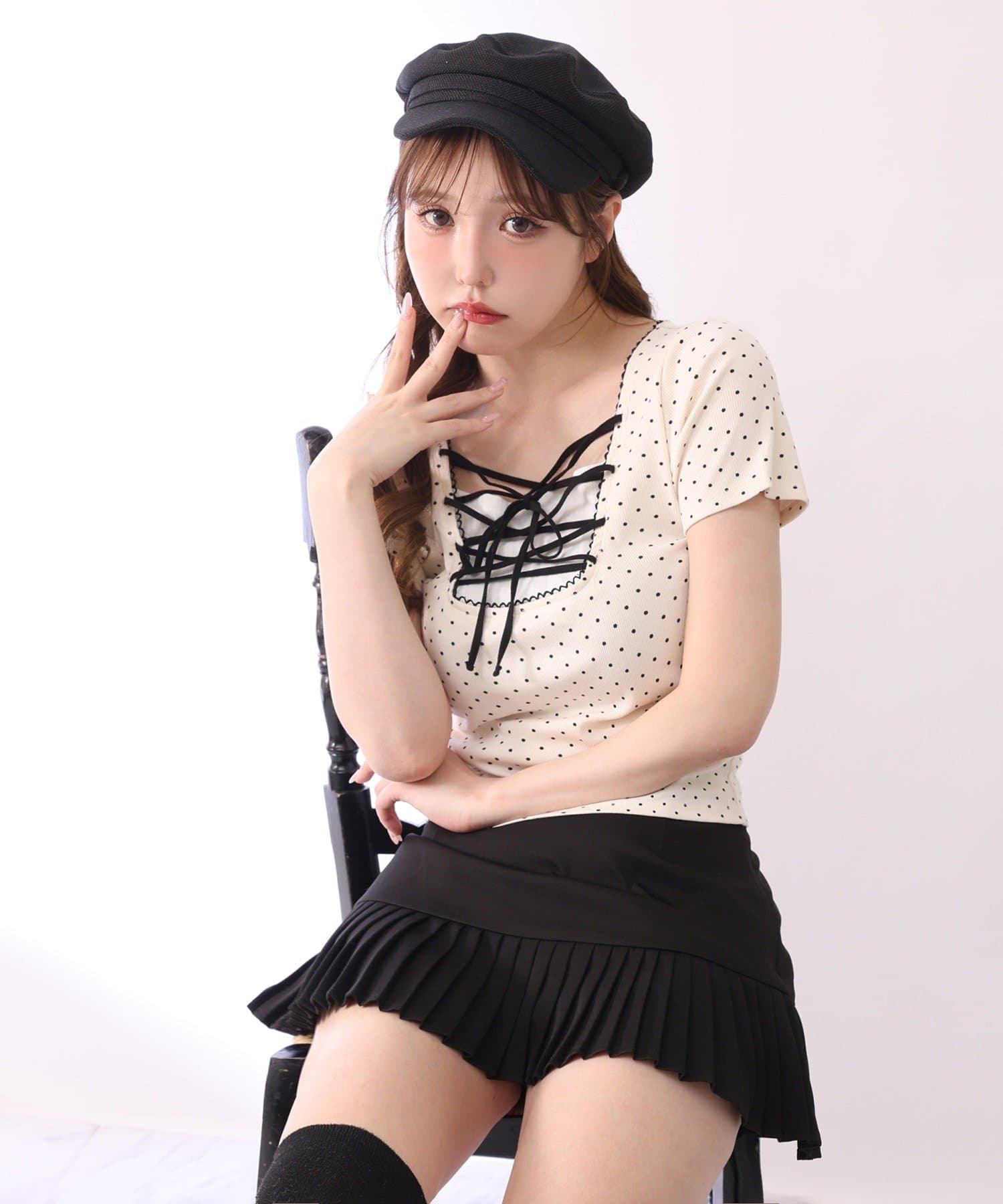 スカパンツになっているので、ミニ丈でも気にせずに着用していただけます。