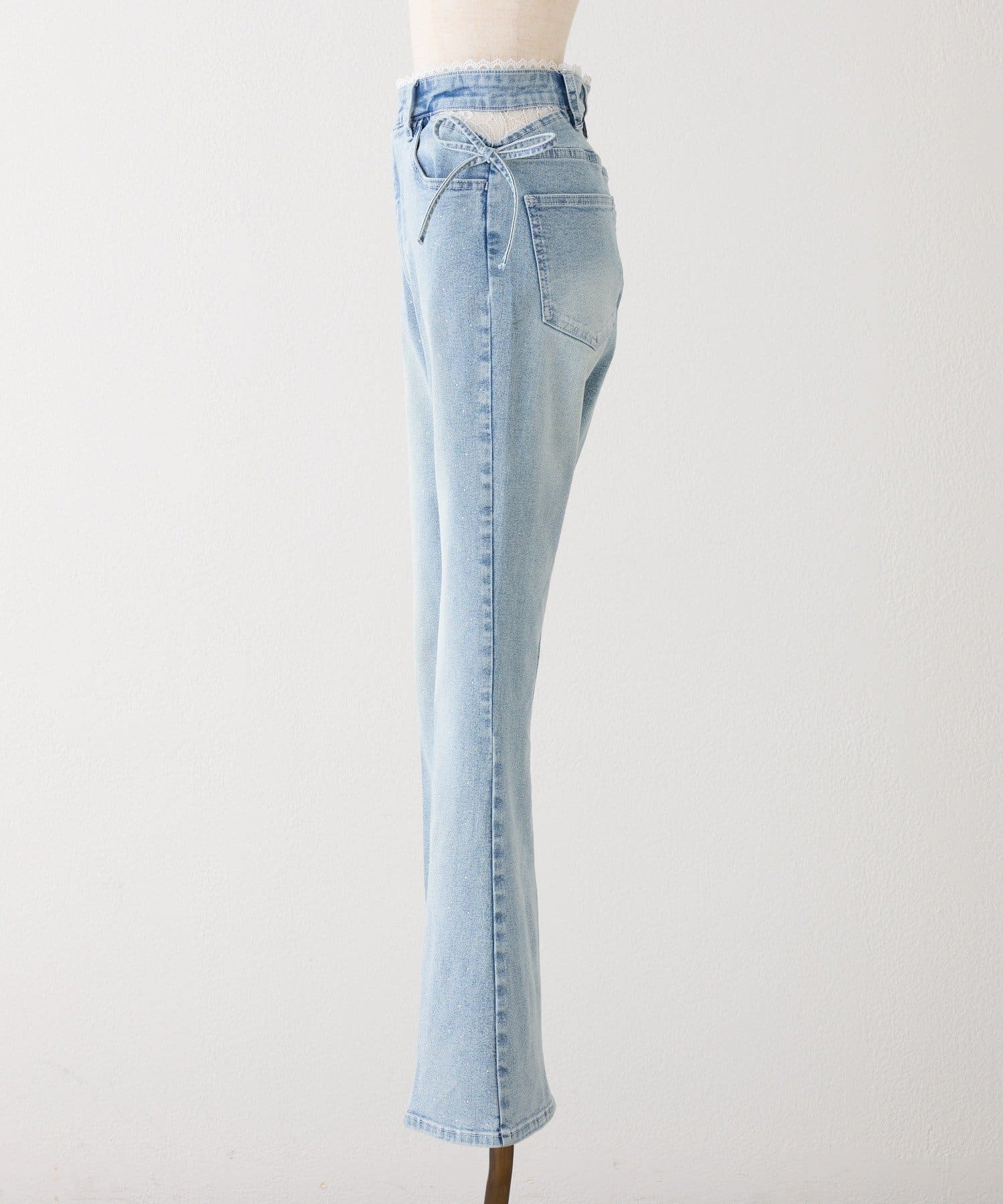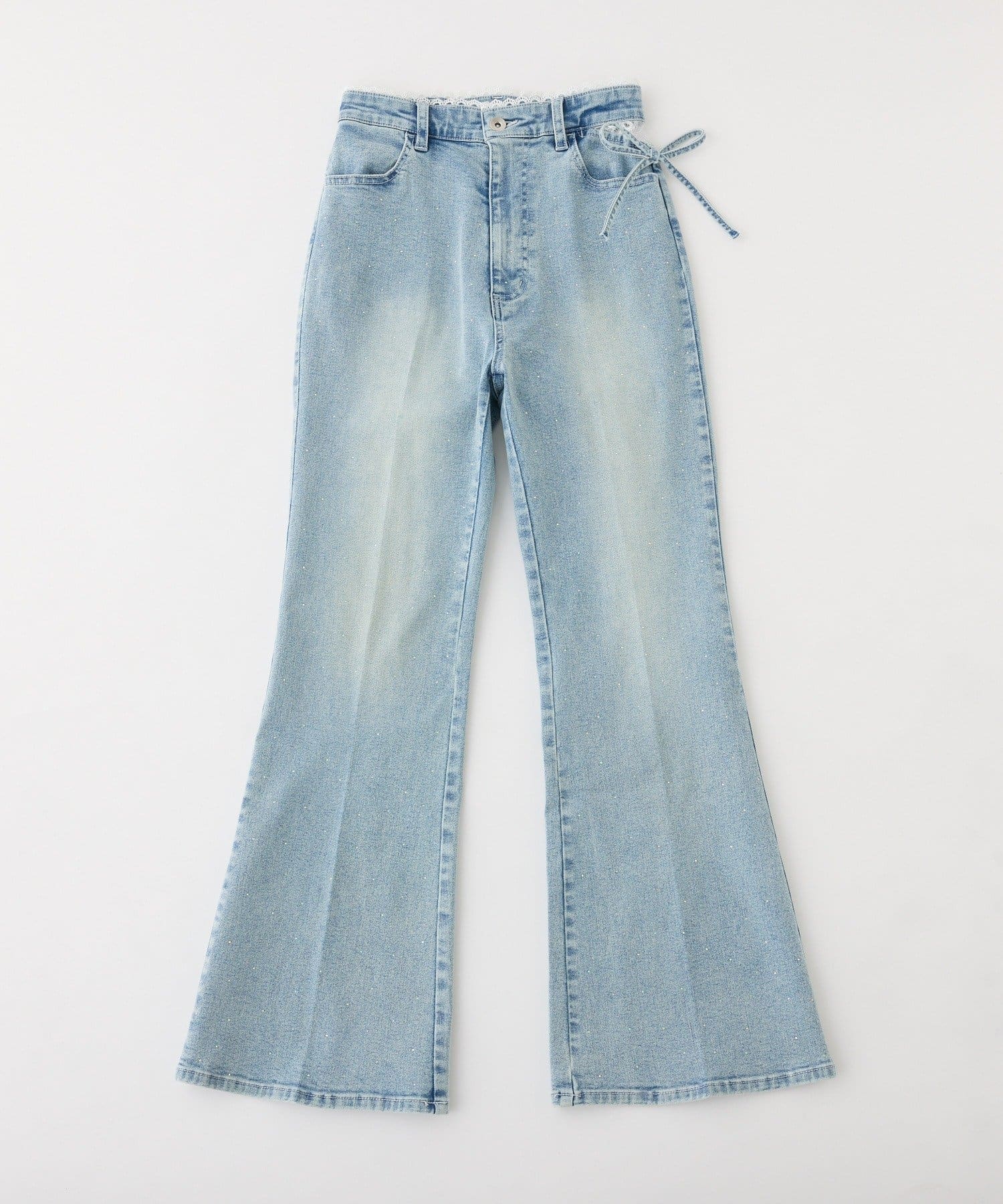サイドカットレースフレアデニム