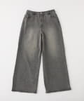 【ウェスト調整可能】ビジュー付きワイドデニム