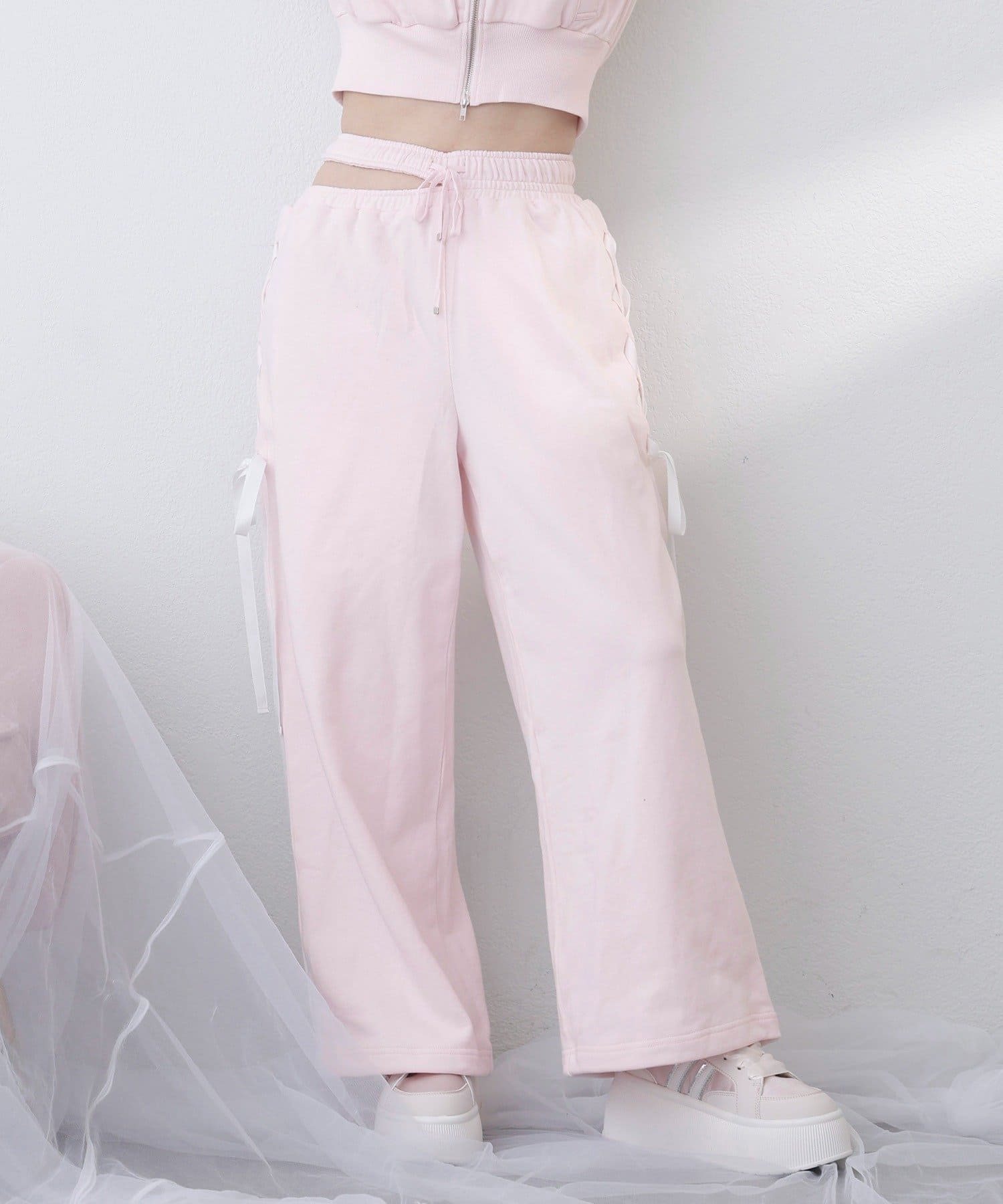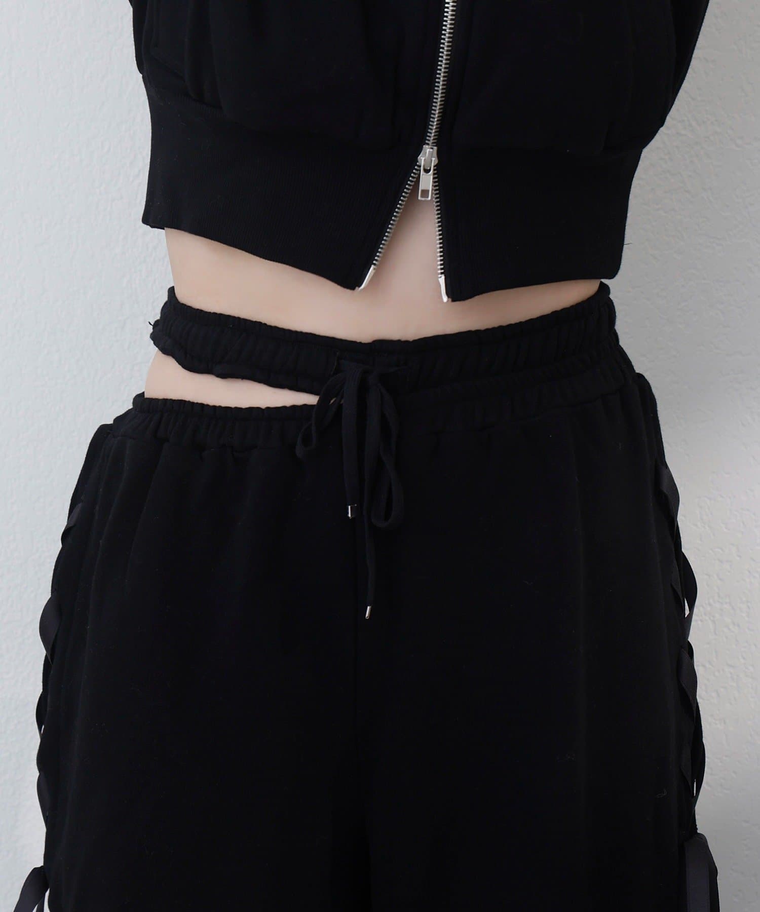【セットアップ可能】サイドカットレースアップスウェットパンツ
