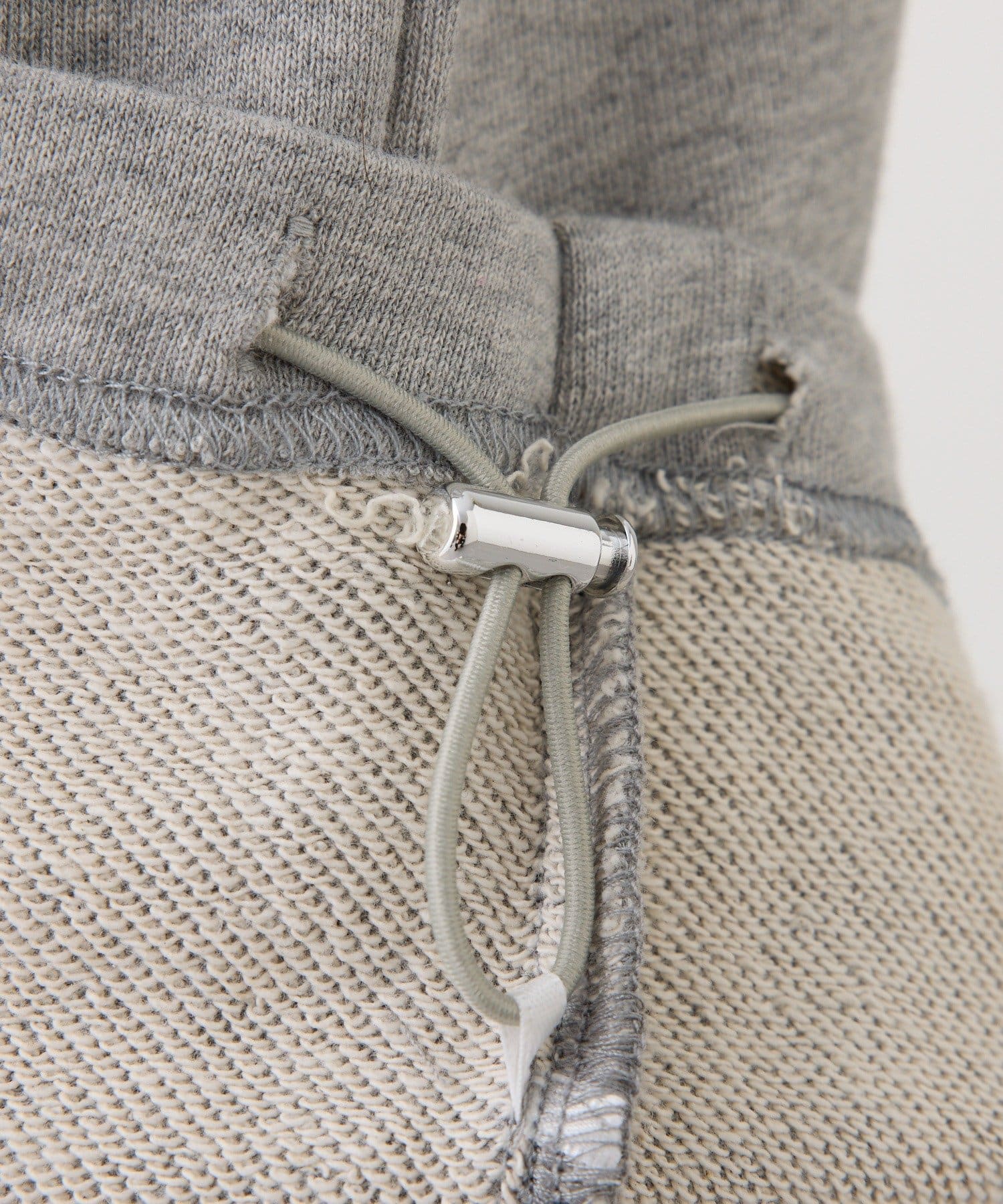 ラフに穿けるスウェットパンツに、ウエストカットデザインをプラス。