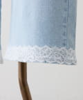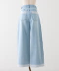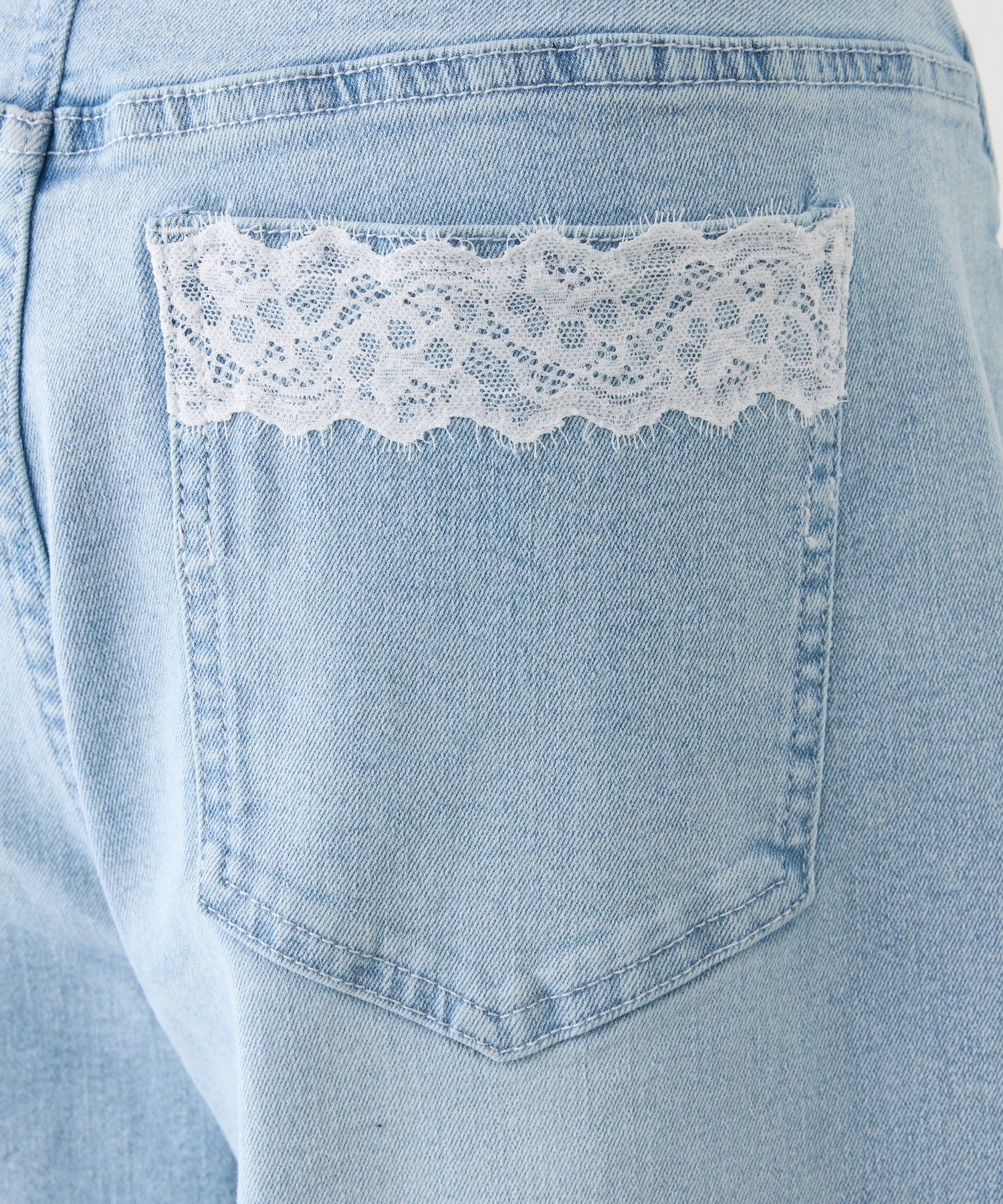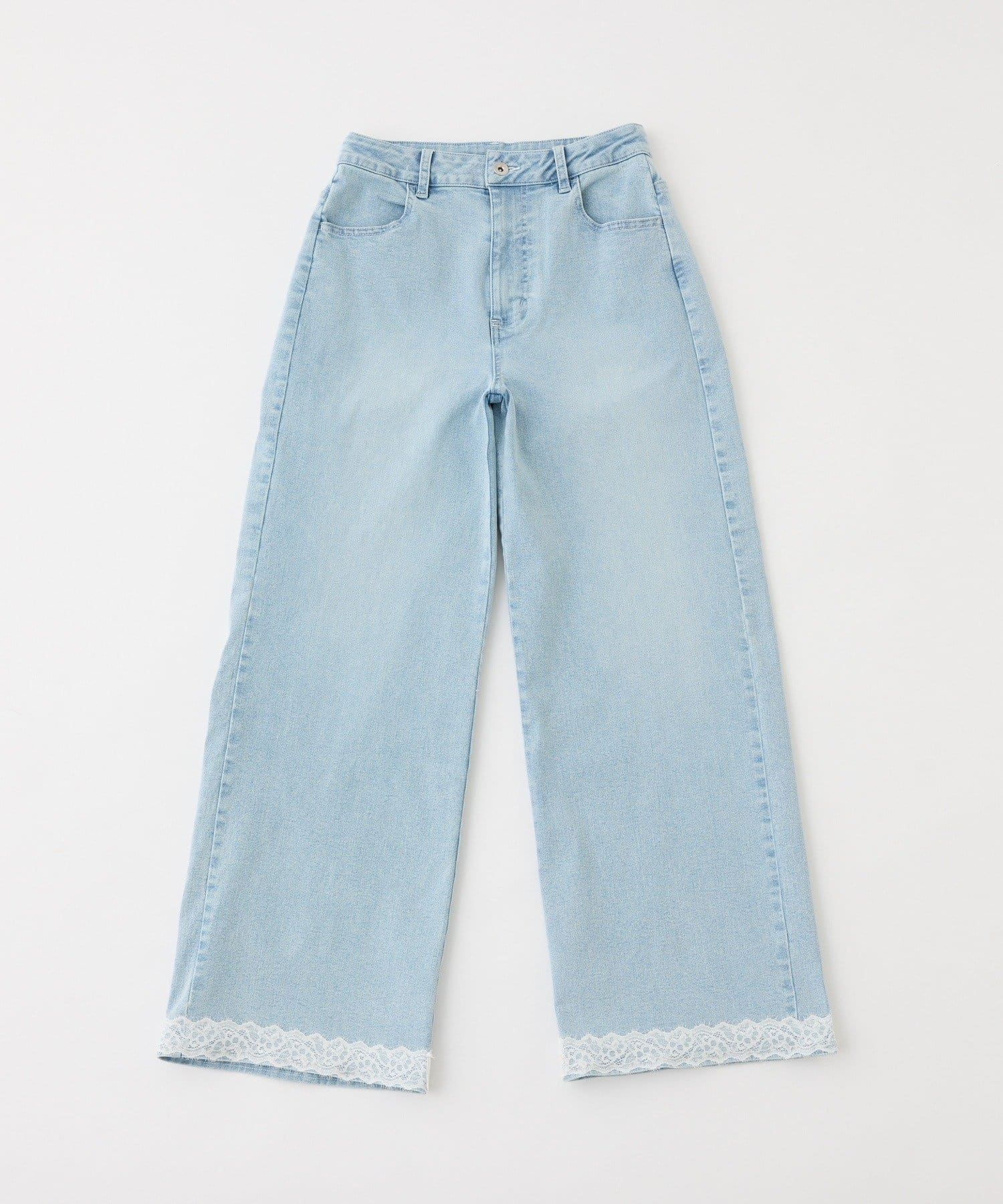 裾にあしらったひげレースがポイントのワイドデニムパンツ。