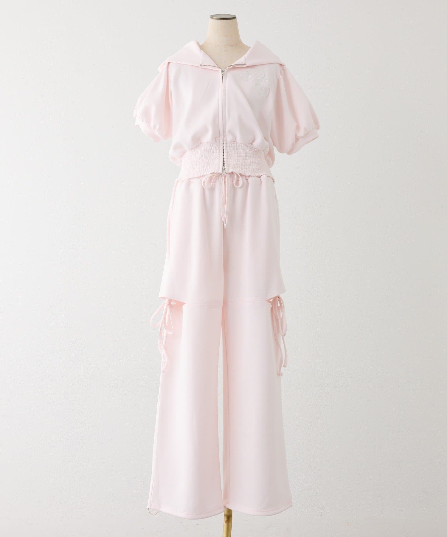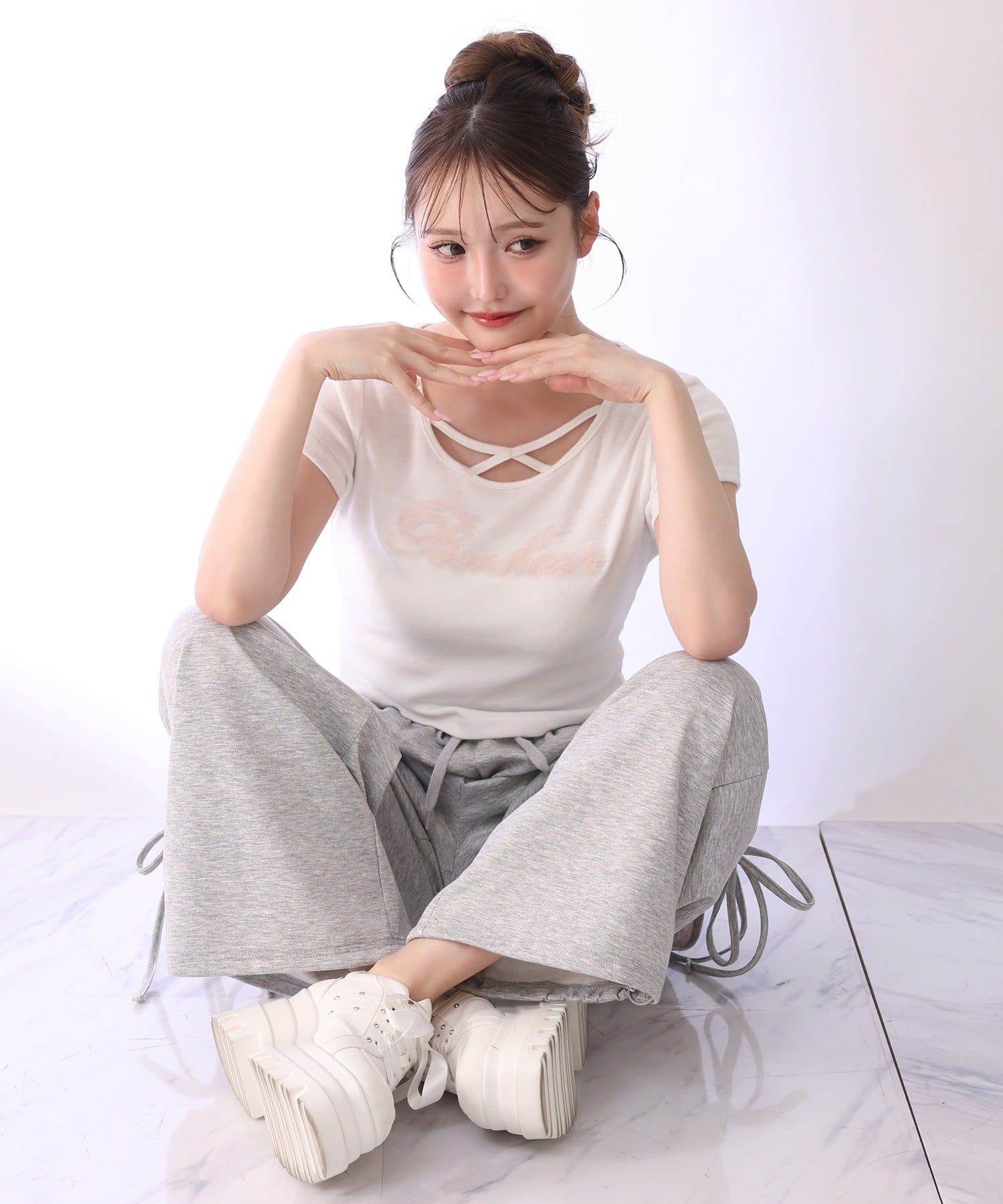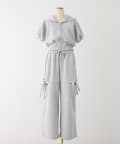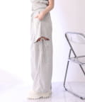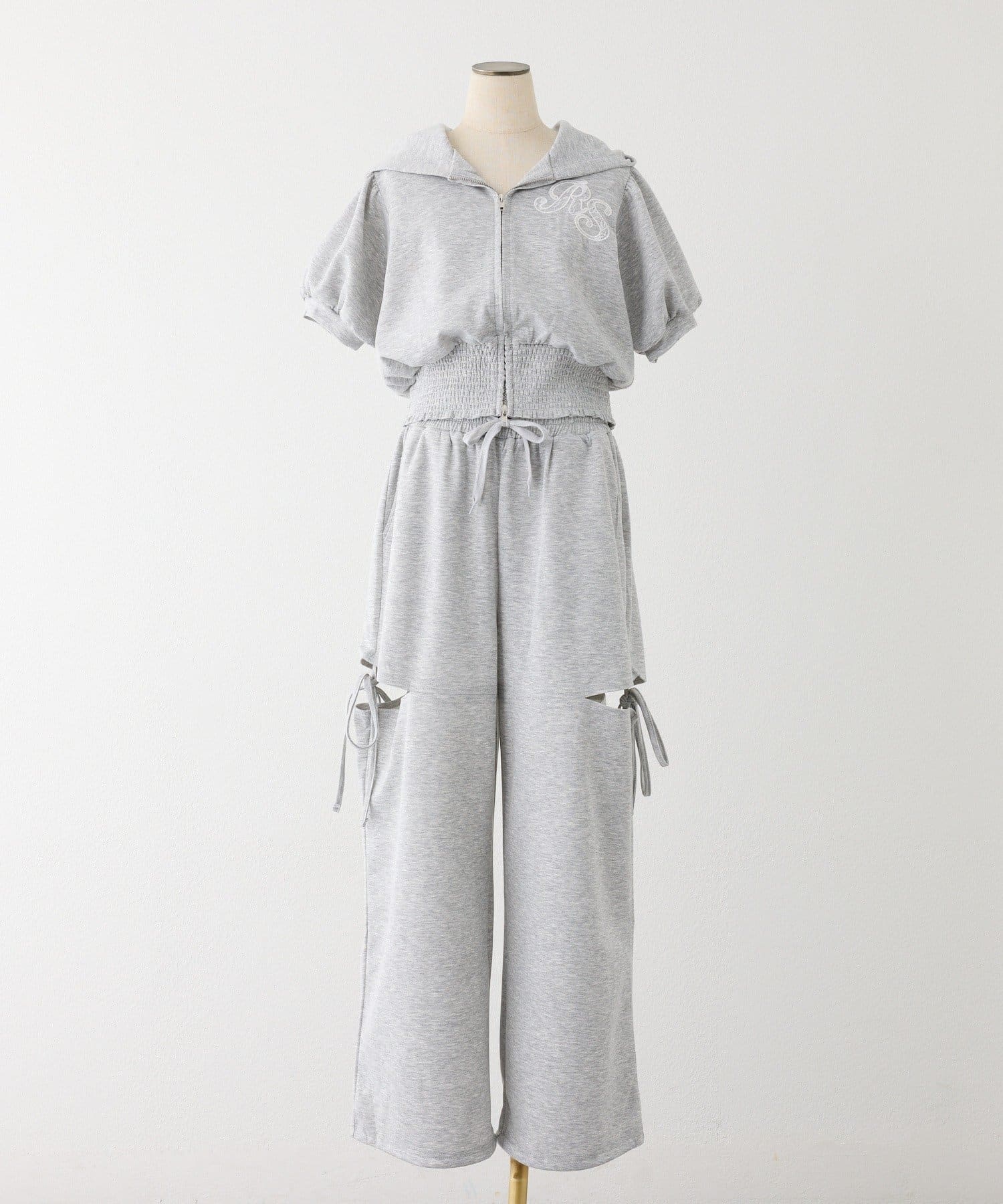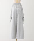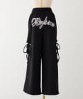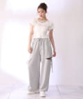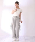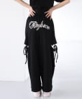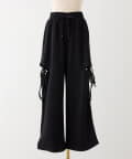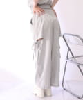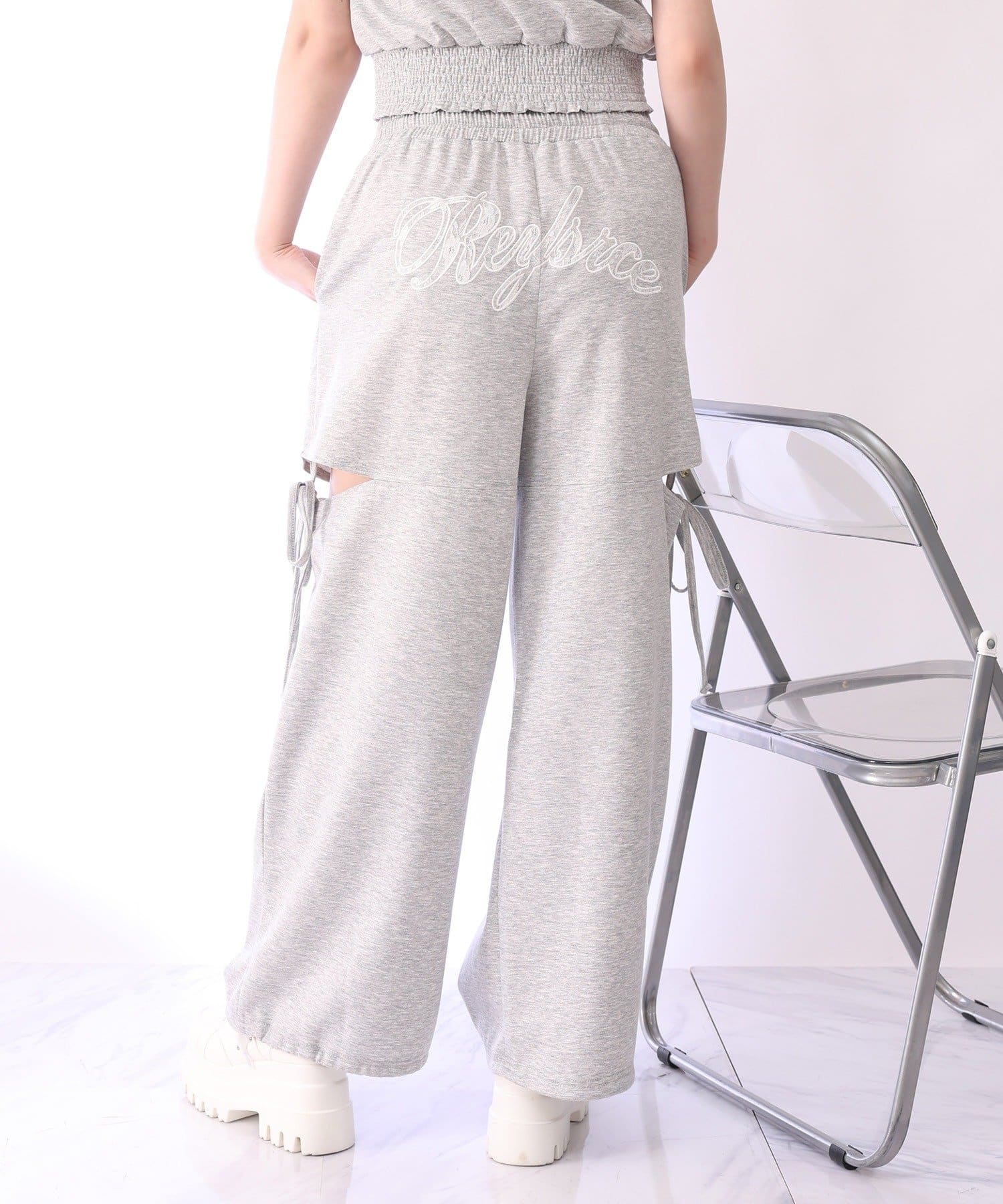 サイドスリットにリボンデザインをあしらったカット素材のパンツ。