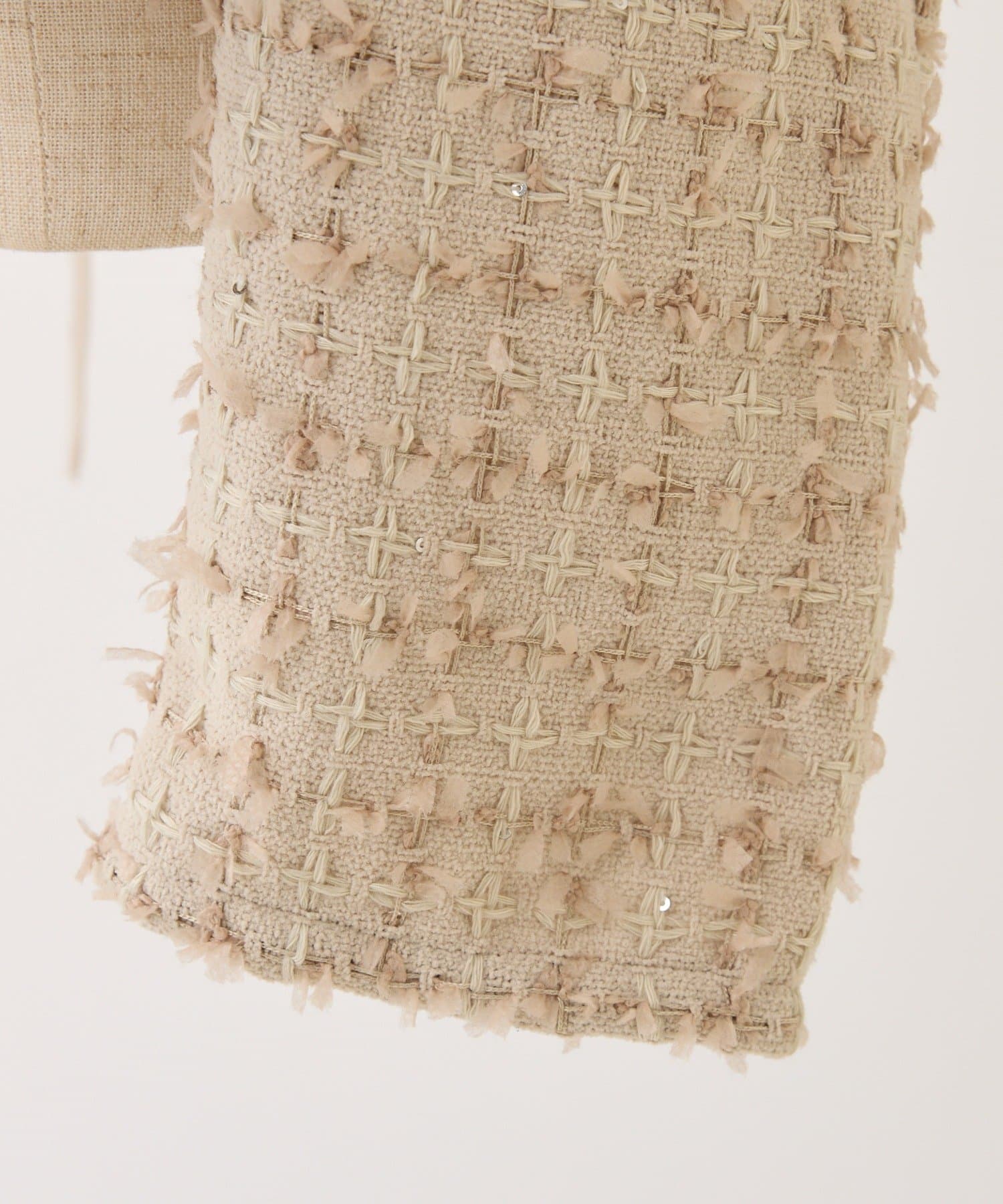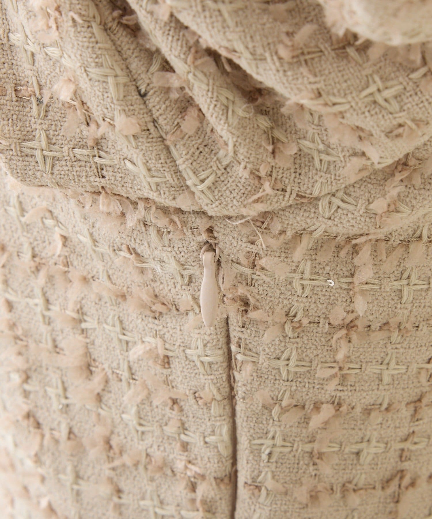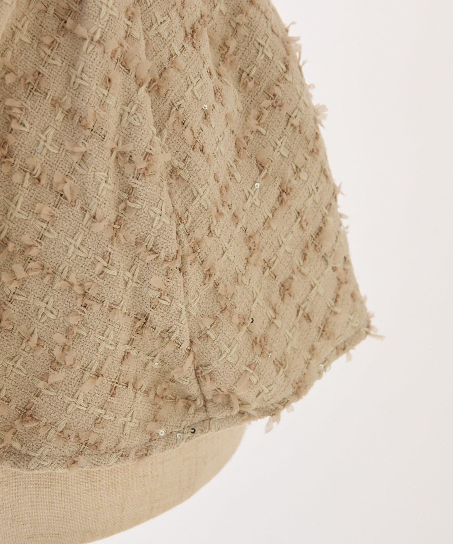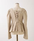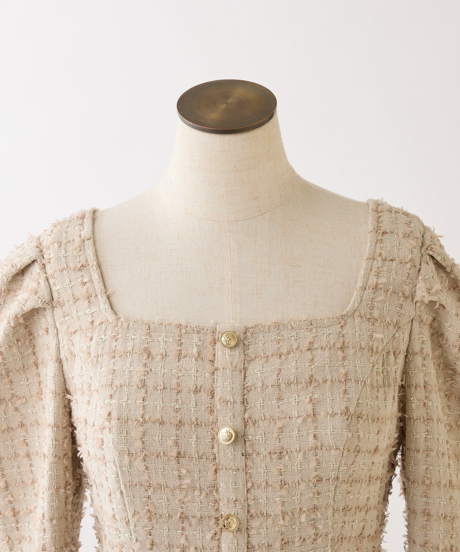 上品なツイード素材を使用した、華やかさたっぷりのペプラムブラウス。