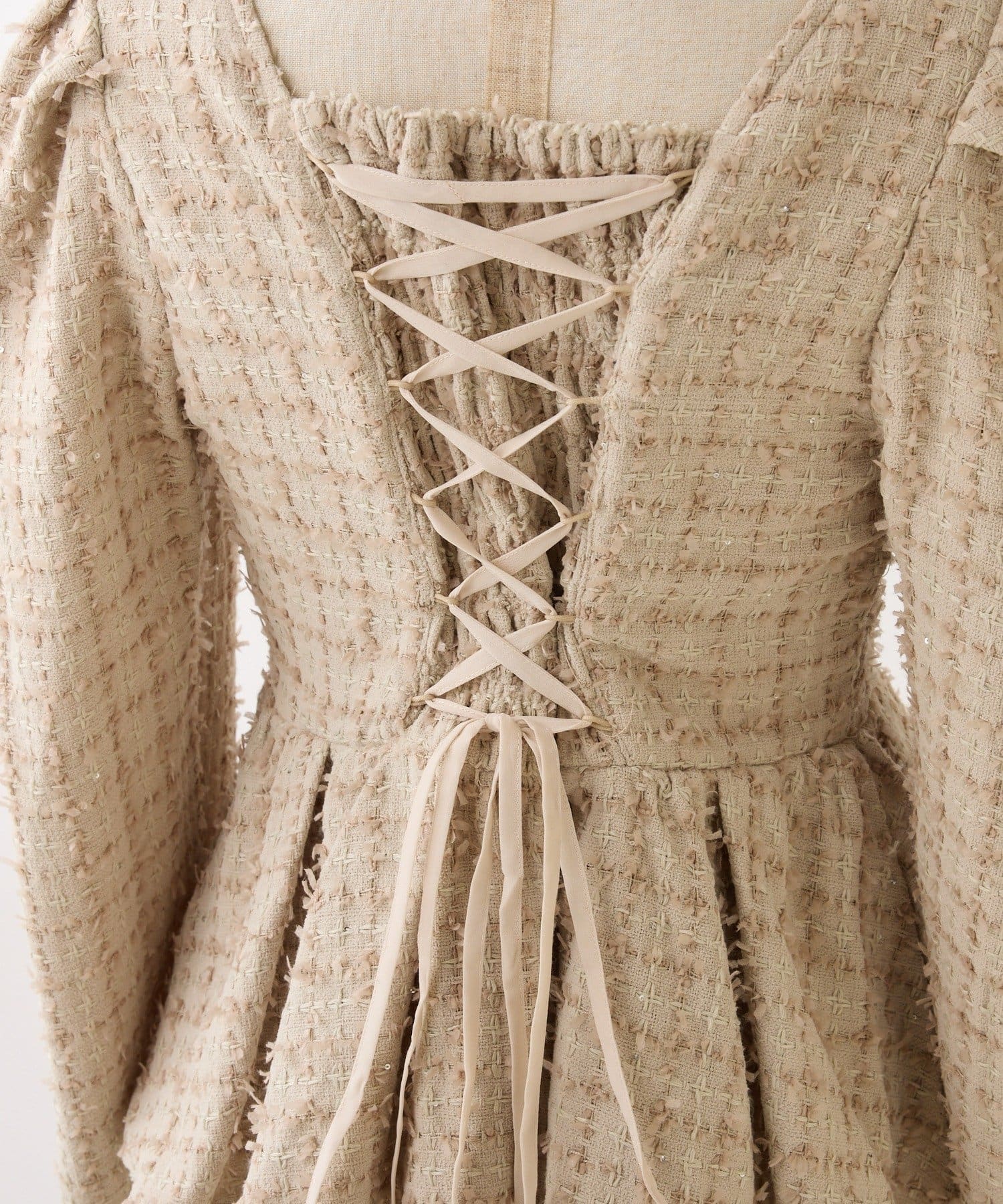 バックスタイルはレースアップデザインになっていて、後ろ姿まで抜かりなく可愛い一枚♡