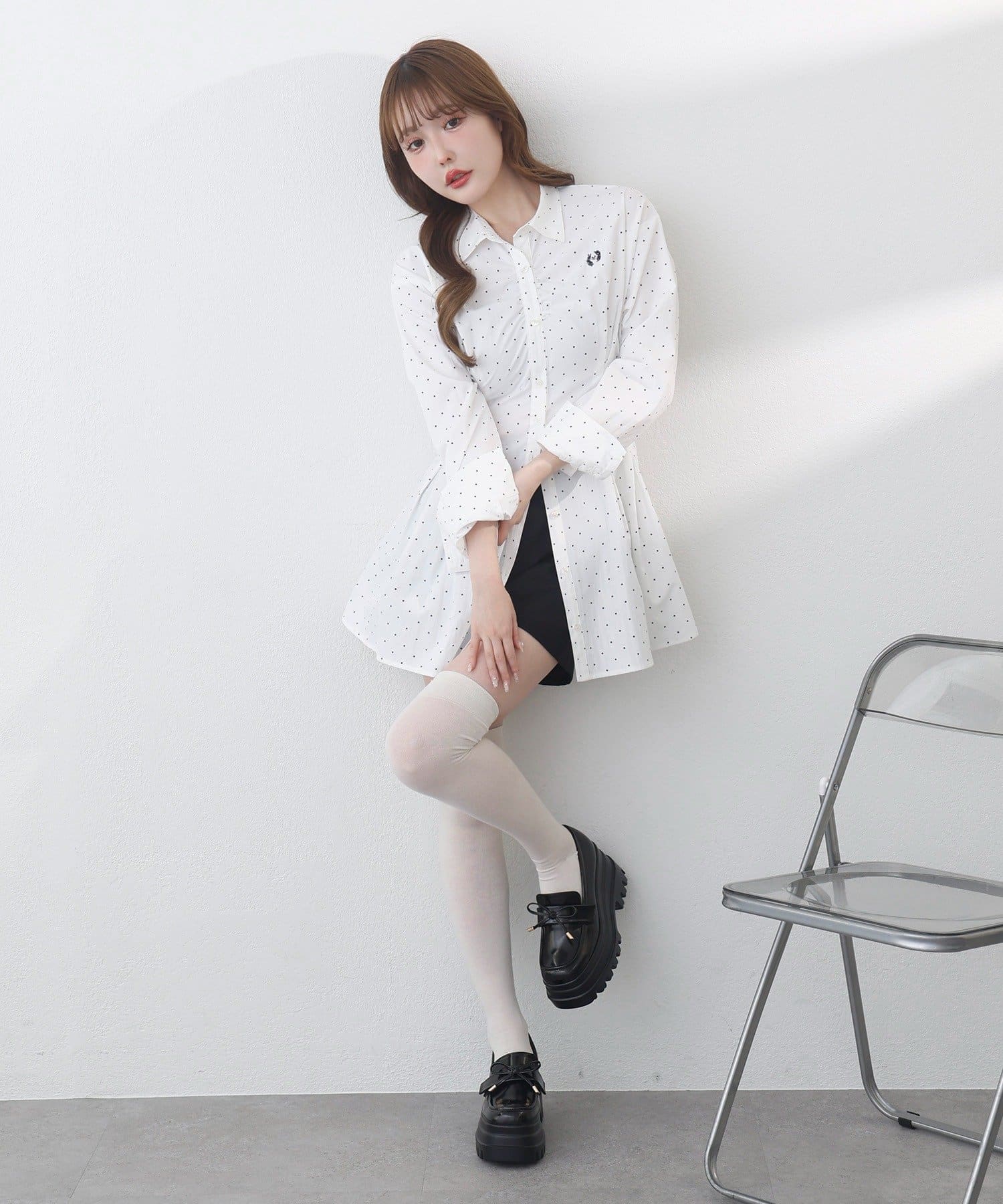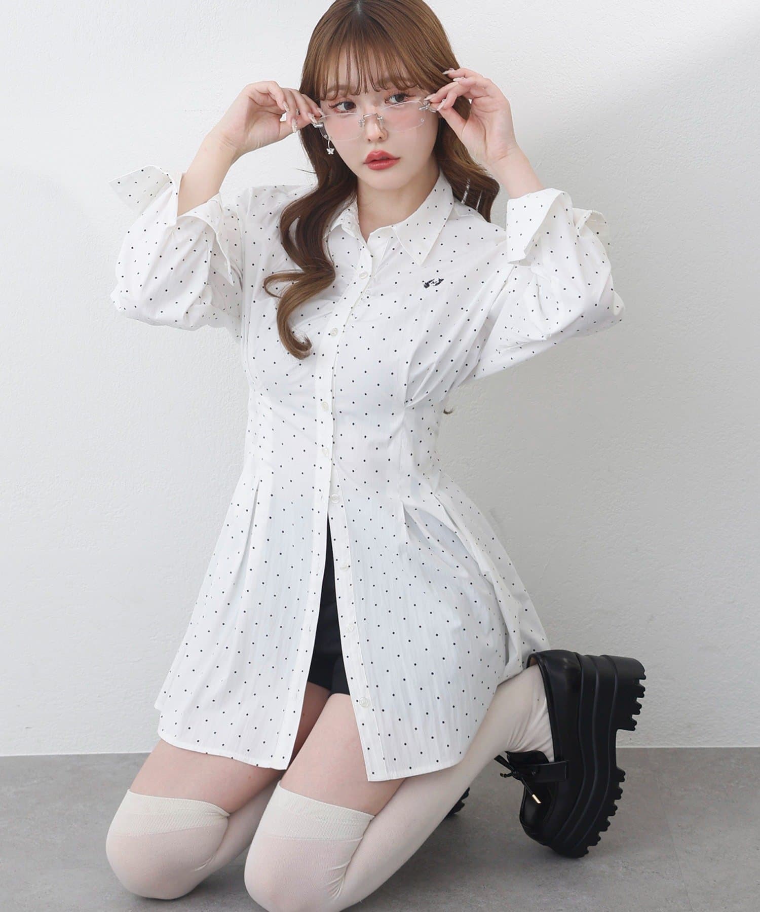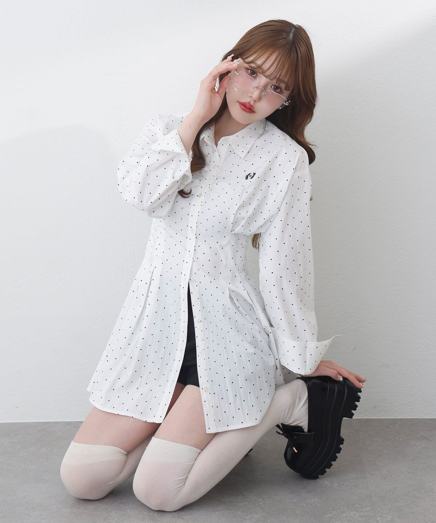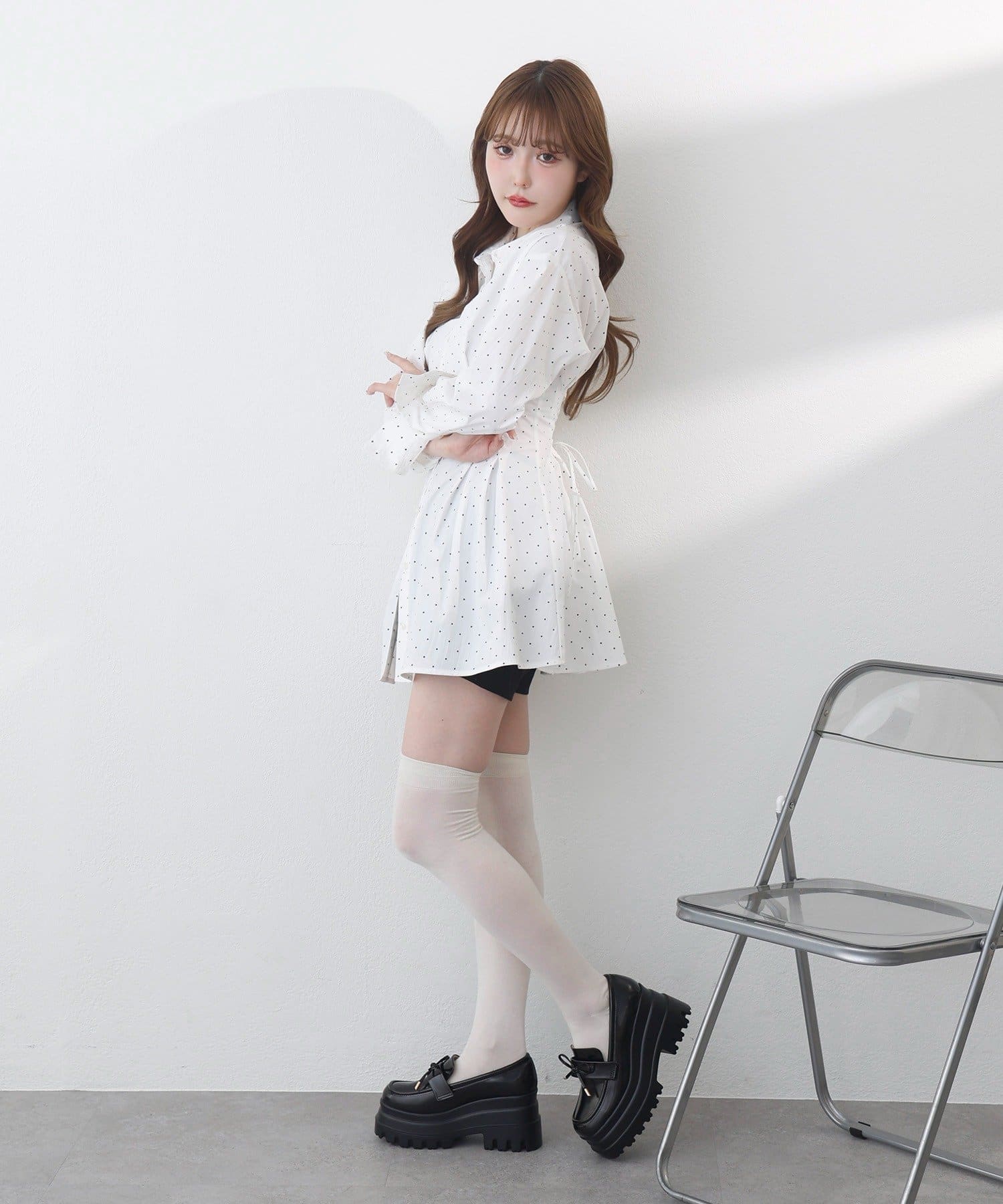【マイナス5キロ見え】レースアップシャツチュニック