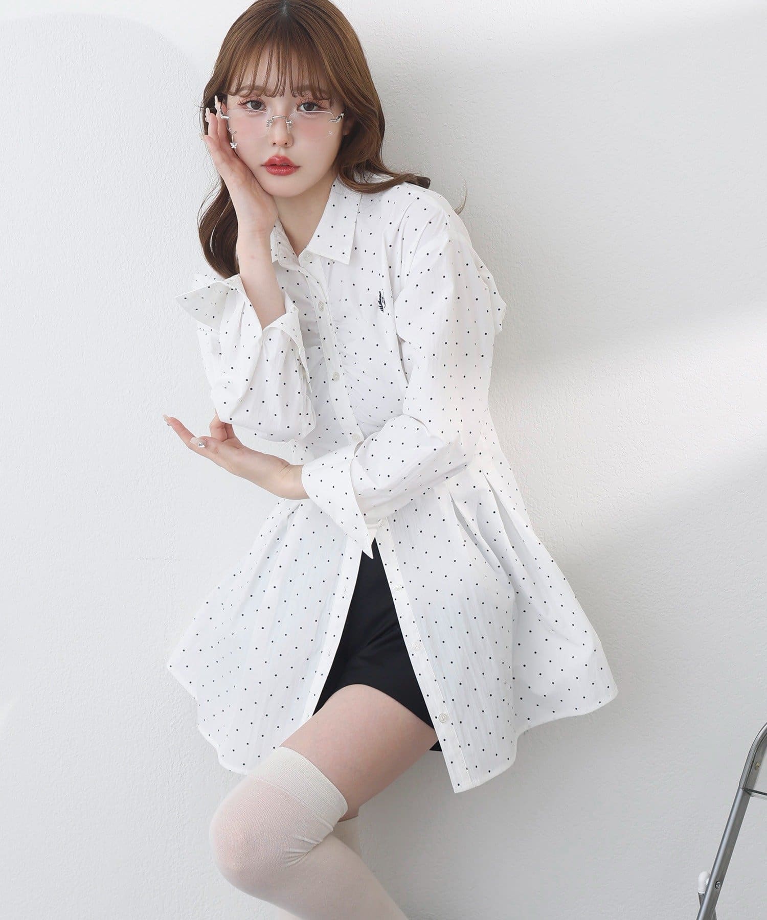 着るだけでスタイルアップができ、ウエスト細見え間違いなしのミドル丈のシャツ。