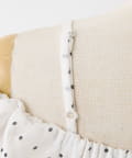 胸元にはリボンを3つあしらい、コーデのアクセントに。甘さがありながらも上品に着こなせるデザインです。