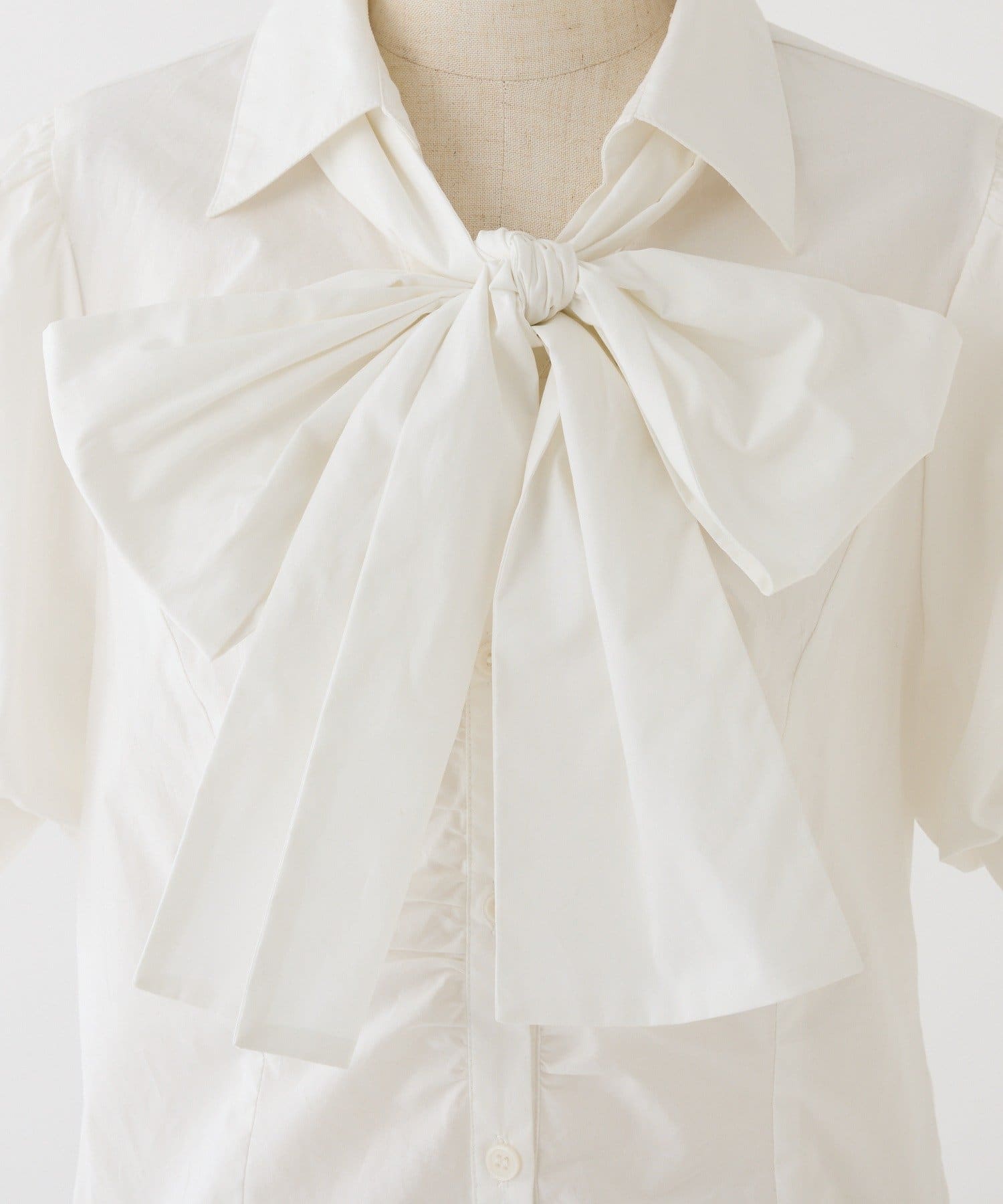 半袖フロントギャザーボウタイブラウス