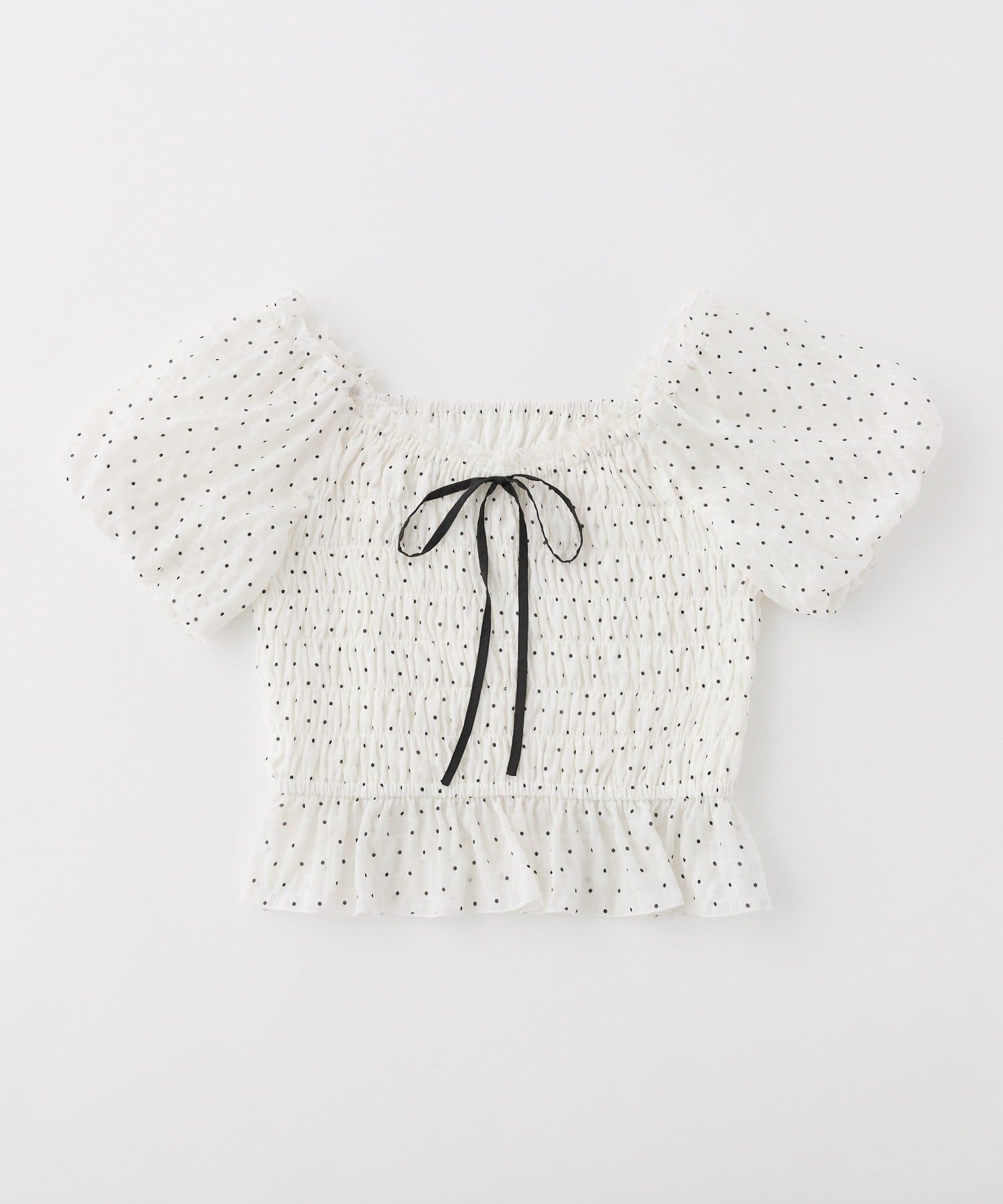 ふんわりとしたパフスリーブが華奢見えを叶え、フェミニンな印象に。