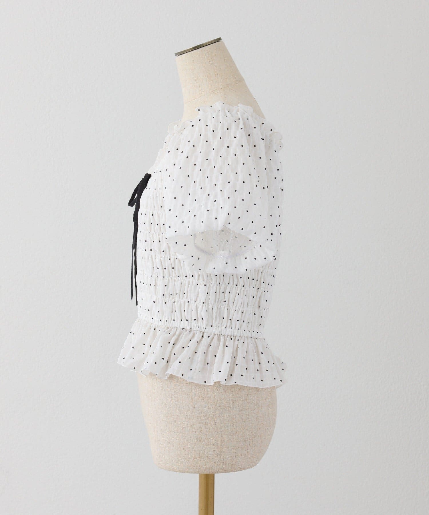 程よくフィットするシャーリングで、女性らしいシルエットをきれいに見せてくれます。