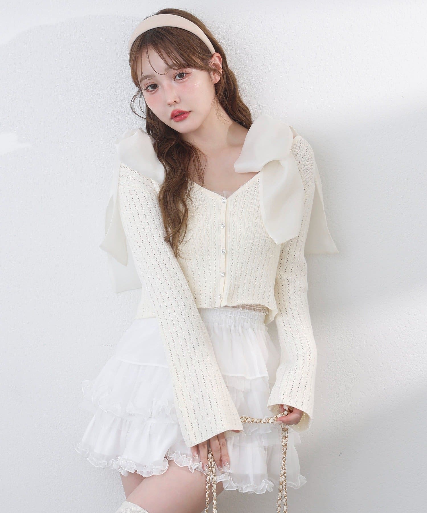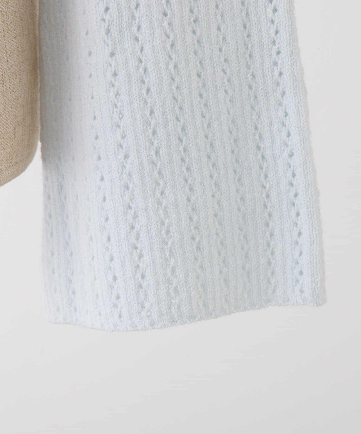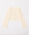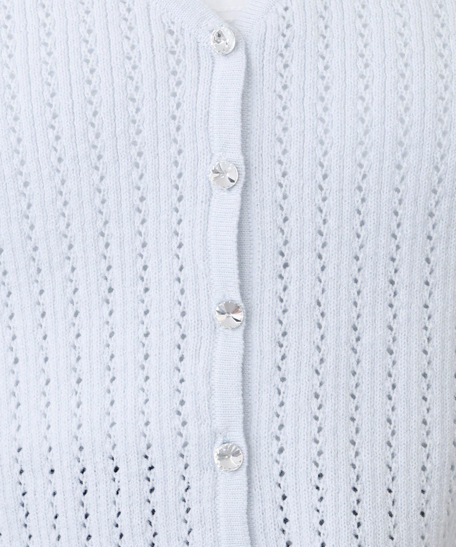 アイレット編みがポイントのベルスリーブショートカーディガン。