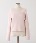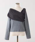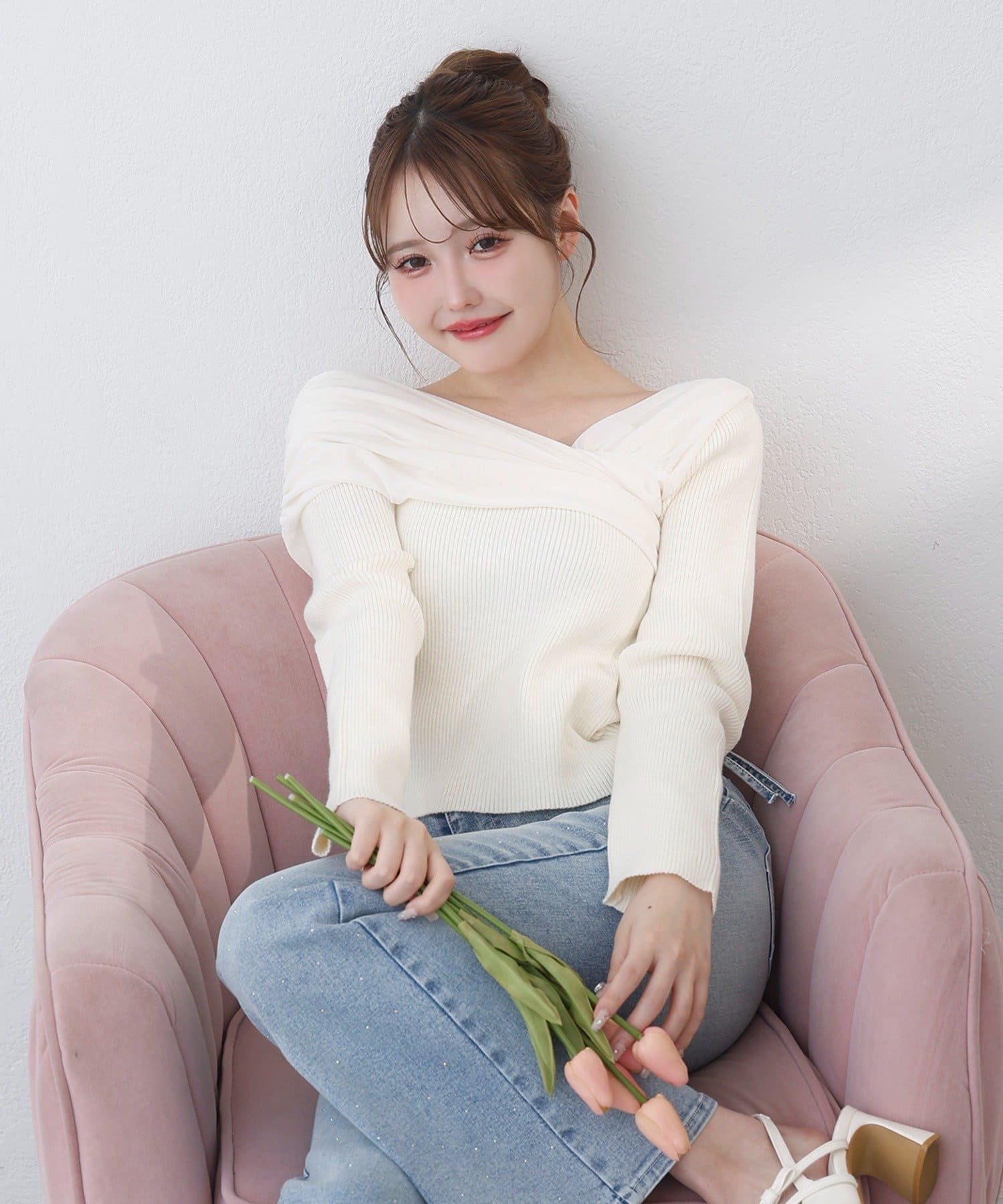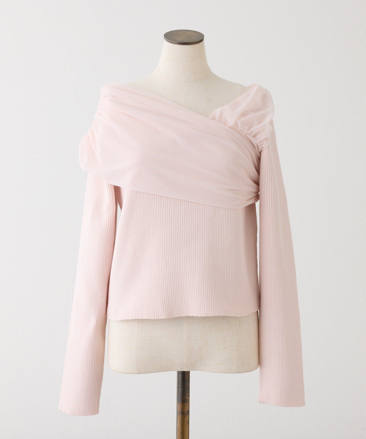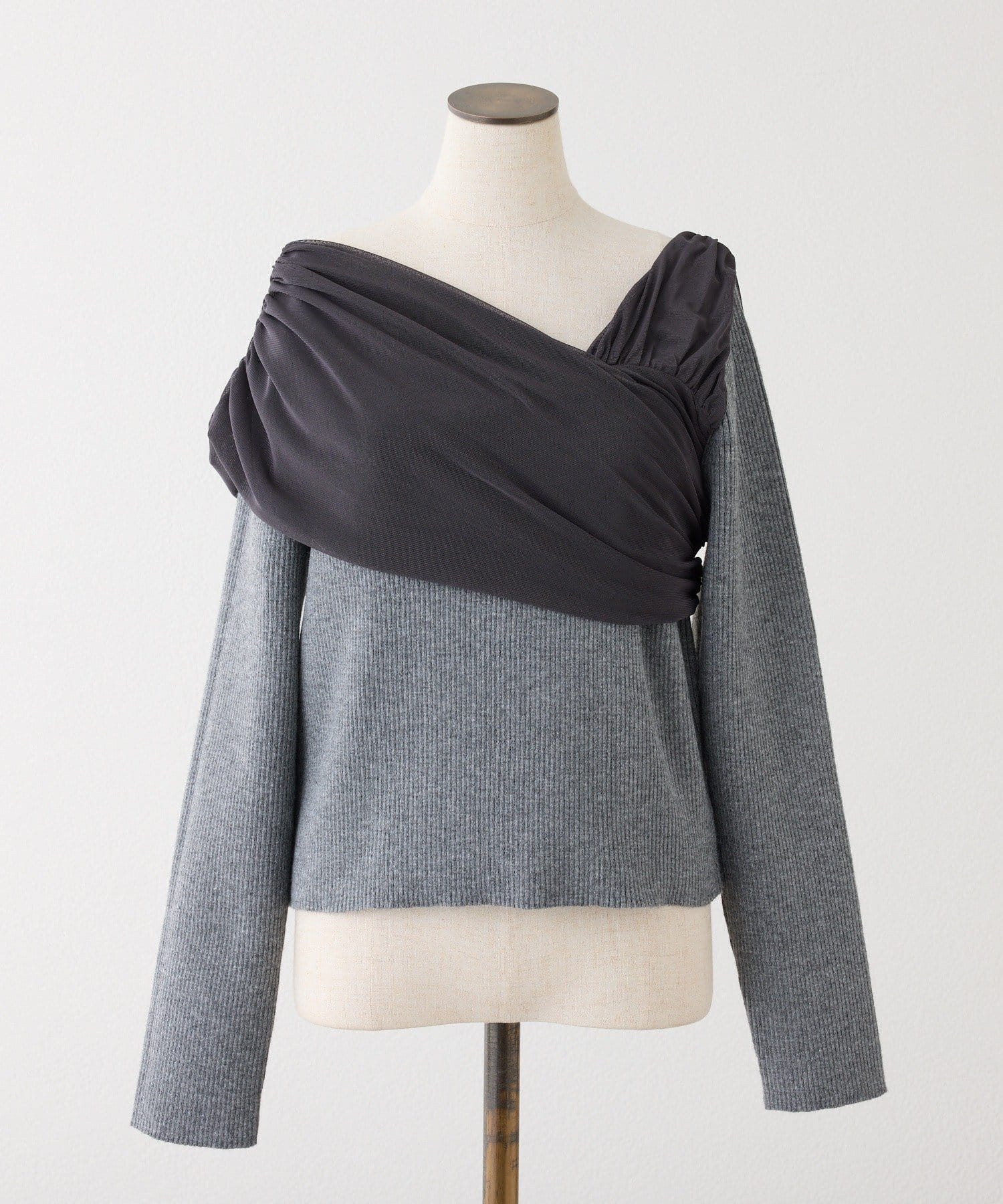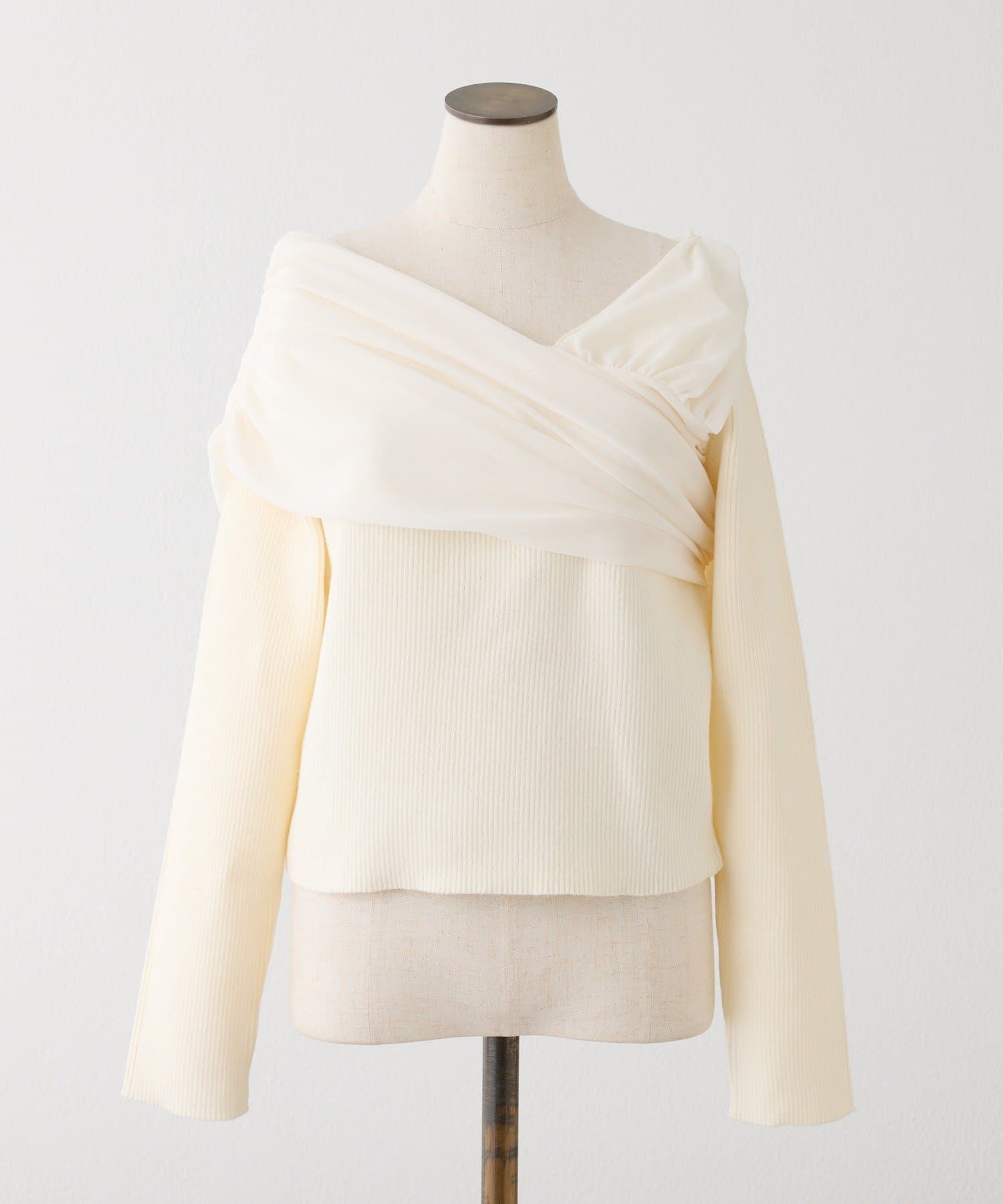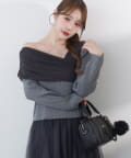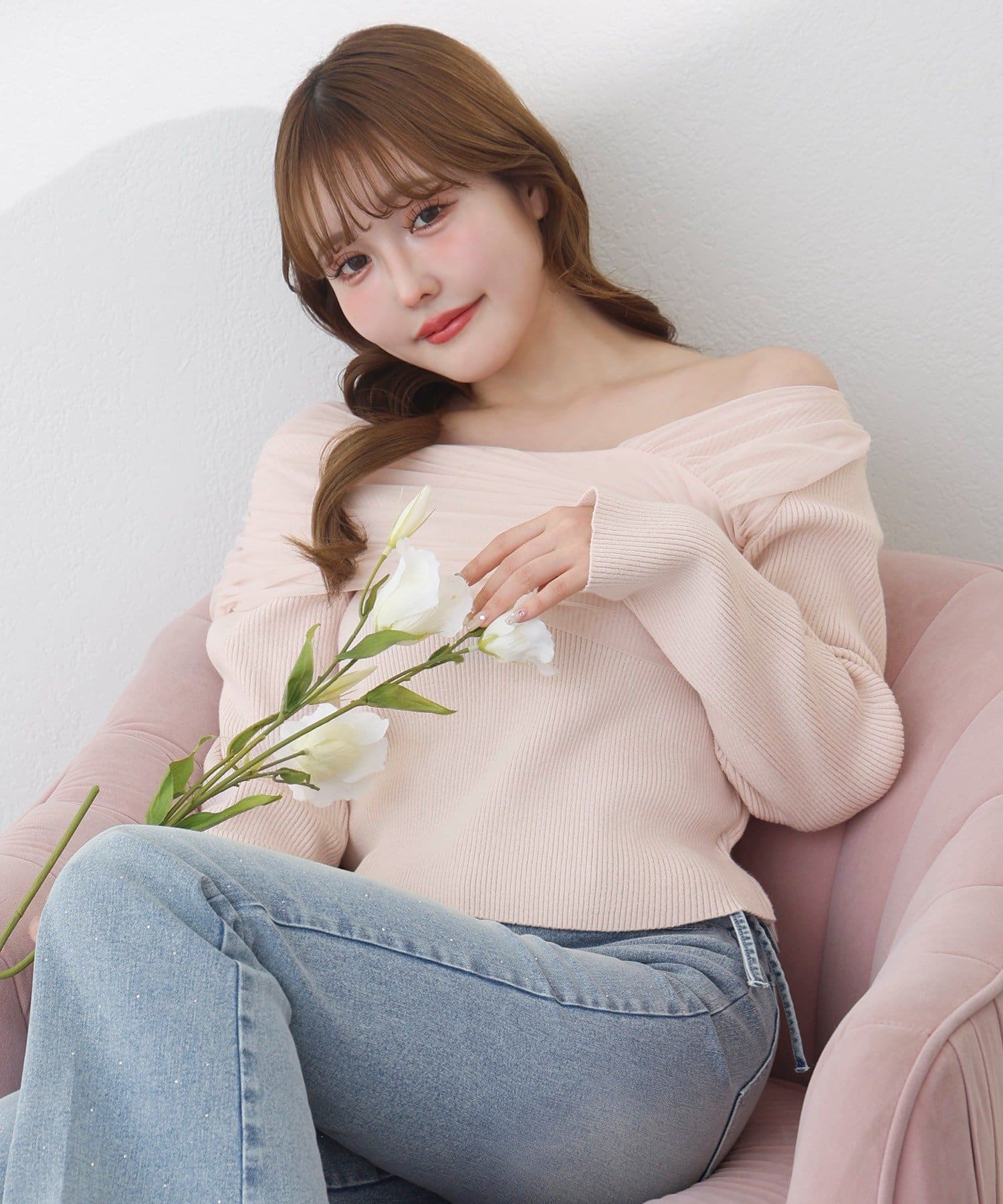 オフショルデザインのニットに、チュール素材をドッキングしたトレンド感たっぷりの1枚。