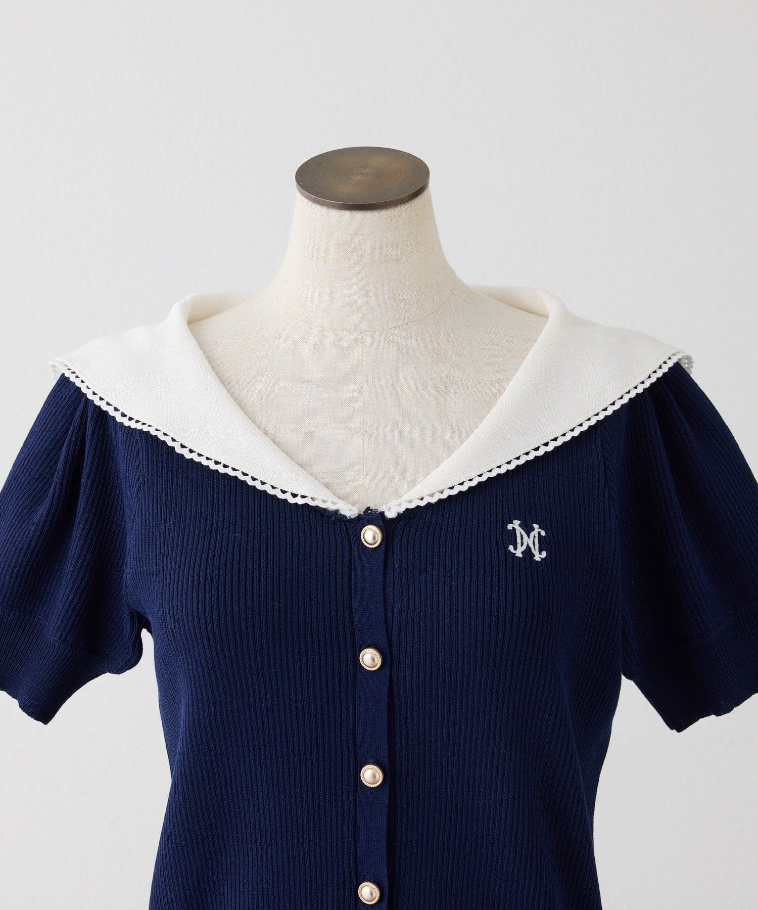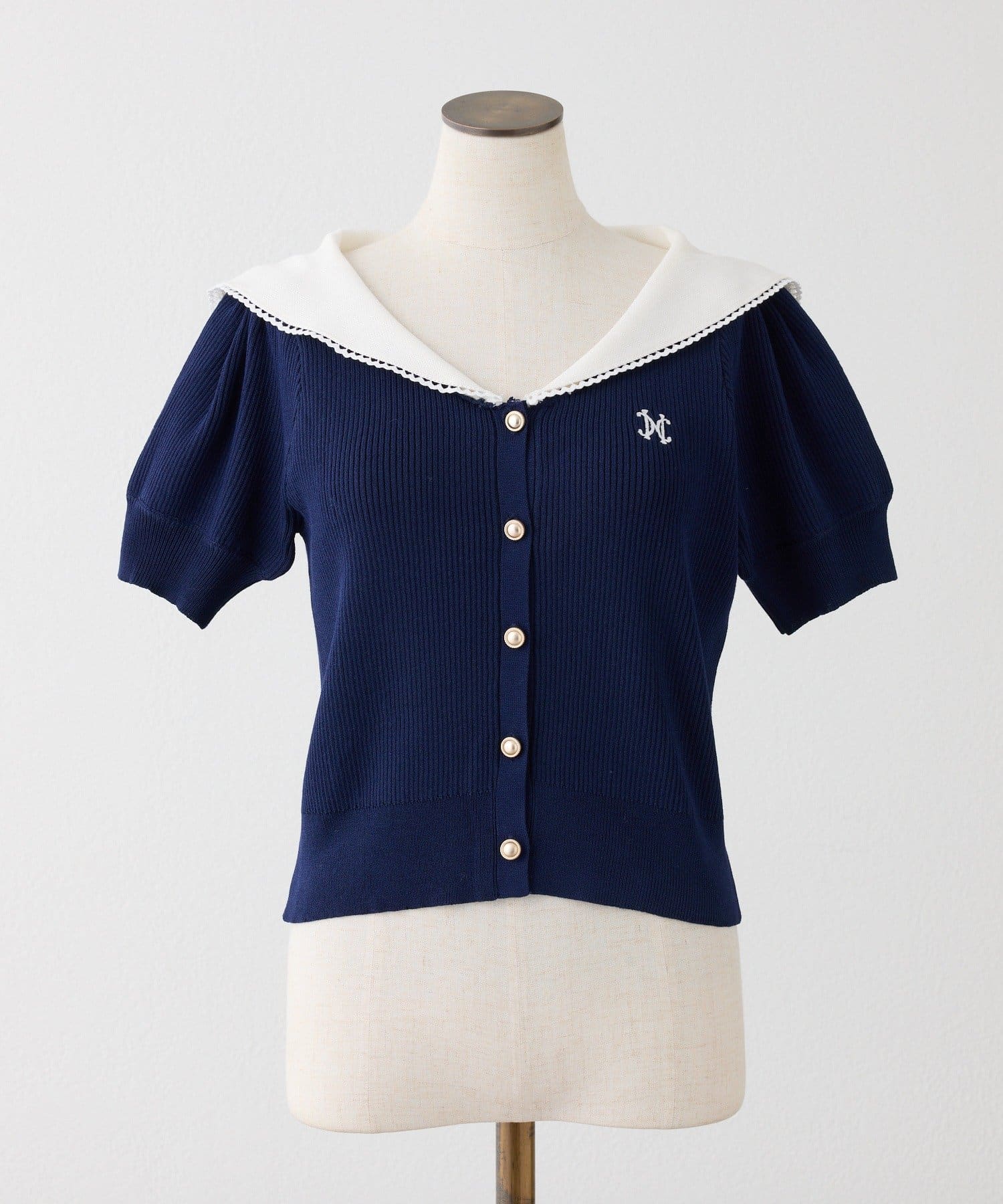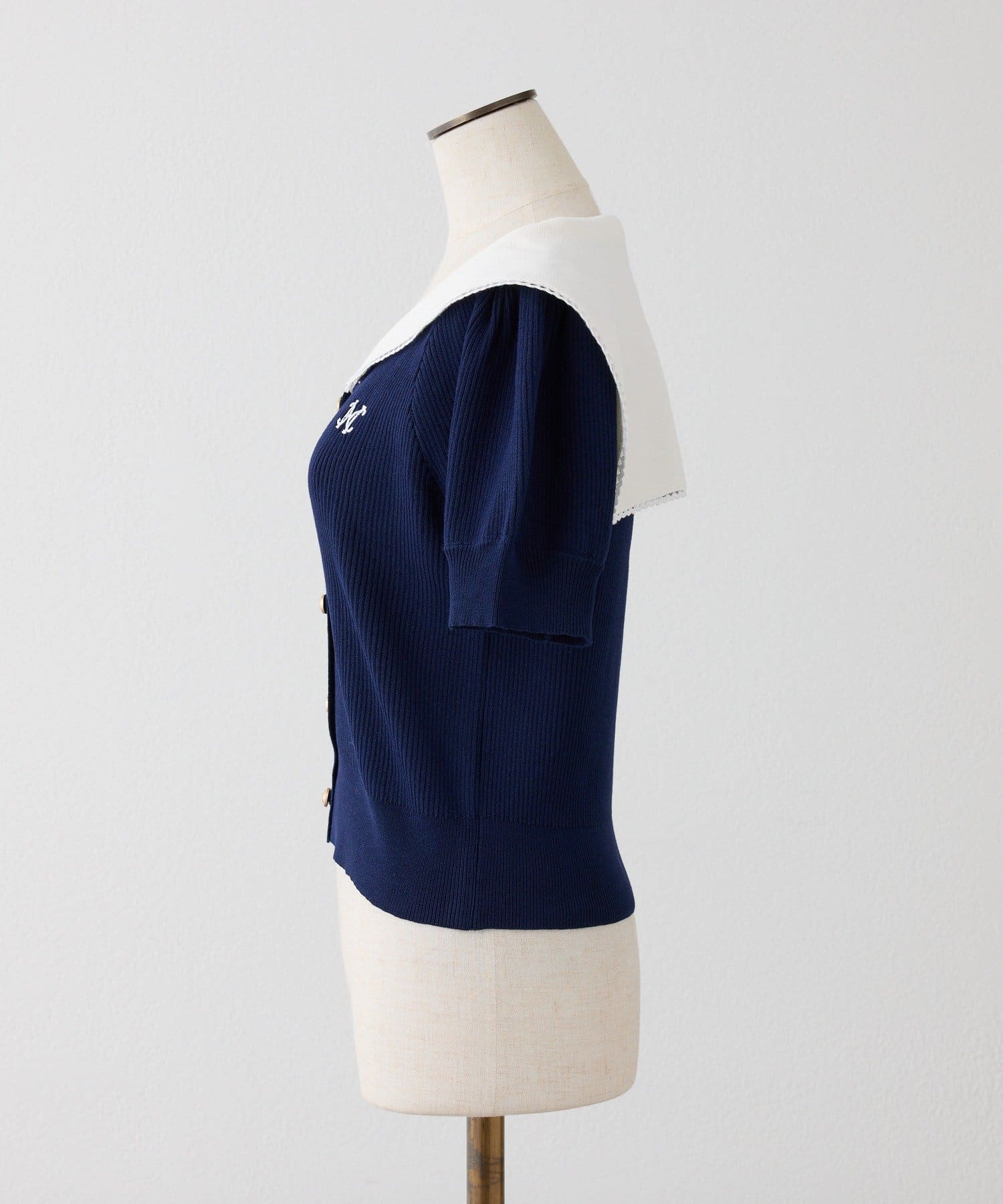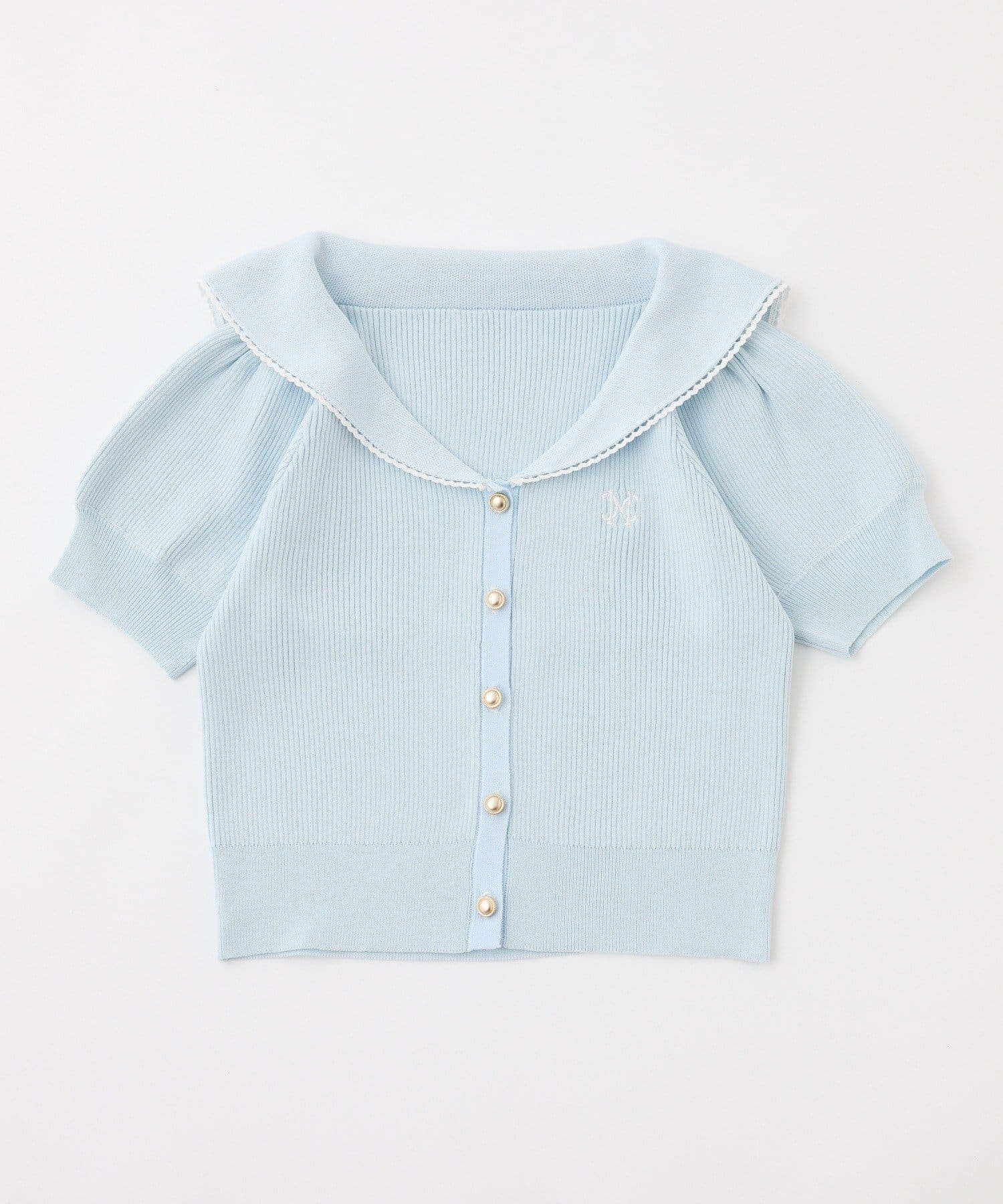 セーラーカラーが目を惹くニットカーディガンの半袖バージョンが登場♡
