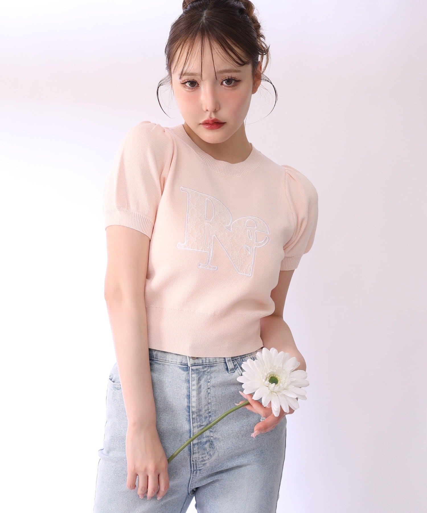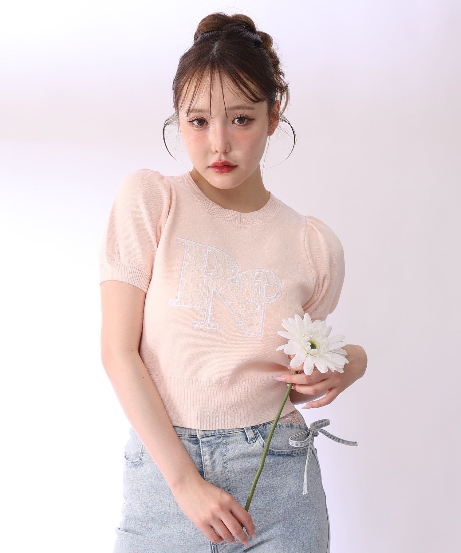 夏らしいさらっとしたニット素材に、フロントのレースロゴがアクセントになった主役級トップス。