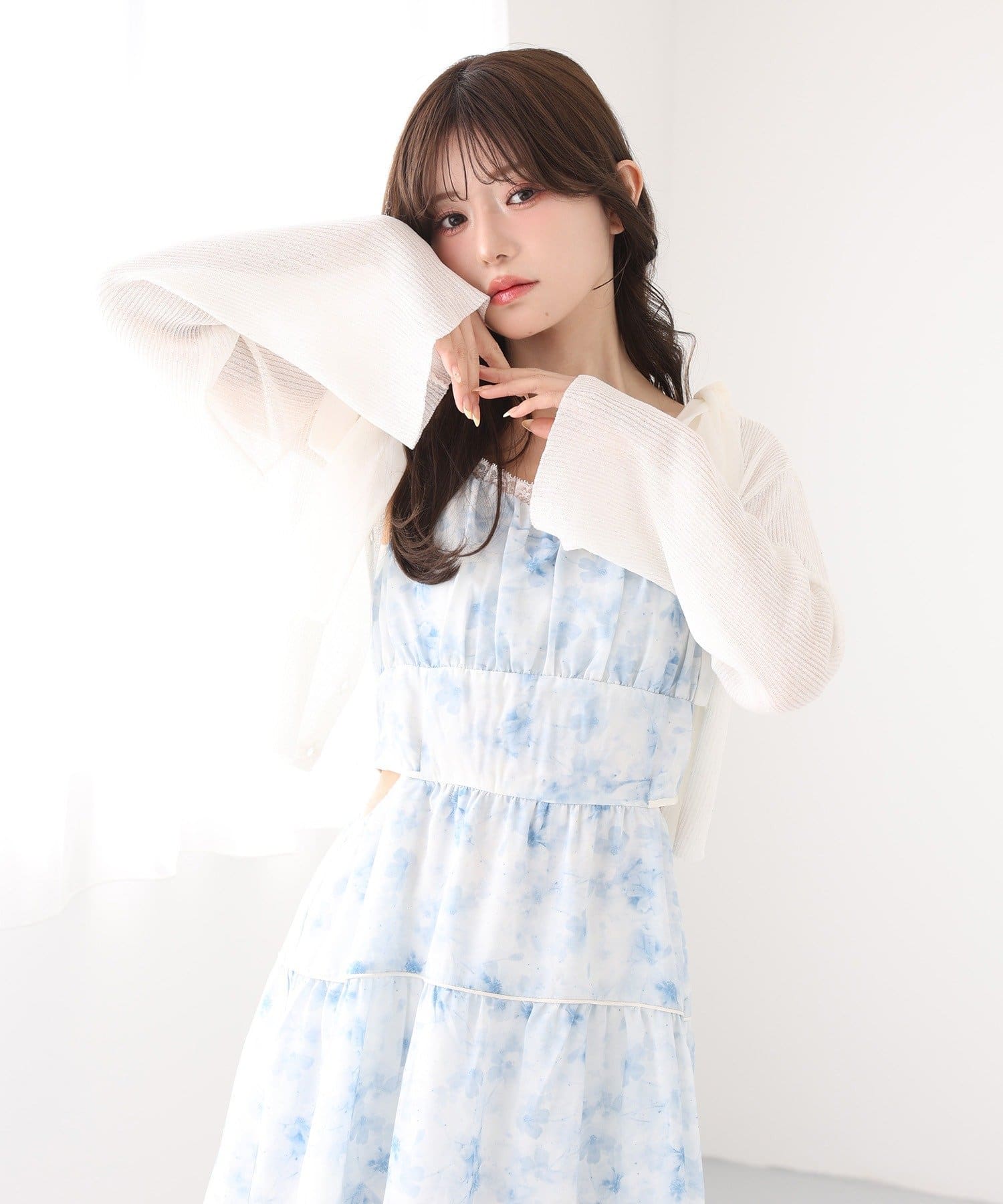 キャミワンピやノースリトップスの上から羽織って、軽やかなレイヤードコーデに。