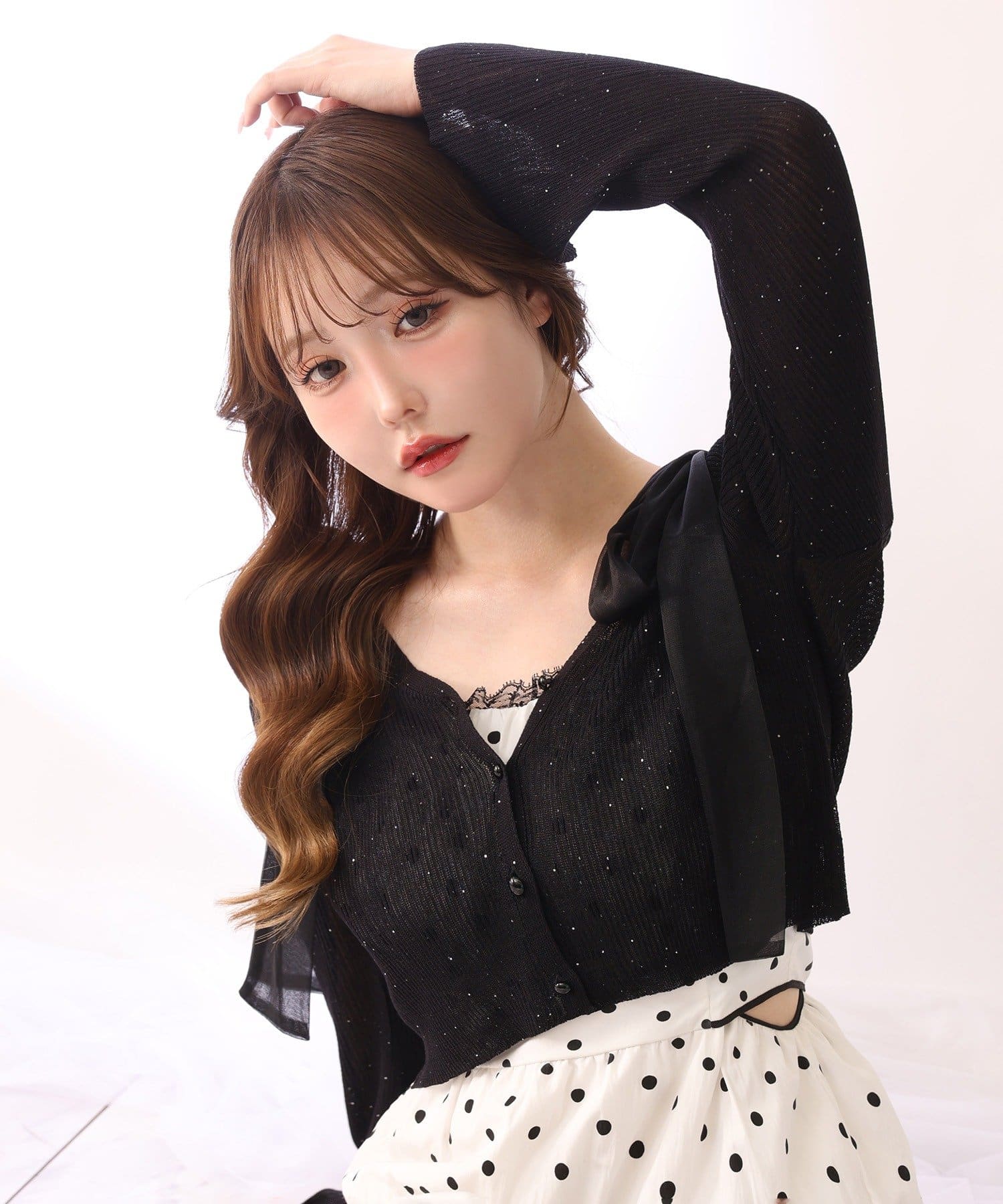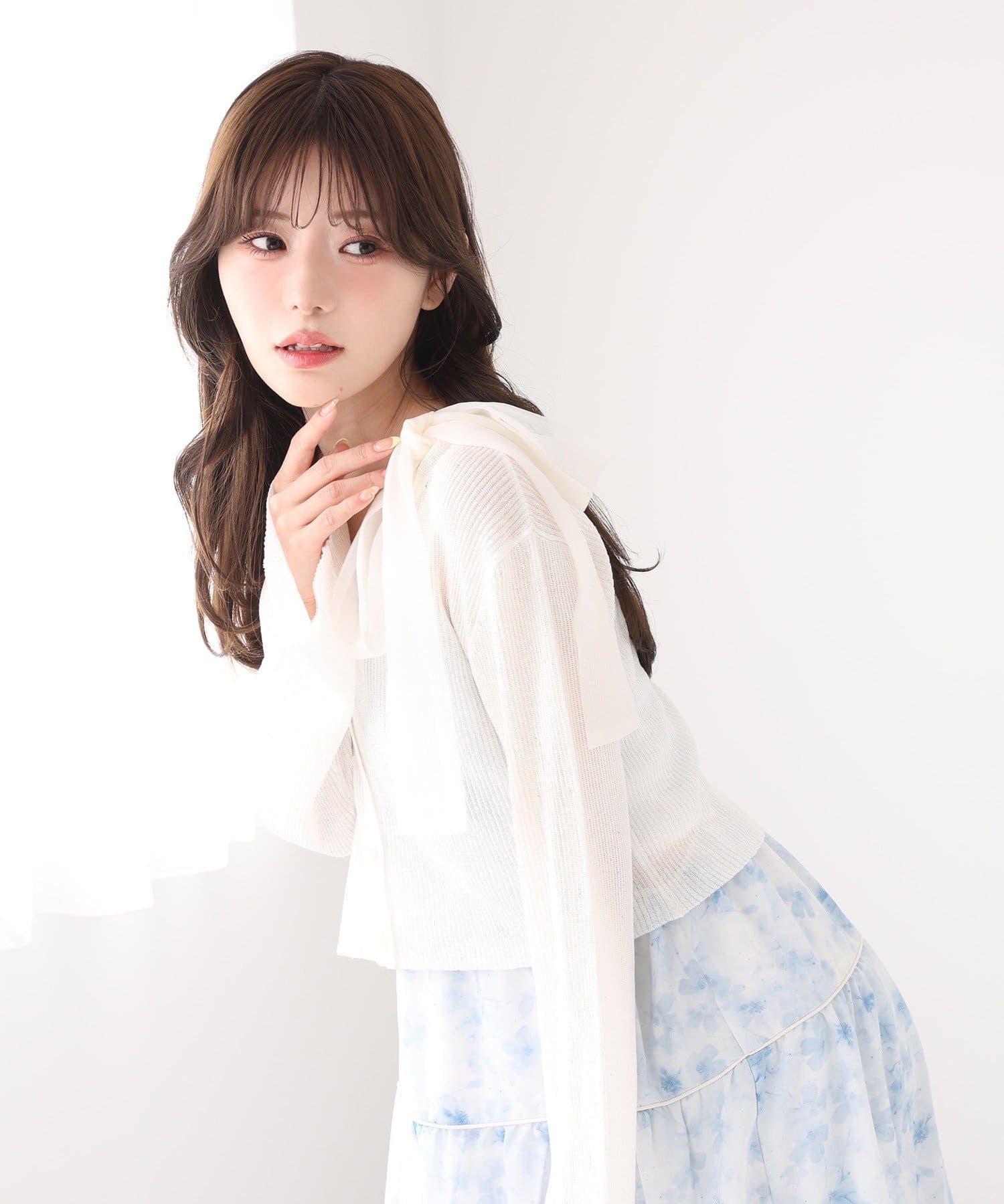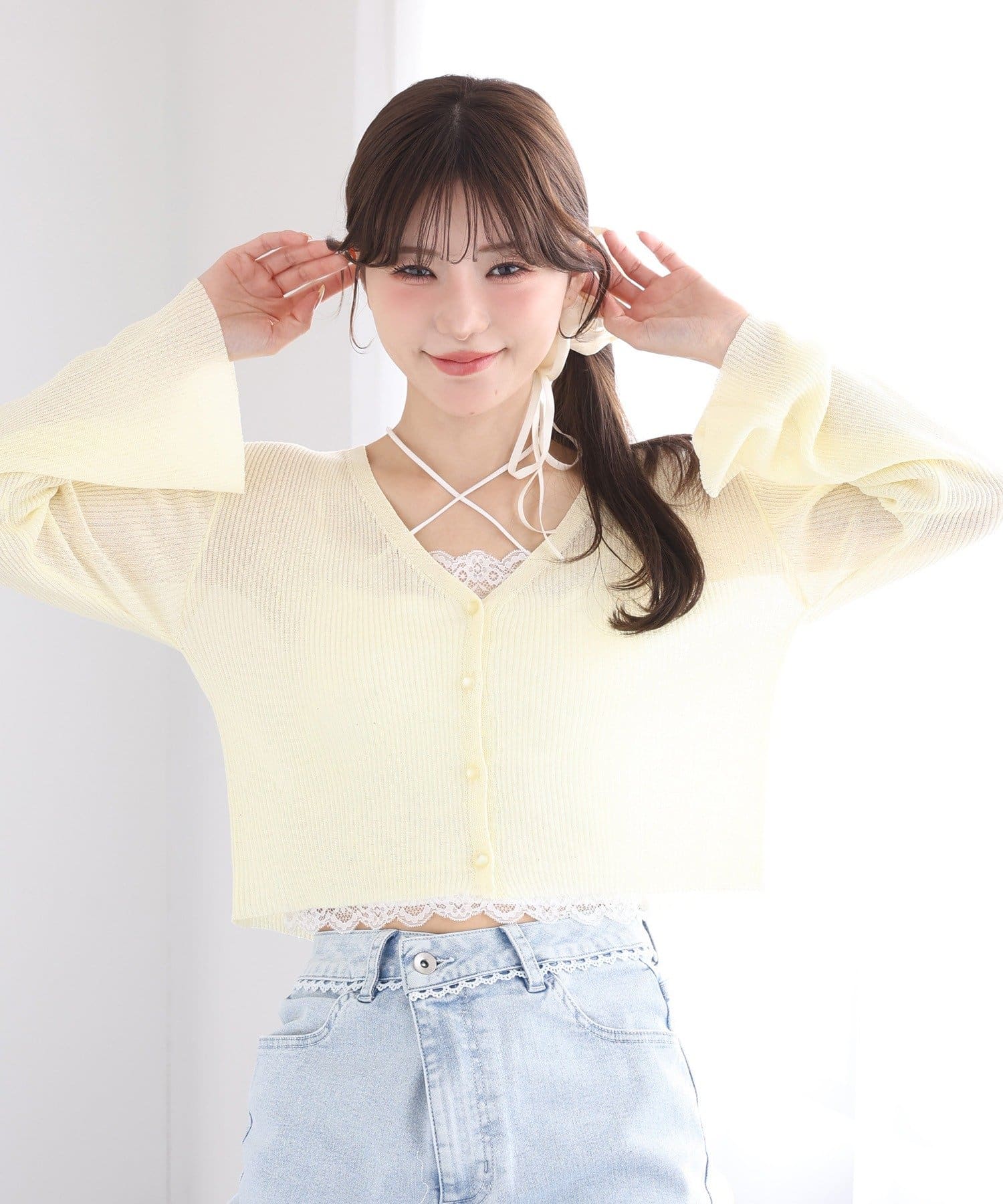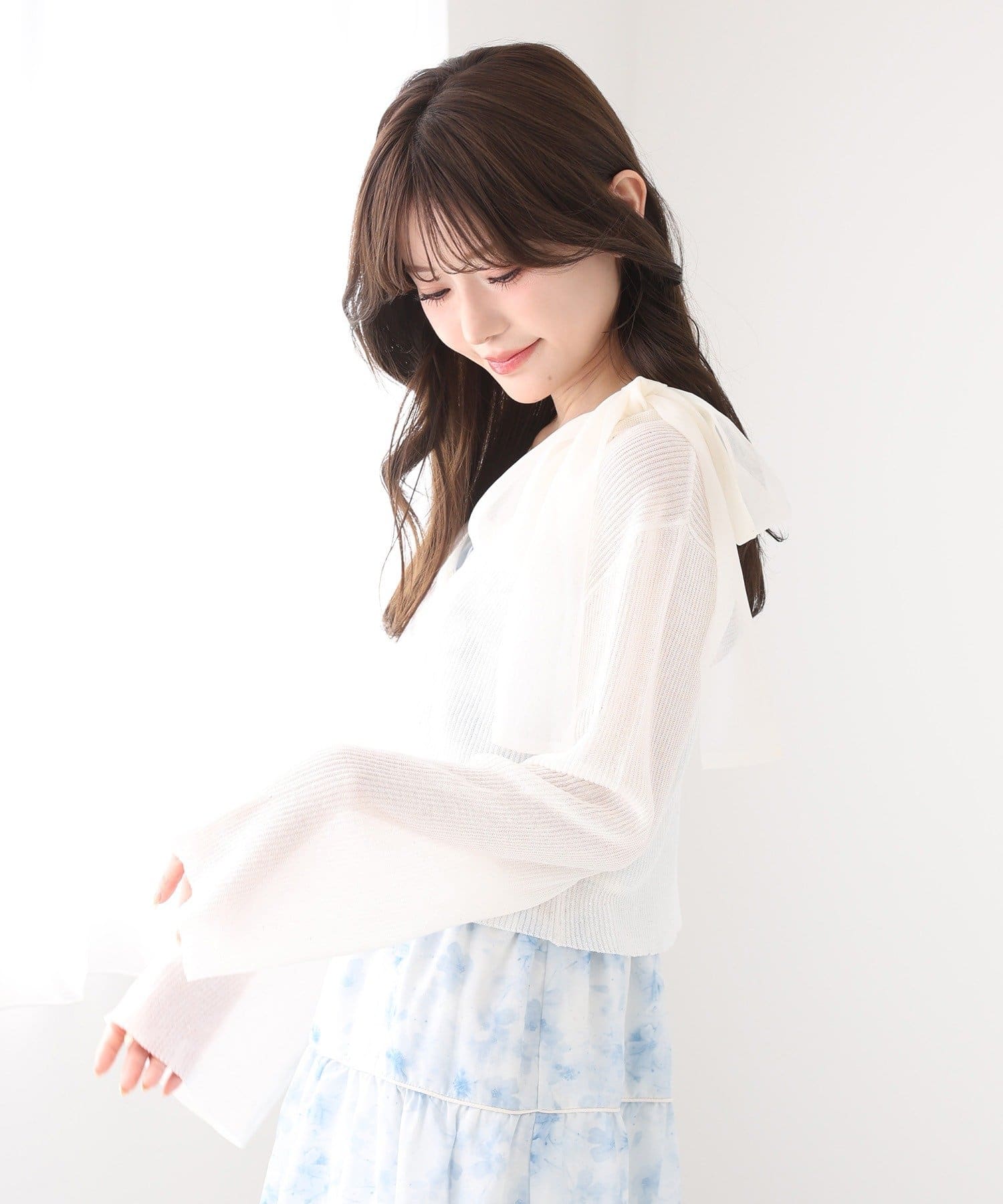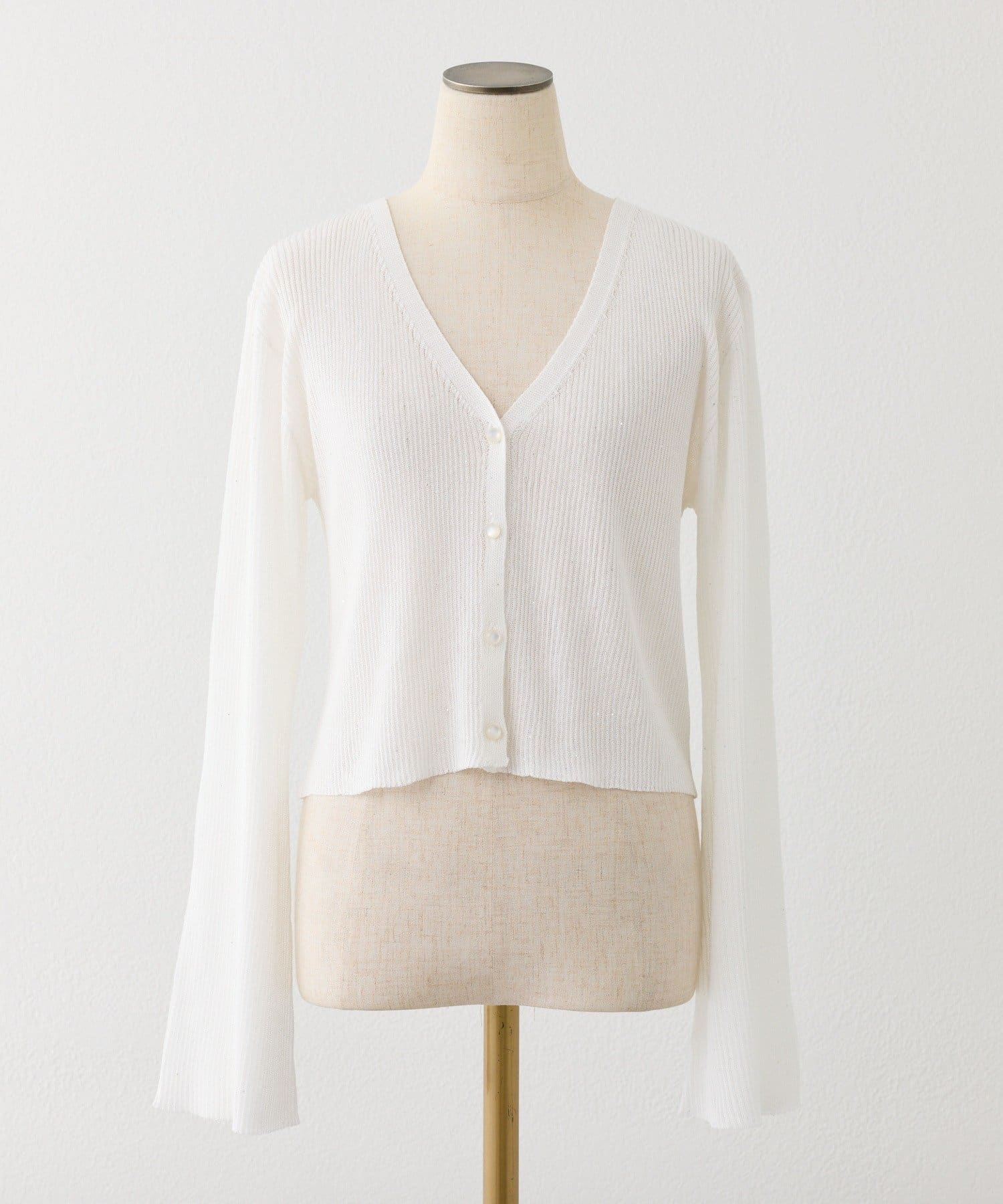 軽やかなシアー素材が魅力のベルスリーブカーディガン。