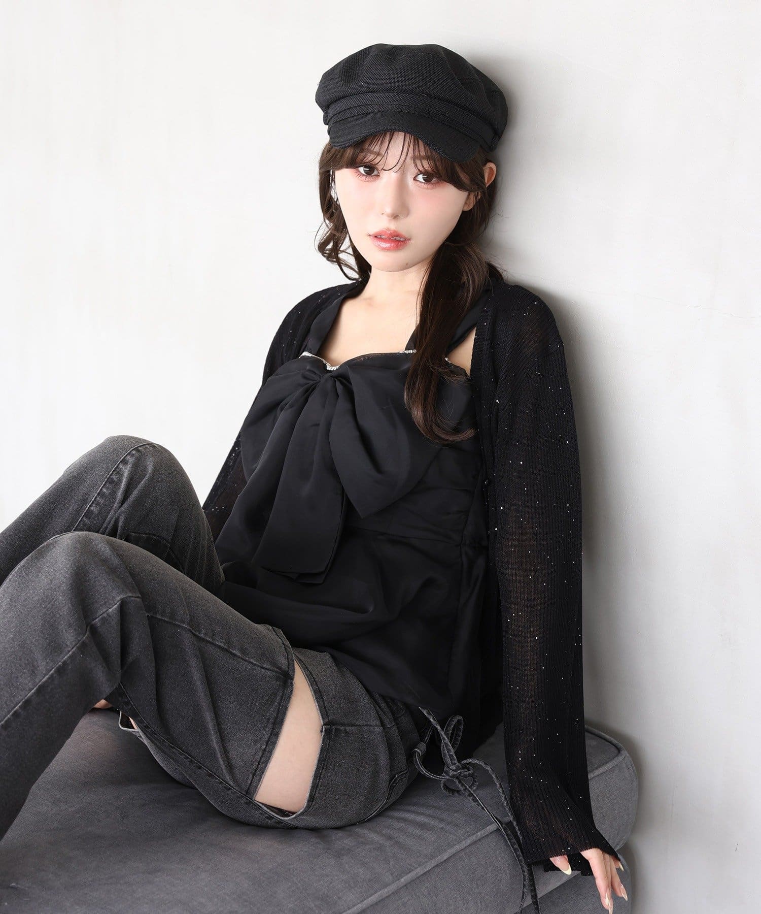 ミニボトムやデニムと合わせて、カジュアルガーリーな着こなしもおすすめ。