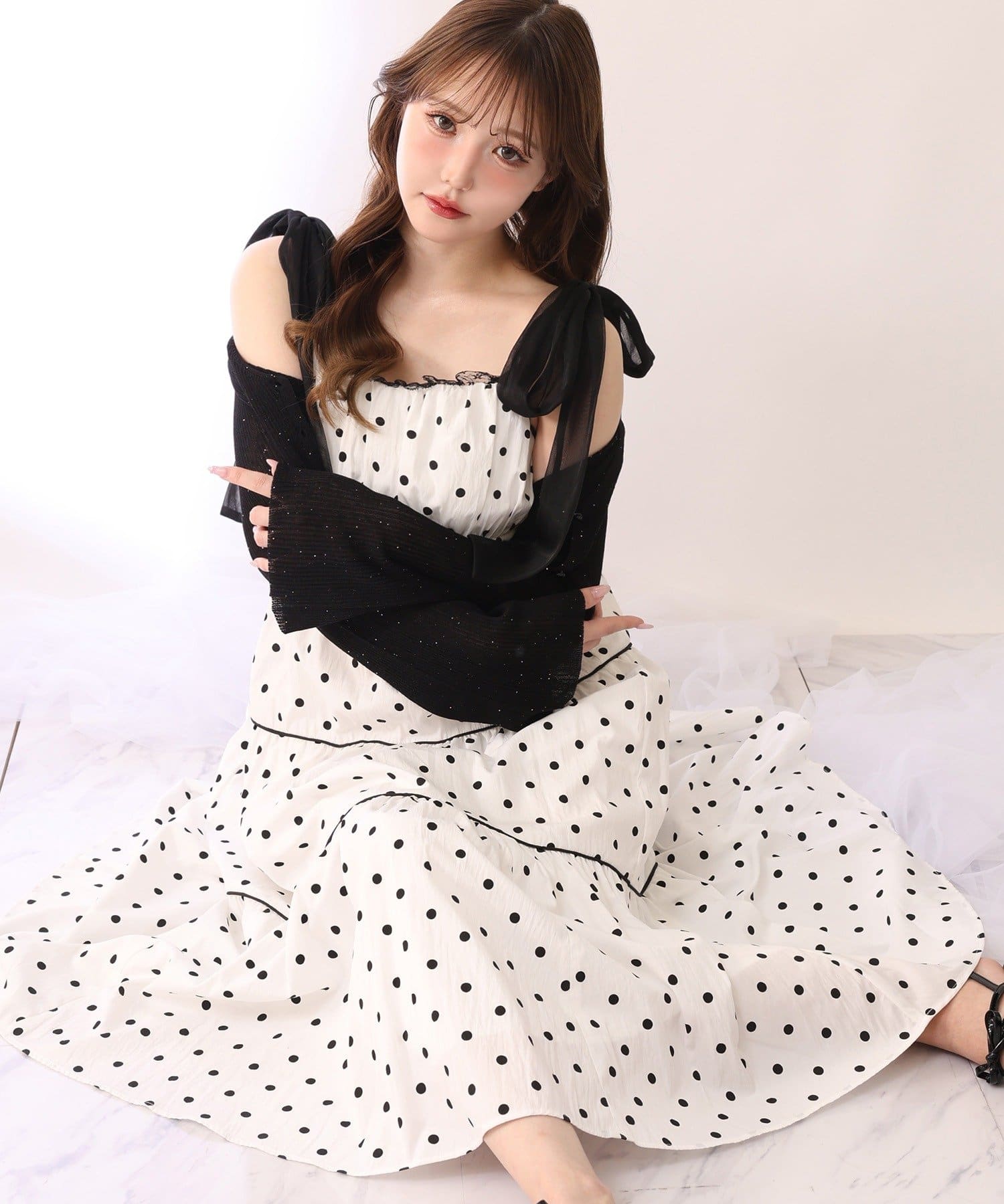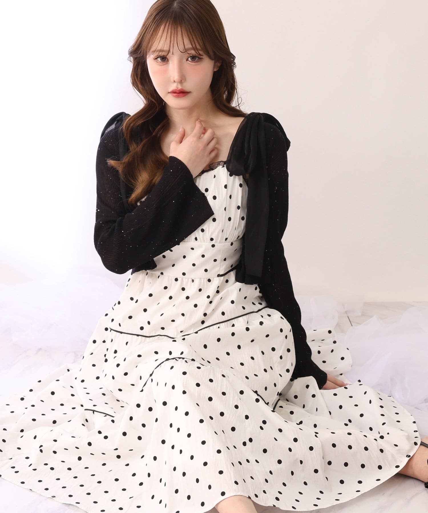 ワンピースにさらっと羽織れば、女性らしいフェミニンコーデが完成します。