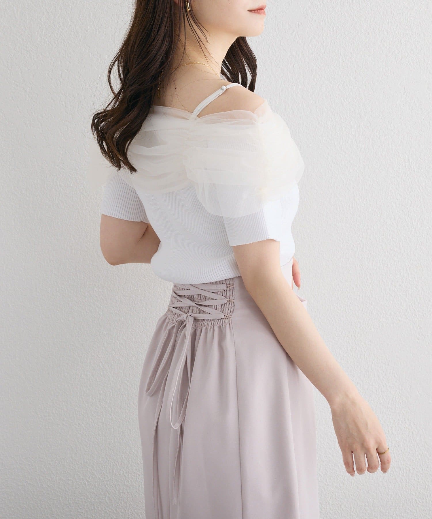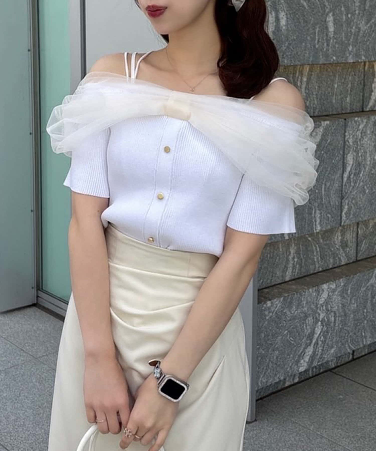 リボンチュールオフショルニット